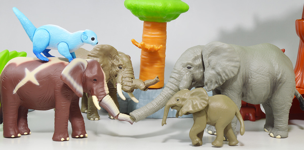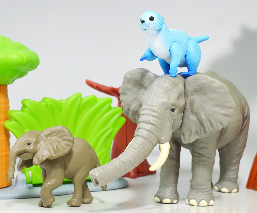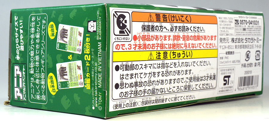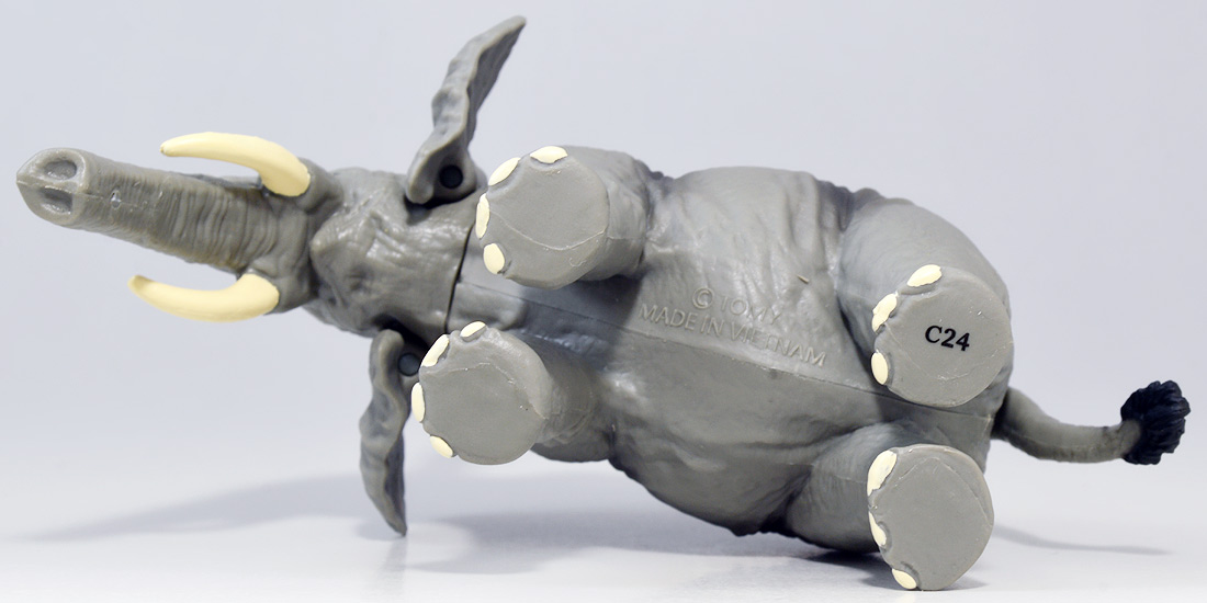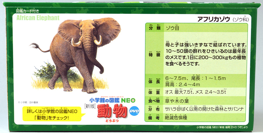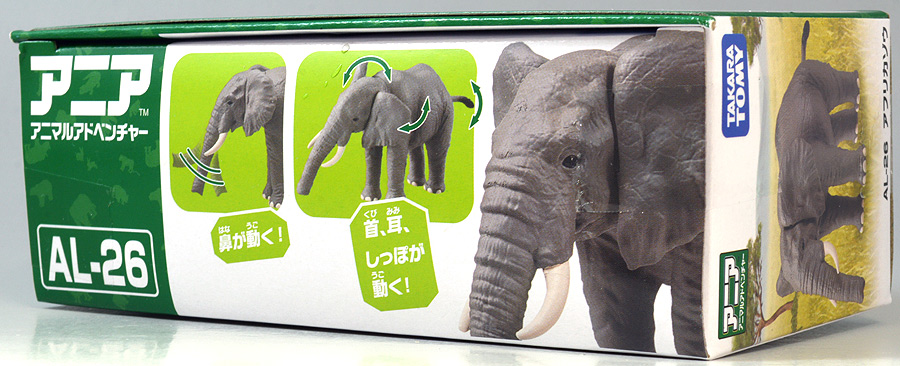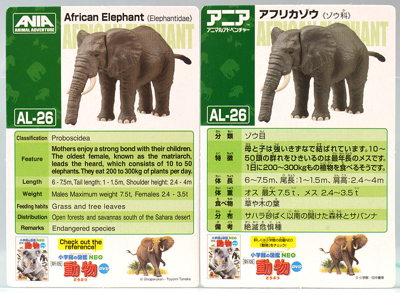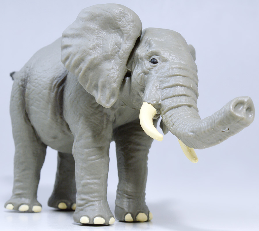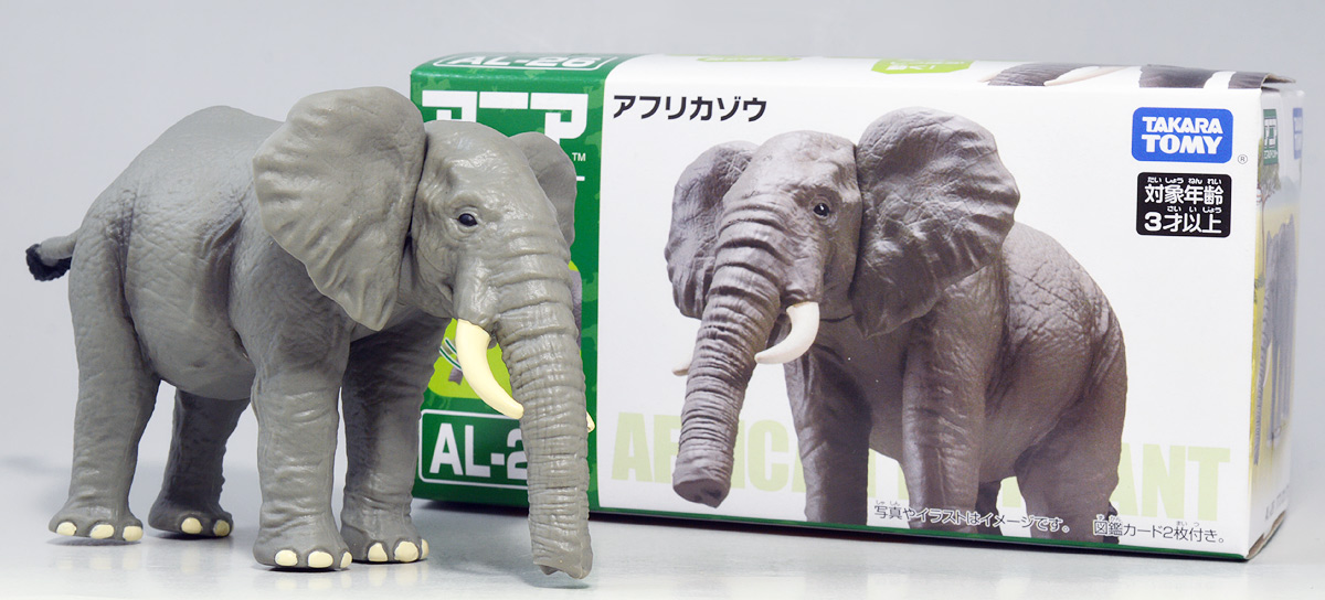 ■アニア AL-26 アフリカゾウ ![]() 2024年5月23日発売 / 1045円(税込) アニアALシリーズに大人気のアフリカゾウ上位版が登場! 2024年5月の新展開ぞよ!! ![]() 玩具でお馴染みの生き物達が更なるギミックを備えてサイズアップ! こちらのゾウさんは中でも特別な可動ギミックが追加されているので注目パケだ! ![]() 鼻が動く! 首、耳、しっぽが動く! ![]() くちにいれない!! ![]() 新たなるアフリカゾウ図鑑カード。 日本語と英語の2枚入りぞよ。 ![]() ALサイズになったアフリカゾウの上位版! ASサイズのアフリカゾウより一回り大きくなり、新たなギミックを備えている!! ![]() アフリカ起源のハイラックスなどと共通子孫を持つ事で知られるアフリカ獣類の中でも アフリカゾウは長鼻目に分類される鼻の長い哺乳類。 言わばアフリカに棲むアフリカゾウは本場のゾウなのだ・・・! この種は長い間アフリカゾウと言う一種の動物と考えられてきたが、 近年の分子系統解析によれば亜種マルミミゾウが独立種であるとして、 サバンナゾウとマルミミゾウがそれぞれ別種との考え方が主流となってきているぞよ。 体長は4〜5メートル、体重は4〜7トンにも達する陸上で最も巨大な動物の一つである!! ![]() アフリカのサバンナや森林に棲むアフリカゾウは、主にメスと子供からなる群れで生活すると言うが、 その数は10頭から多い時には40頭にもなると言われる。 このような巨大な動物が40頭も集まるとは物凄い迫力だろう!! 一方、オスのアフリカゾウはと言えば普段は単独で気ままに生活し、 繁殖期になるとメスの群れと合流し交尾を済ませると、またふらっと旅に出てしまう孤高の生き物ぞよ。 ゾウの妊娠期間は約22か月と言われ、お腹の中で2年近くも育ててから赤ちゃんを出産するのは過保護である。 陸上最大のアフリカゾウはそれだけで自然の頂点に立つ存在だが、 赤ちゃんとなると様々な天敵に狙われ常に命の危険が付きまとう。 お母さんゾウが赤ちゃんをお腹の中で守り、ある程度大きくなってから出産するのは、 か弱い子供があっと言う間に肉食動物に食べられないようにする為の仕組みなのだ! ![]() アジアゾウはオスしか牙を持たないが、アフリカゾウ2種はオスにもメスにも殆どの場合牙が生えている。 この牙が象牙と言ってとても貴重で美しい宝物になる為に、 ゾウ達はおろかなにんげんどもに乱獲され、数を減らして来た歴史があるぞよ。 アフリカ南東部に位置する多民族国家・モザンビークは1977年から内戦に突入すると、 その資金調達の為に対立する両軍共にアフリカゾウを虐殺し、象牙を奪うようになった。 この内戦の最中、ゴロゴンサ国立公園内のゾウ90%以上もが人間の手によって殺されてしまったと言う。 残されたゾウは、牙を持たないメスのゾウである。 このゾウが子孫を繋いでいった結果、牙を持たないアフリカゾウ達が元の3倍近い割合で生れてくるようになった。 遺伝的多様性が薄まり、牙を持たない個性を持つゾウが増えたのだ。 象牙を持つゾウはおろかなにんげんどもに狙われてしまう! アフリカゾウが牙を持たなくなり始めたのは、自らを守る為の遺伝子の知恵なのかもしれないぞよ・・・。 時が過ぎ、世界的にもゾウの保護活動が高まり、密猟・取引は厳しく罰せられるようになった。 近年は牙を持たないゾウの産まれてくる確率はやや減少傾向にあると言うが、 おろかなにんげんどもの行いが動物に急速な進化を促した事実を忘れてはならんぞよ!! ![]() ゾウと言えばサーカスなどでも人気者のイメージがあるが、それは大人しいアジアゾウさんのお話。 アフリカゾウはと言えば人間に慣れにくく、労役目的の飼育は困難であると言われているぞよ。 一度怒り出せばその執着心凄まじく、嫌いな人間を追いかけまわしてぶち殺したり、 それが難しければ人間が大事にしている家畜などをわざと殺しにかかると言うから恐ろしいもんだ!! 記憶力に優れ、豊かな感情を持つアフリカゾウは、霊長類にも匹敵する知能を持つとも言われているぞよ!! 荒ぶる魂にはもちろん優しさも秘めている。 仲間のゾウが死んだときなど、悲しみ弔うような行動を見せるのは、 誰が死んだのかきちんと区別して認識しているからだと言われている。 死期を悟ったゾウが一人群れを離れて死にゆく為に向かう地に、ゾウの墓場があると言う。 これは無論、根拠のない伝説であるが、 感情豊かで知恵のあるゾウならば墓の概念があっても不思議ではないと考えた人の創作かもしれないぞよね。 ![]() このようにアフリカゾウは良くも悪くも古くから人間と関わりの深い動物である。 勿論、サバンナゾウ、マルミミゾウのどちらもこの日本各地の動物園で見物する事が出来るぞよ!! 丁度このアニアの発売前日、5月22日には、多摩動物園のアフリカゾウ砥夢(トム)の抜牙手術が行われたと言う。 なんでも砥夢の左牙内部が空洞化してしまい、細菌感染のリスクがある為抜牙したものであるというが、 これはアメリカからやってきた専
