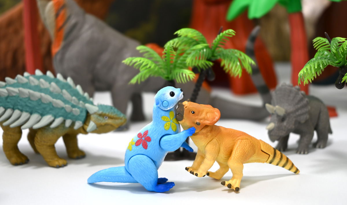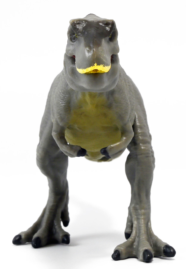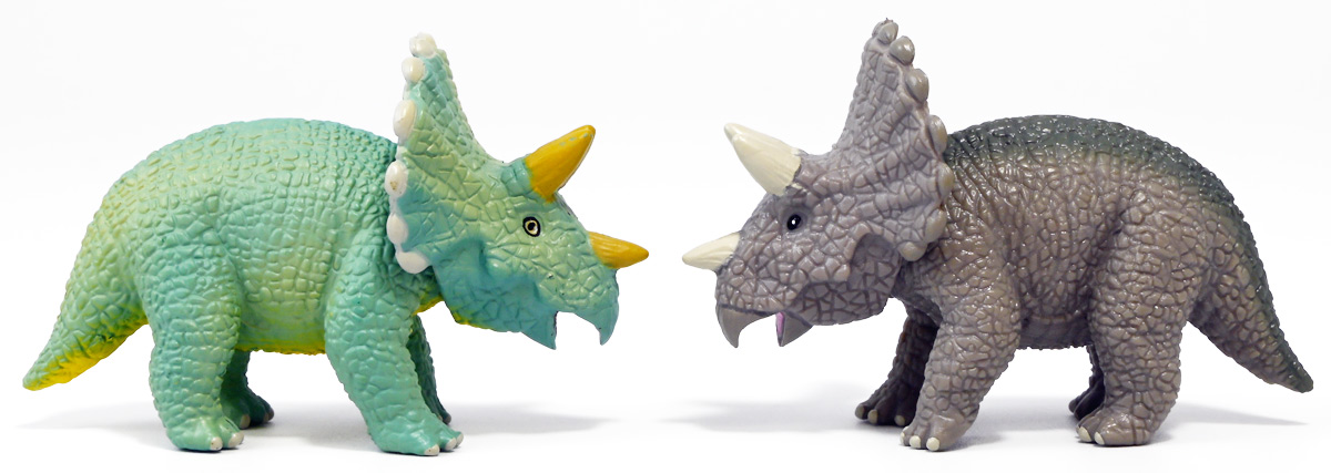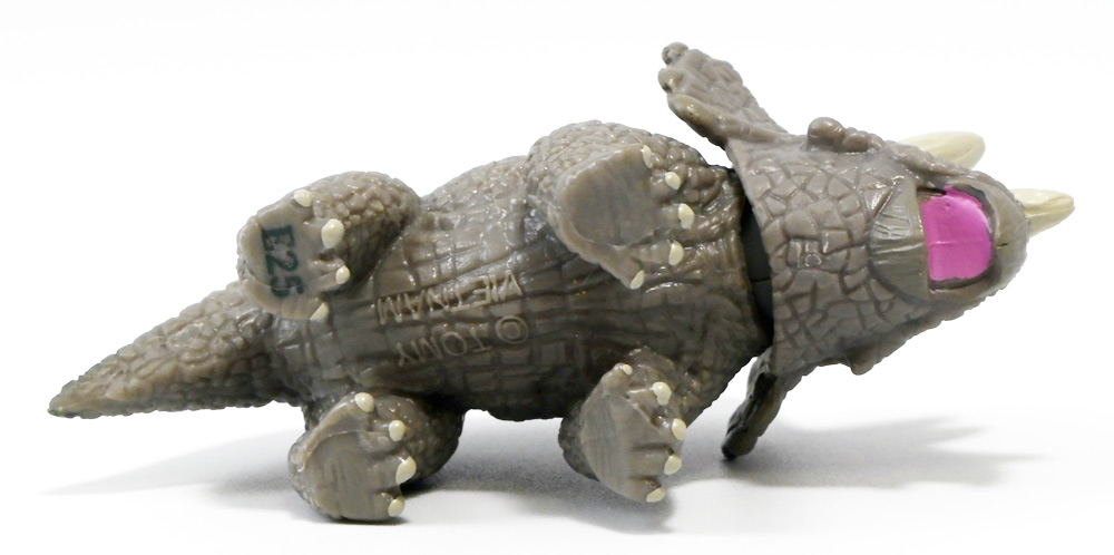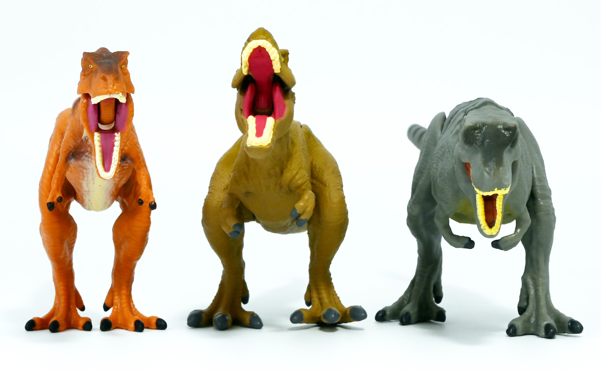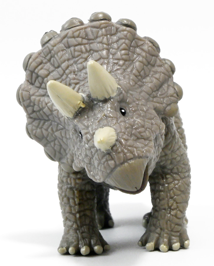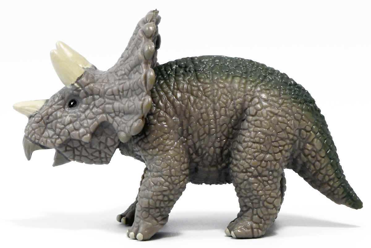 ■アニア ジュラシック・ワールド 陸のティタノサウルス DXセット ![]() 2025年7月26日発売 / 2970円(税込) 映画「復活の大地」物語中盤をモチーフとした第二のDXセット! 巨大恐竜がぴちぴちに詰まった豪華パッケージぞよ!! ![]() 大人気T-レックスが入っているので一番人気と思われるセットぞよね! しかし収録内容的には最も見所が無いパッケージでもある・・・。 タカトミ・・・なかなかの策士だ!! ![]() このパッケージには「T-レックス(復活の大地ver)」、「ティタノサウルス」、そして「トリケラトプス(子ども)」が入っているぞよ。 このうちT-レックスとティタノサウルスは単品パッケージも販売中。 そしてトリケラ子どもは初のジュラワ名義だが、原型の初出は古生物版のギフトセット。 つまり新規造形の版権ものでは無いと言う事ぞ。 ![]() パケ底。 やはりシールで訂正されている。 ![]() アニアバトルカードが三枚付属! 「T-レックス」、「ティタノサウルス」、そして「トリケラトプス」は成体イラストで封入される。 やはり雑誌「ダイノスターズ レッドティラノ号」に同名カードがふろくとなっており、 T-レックスとトリケラトプスはイラスト、背景が同じだがパラメーターが異なるぞよ。 ティタノサウルスは雑誌版と背景も異なる。 ![]() そして全てキラ仕様のレアカードだ! アニアバトルカードは他にも雑誌ふろくになっています。 ![]() それではぱかっと開封! ブリスターに三匹仲良く収まっているぞよ。 ティタノサウルスがとにかくデカいのでスペースいっぱいにパツパツだ! ![]() まずはこちら! 「T-レックス(復活の大地ver)」であるぞよ! 初代「ジュラシック・パーク」で登場し、「ジュラシック・ワールド」三部作を通して活躍したT-レックスのレクシィに変わって、 今回の映画で新たに登場した新個体のT-レックスこそ、この「エンバー」なのだ! これまでのレクシィよりもマッシブな体格となった新デザイン。 アニアでも新規造形されているぞよ! ![]() モササウルスのDNAサンプルをゲットしたチームメンバーはなんとかサン・ユベール島へと上陸する! 一方で、アクシデントで海に投げ出されたデルガド一家はチームとはぐれ別々に上陸する事に! なんでも島には村(?)があるらしく、そこを目指せば何れ合流できるだろうと言う事であるが・・・ こんな秘境に村なんかあるもんか? 島には温泉を流すパイプが張り巡らされており、これを使って地熱発電をしているらしい。 成程おろかなにんげんどもが住んでいた痕跡があるではないか! パイプを伝って村を目指すデルガド一家は、道中で可愛いドロレスちゃんを仲間に加え、励まし合いながら進んでゆく。 途中、長女の彼氏・ザビエルがその辺でおしっこをしていると、背後にヴェロキラプトルが現れて絶体絶命! 今回ラプトル出ないと思い込んでいたが、サン・ユベール島にも棲んでたぞよか! とわたくしは驚いたが、更なる驚きはその後にあった! なんと空からドラゴンが飛来してヴェロキラプトルを食ってしまったぞよ!! こりゃあなんの映画を見ているんだか判らんが、お陰で彼氏は窮地を脱し、冒険は続く。 川へ行きついたデルガド一家は向こう岸で死んでいるパラサウロロフスと小屋を発見。 ボートがあるので勇敢にも長女のテレサさんが取りにゆくと、 ひょっこり可愛い獣脚類が現れたが襟巻を展開するのはディロフォサウルスだ! 向こうではT-レックスが眠っているぞ!? ![]() なんでこんな奴らが外にいるんだろう・・・? と思ったらあちこちに電気柵があるがシステムは死んでいるようだ。 たぶん元々は電気柵があったから凶悪な恐竜も放し飼いに出来ていたのだろう・・・。 ははぁ〜ん。 ひょっとして、さっき出てきたドラゴン怪獣を倒す時に、この電気柵が活躍するぞよね!? ところがこの電気柵、意味深にしばしばフォーカスされるのに全く使われなくてなんなんだ? 家族がハラハラするのをしり目に、長女は小屋でゲットした瞬間膨らみ式のゴムボートを展開させる。 すると音に気づいてT-レックスのエンバーが目を覚まし、逃げ惑う一家を追いかけてきた! このままでは哀れパラサウロロフスと同じ運命ぞよーっ!! じゃぶじゃぶ追いかけてくるエンバーから、一家は必死の形相でゴムボートを漕ぎ川下りの逃走劇ぞ! 「こげこげこげこげっ!!」 これは原作小説にあるシチュエーションで、初代「ジュラパ」で技術的に撮る事が不可能だったためにボツとなっていたシークエンス。 それが最新技術で悲願の実現となったものである! 今回の映画、とにかく水の表現が多くてわくわくなんですね! 懸命な川下りも虚しく、哀れ一家はT-レックス・エンバーの攻撃を受けて水中に投げ出されてしまう! みんななんとか岩陰に隠れる事が出来たが、末娘のイザベラちゃんがひっくり返ったボートの裏に取り残されてしまった! ![]() あーっ! もう駄目ぞよーっ! エンバーの牙がボートに突き刺さる〜っ!! と思いきや! なんとインジェン社のボートは超技術で出来ていた! 