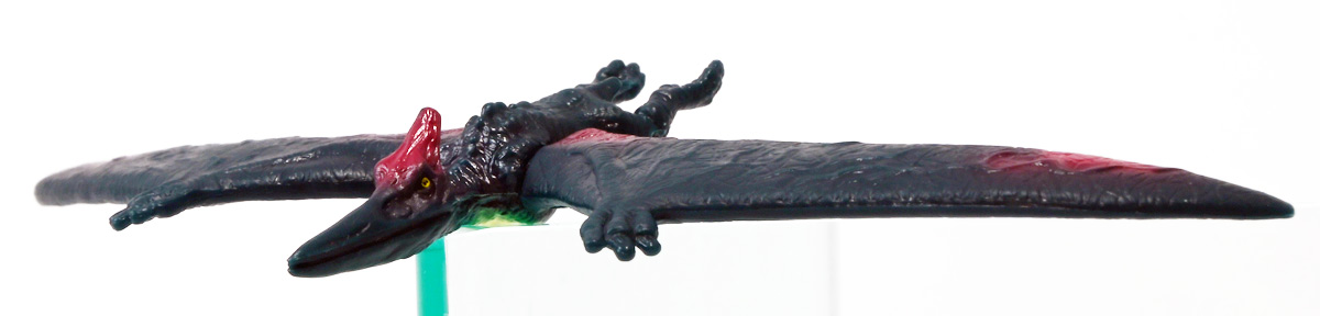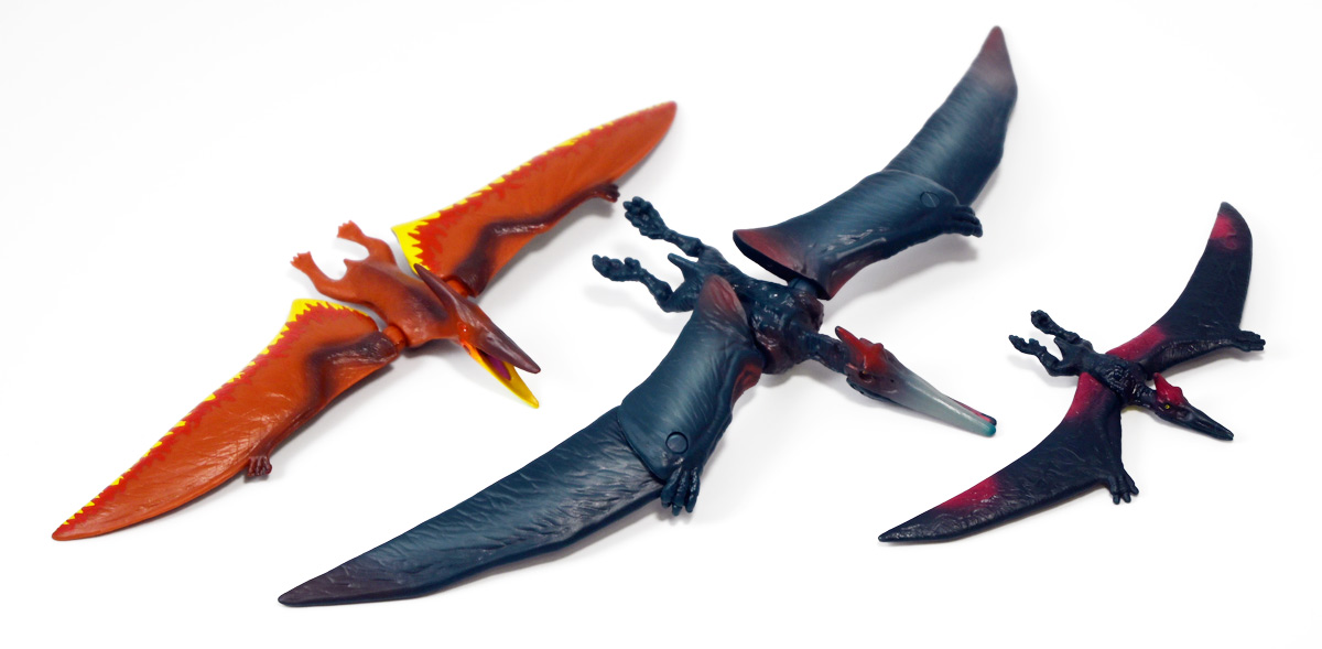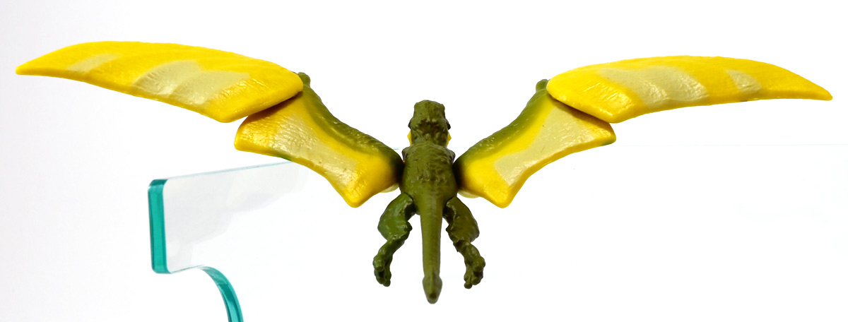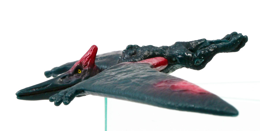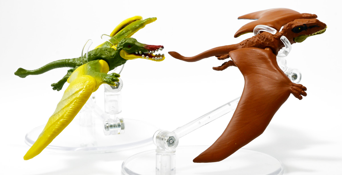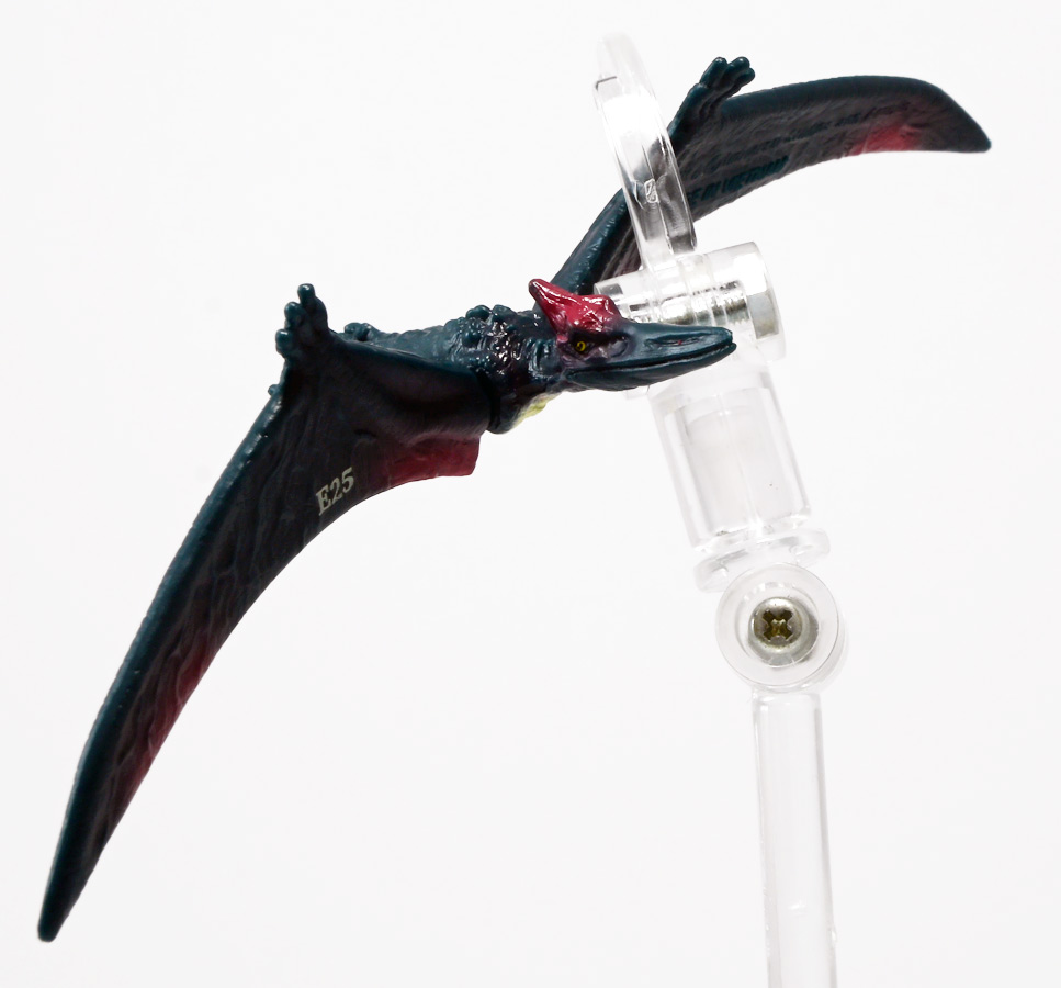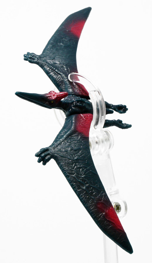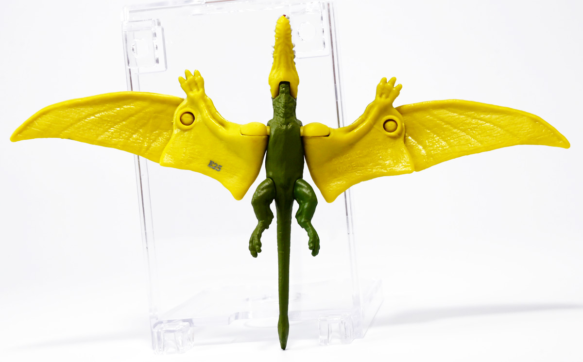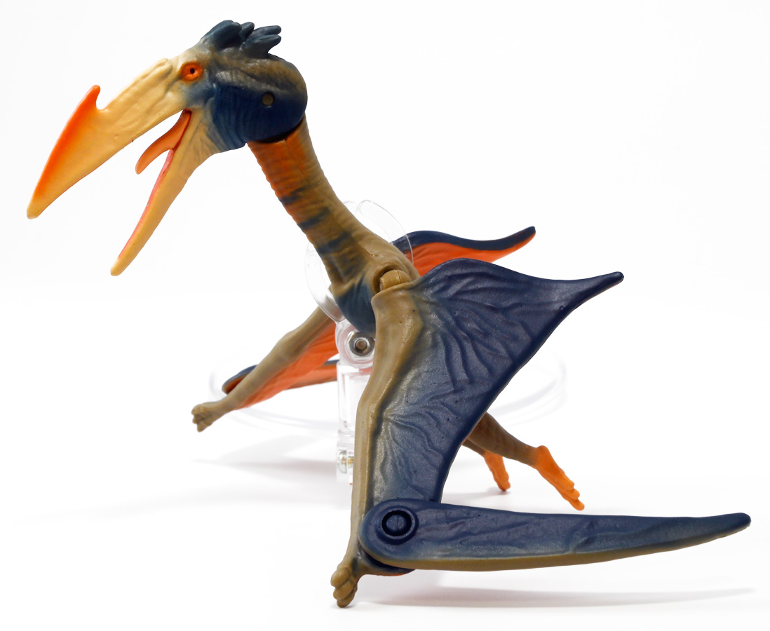 ■アニア ジュラシック・ワールド 空のケツァルコアトルス DXセット ![]() 2025年7月26日発売 / 2970円(税込) 劇中最後のミッションをモチーフとした第三のDXセットがこちら! ここでしか入手できない新規造形アニアが入った注目パッケージぞよ! ![]() ラインナップは「ケツァルコアトルス」、「ランフォリンクス」、「プテラノドン(子ども)」の三体。 このうちランフォリンクスはこのパッケージが初登場となる新規造形アニアだが、劇中に登場しない翼竜であるぞよ。 ![]() パケトップ。 ![]() ボトム。 シール訂正&点字シールのお知らせあり。 ![]() カードが三枚付属。 ランフォリンクスは劇中に登場せず、コンセプトアートが存在しない為、 「ケツァルコアトルス」が飛行形態と着陸形態で二枚入っています。 ![]() 飛行ケツァルは「ダイノスターズ」の綴じ込みふろくにもなっていたが、 本パッケージ封入のものはキラキラのレアバージョン。 ほか、ケツァルやモサは「てれびくん」や「幼稚園」ふろくのキラバージョンもあるぞよ。 ポップアップストアでティラノのキラカードを配ったりもしたみたい。 ![]() パカっと開封! これまたパッケージいっぱいに収まっている! でっかいぞよーっ!! ![]() まずはこちら! 後期白亜紀の末まで大空を支配していた巨大翼竜「ケツァルコアトルス」ぞよ! アステカの蛇神にして天空の支配者・ケツァルコアトルの名を冠されたこの翼竜は、 これまでに知られる中でも最大級の飛翔動物と考えられるが、発見された化石は断片的なものであり、 例によって初めはでっかく誇張して見積もられていたので年々小さくなってゆくのはご愛敬・・・。 最初は翼開長18メートルとか言われていたが、最近は12メートルとかもっと小さかったとかいろいろ言われている。 ま〜大きかった事は間違いないだろう! ![]() 第一、第二のミッションを成功させ、残る第三のDNAサンプルを入手する為、 ルーミス博士のアドバイスのもと、ミッションチームは巨大翼竜ケツァルコアトルスの巣を目指す! ゾーラ達が懸垂下降で絶壁の谷を下ってゆくと、そこには起源不明の古代寺院の遺跡がぽっかりと口を開けていた・・・。 どうやらケツァルはここを巣穴に使っているみたいぞよ! 運良く翼竜の卵を発見した一行はこれ幸いと注射器を差し込みDNAサンプルをゲット! ルーミス博士は博愛の恐竜おたくなので、胚を傷つけないように白身だけお裾分けしてもらったが・・・ こんな卵に針ブッ挿してどでかいアンプル一本分中身抜いて赤ちゃんが無事なもんかいね? と、そこへ怒りの親ケツァルコアトルスが襲来! ピンチに陥るゾーラ&ルーミス! ルクレールが懸命にサポートしてくれるが、これが仇となり彼は殉職! ルーミス博士も谷から落下するが、九死に一生を得た!! DNAサンプルも無事ぞよ!! や〜・・・多大な犠牲を払いびっくり展開もあったがなんとかミッションコンプリートぞよね〜・・・ って、そこに寺院に繋がる階段あったんかいっ! おい〜・・・じゃあ絶壁の谷を命がけで下ったのはなんだったんだぞよ〜・・・。 ![]() さて、劇中ではケツァルコアトルスの卵からサンプルを入手する。 古生物の卵化石と言うのはそれだけだと誰が産んだなんの卵なのかはよくわからない。 近くに親と思われる化石が残っている場合だけはっきりとなんの卵かと言う事が言えるぞよ。 また、生まれる直前の胚が化石として残っている事もごく稀にあり、こういう場合もそれがどんな動物の卵であったか判断できる。 近年ではCTスキャンで化石の中身を見る事も出来るので、色々研究が進んでいるぞよ。 さて、ケツァルコアトルスの様な翼竜もやはり卵を産んでいた。 ・・・が、それは鳥のように硬い殻に覆われていたのではなく、 ぷにぷにと柔らかい卵だったと考えられている。 べこっとへこんだ状態の化石が見つかっているぞよよ。 そして翼竜たちはその軟らかい卵を湿度の高い土中に産み付け、 お世話はしなかったと考えられる。 イメージとしてはウミガメみたいな感じぞよね。 つまり、鳥の様な巣を作り、硬い殻の卵を産む劇中のケツァルコアトルスは古生物学的には正確でないと言える。 ![]() シリーズにケツァルコアトルスは二度登場しているぞよ。 「新たなる支配者」で登場したバイオシン社のサンクチュアリに保護されている個体と、 今回登場のサン・ユベール島で製造されたインジェン社製の個体では復元デザインが異なっている。 本商品はインジェン社製のデザインぞよね。 ![]() 2作で最も異なる点は頭部造形で、 わたくし的にはバイオシンバージョンの方がイメージに近いが、 そもそもケツァルコアトルスの頭骨はどの種も完全なものが見つかっていない。 従って今日で知られている一般的な復元イメージは、 ケツァルコアトルス・ラーソニの断片的な化石を繋ぎ合わせて復元したものであるぞよ。 と言う事でこんなペリカンみたいなケツァルコアトルスがいても必ずしも間違いとは言い切れない・・・の