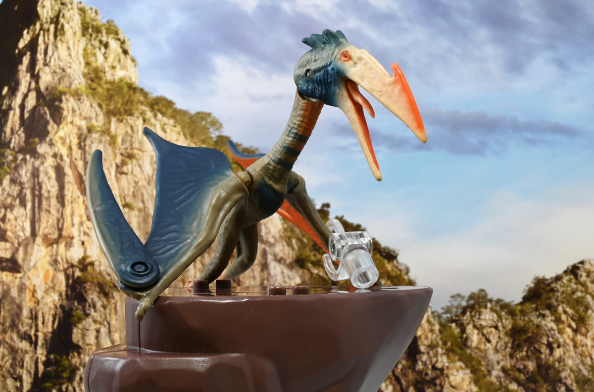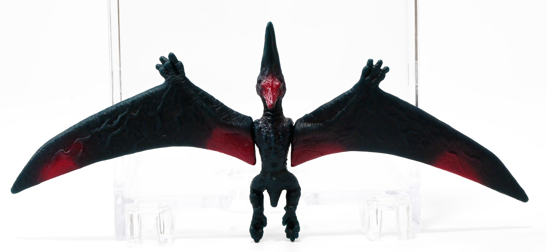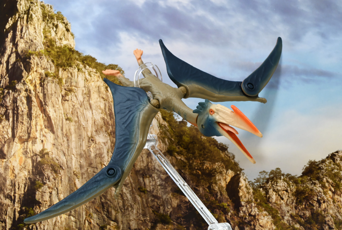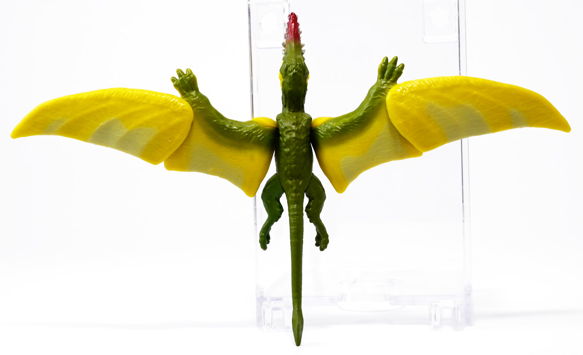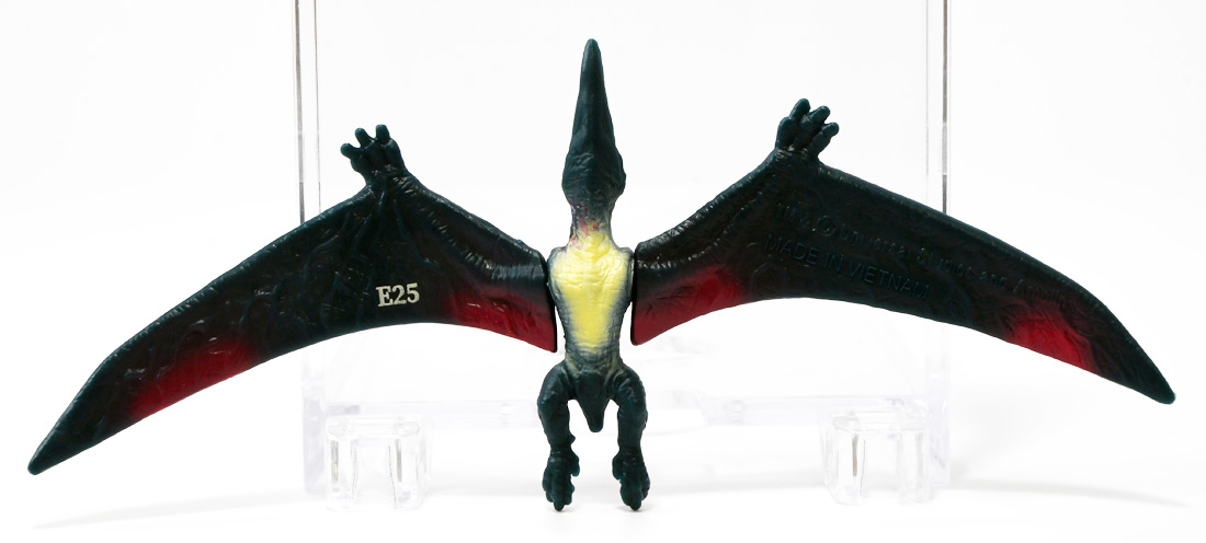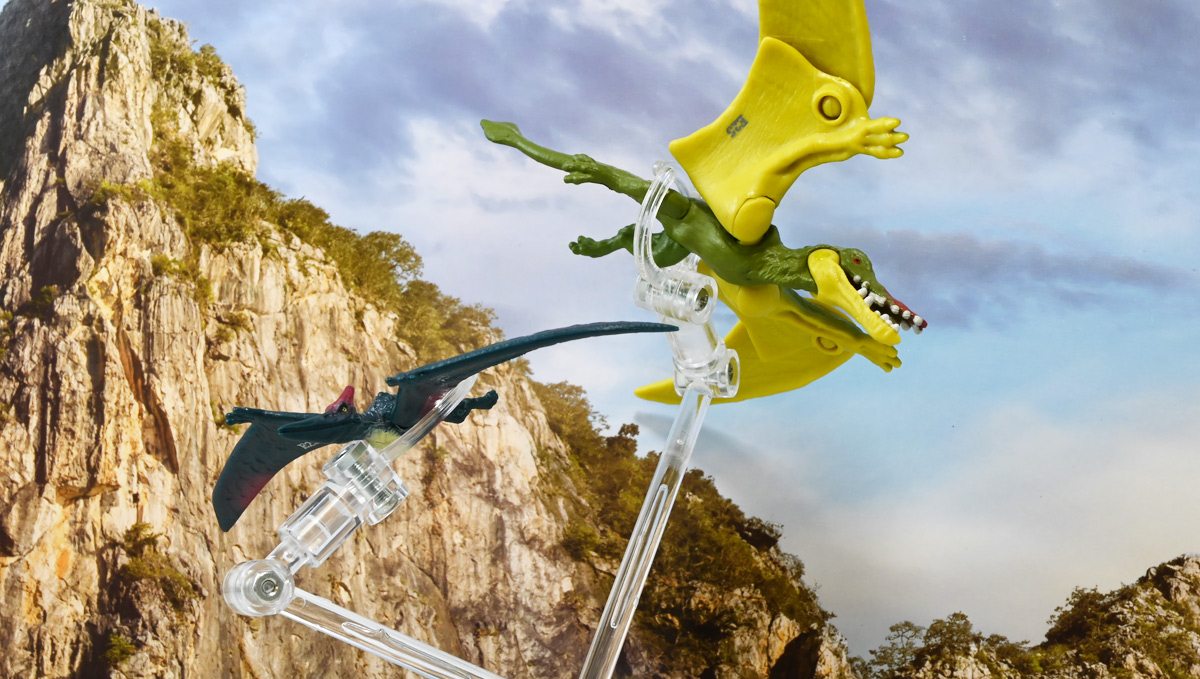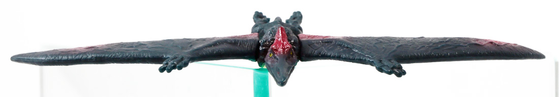 ■アニア ジュラシック・ワールド 空のケツァルコアトルス DXセット ![]() 2025年7月26日発売 / 2970円(税込) 劇中最後のミッションをモチーフとした第三のDXセットがこちら! ここでしか入手できない新規造形アニアが入った注目パッケージぞよ! ![]() ラインナップは「ケツァルコアトルス」、「ランフォリンクス」、「プテラノドン(子ども)」の三体。 このうちランフォリンクスはこのパッケージが初登場となる新規造形アニアだが、劇中に登場しない翼竜であるぞよ。 ![]() パケトップ。 ![]() ボトム。 シール訂正&点字シールのお知らせあり。 ![]() カードが三枚付属。 ランフォリンクスは劇中に登場せず、コンセプトアートが存在しない為、 「ケツァルコアトルス」が飛行形態と着陸形態で二枚入っています。 ![]() 飛行ケツァルは「ダイノスターズ」の綴じ込みふろくにもなっていたが、 本パッケージ封入のものはキラキラのレアバージョン。 ほか、ケツァルやモサは「てれびくん」や「幼稚園」ふろくのキラバージョンもあるぞよ。 ポップアップストアでティラノのキラカードを配ったりもしたみたい。 ![]() パカっと開封! これまたパッケージいっぱいに収まっている! でっかいぞよーっ!! ![]() まずはこちら! 後期白亜紀の末まで大空を支配していた巨大翼竜「ケツァルコアトルス」ぞよ! アステカの蛇神にして天空の支配者・ケツァルコアトルの名を冠されたこの翼竜は、 これまでに知られる中でも最大級の飛翔動物と考えられるが、発見された化石は断片的なものであり、 例によって初めはでっかく誇張して見積もられていたので年々小さくなってゆくのはご愛敬・・・。 最初は翼開長18メートルとか言われていたが、最近は12メートルとかもっと小さかったとかいろいろ言われている。 ま〜大きかった事は間違いないだろう! ![]() 第一、第二のミッションを成功させ、残る第三のDNAサンプルを入手する為、 ルーミス博士のアドバイスのもと、ミッションチームは巨大翼竜ケツァルコアトルスの巣を目指す! ゾーラ達が懸垂下降で絶壁の谷を下ってゆくと、そこには起源不明の古代寺院の遺跡がぽっかりと口を開けていた・・・。 どうやらケツァルはここを巣穴に使っているみたいぞよ! 運良く翼竜の卵を発見した一行はこれ幸いと注射器を差し込みDNAサンプルをゲット! ルーミス博士は博愛の恐竜おたくなので、胚を傷つけないように白身だけお裾分けしてもらったが・・・ こんな卵に針ブッ挿してどでかいアンプル一本分中身抜いて赤ちゃんが無事なもんかいね? と、そこへ怒りの親ケツァルコアトルスが襲来! ピンチに陥るゾーラ&ルーミス! ルクレールが懸命にサポートしてくれるが、これが仇となり彼は殉職! ルーミス博士も谷から落下するが、九死に一生を得た!! DNAサンプルも無事ぞよ!! や〜・・・多大な犠牲を払いびっくり展開もあったがなんとかミッションコンプリートぞよね〜・・・ って、そこに寺院に繋がる階段あったんかいっ! おい〜・・・じゃあ絶壁の谷を命がけで下ったのはなんだったんだぞよ〜・・・。 ![]() さて、劇中ではケツァルコアトルスの卵からサンプルを入手する。 古生物の卵化石と言うのはそれだけだと誰が産んだなんの卵なのかはよくわからない。 近くに親と思われる化石が残っている場合だけはっきりとなんの卵かと言う事が言えるぞよ。 また、生まれる直前の胚が化石として残っている事もごく稀にあり、こういう場合もそれがどんな動物の卵であったか判断できる。 近年ではCTスキャンで化石の中身を見る事も出来るので、色々研究が進んでいるぞよ。 さて、ケツァルコアトルスの様な翼竜もやはり卵を産んでいた。 ・・・が、それは鳥のように硬い殻に覆われていたのではなく、 ぷにぷにと柔らかい卵だったと考えられている。 べこっとへこんだ状態の化石が見つかっているぞよよ。 そして翼竜たちはその軟らかい卵を湿度の高い土中に産み付け、 お世話はしなかったと考えられる。 イメージとしてはウミガメみたいな感じぞよね。 つまり、鳥の様な巣を作り、硬い殻の卵を産む劇中のケツァルコアトルスは古生物学的には正確でないと言える。 ![]() シリーズにケツァルコアトルスは二度登場しているぞよ。 「新たなる支配者」で登場したバイオシン社のサンクチュアリに保護されている個体と、 今回登場のサン・ユベール島で製造されたインジェン社製の個体では復元デザインが異なっている。 本商品はインジェン社製のデザインぞよね。 ![]() 2作で最も異なる点は頭部造形で、 わたくし的にはバイオシンバージョンの方がイメージに近いが、 そもそもケツァルコアトルスの頭骨はどの種も完全なものが見つかっていない。 従って今日で知られている一般的な復元イメージは、 ケツァルコアトルス・ラーソニの断片的な化石を繋ぎ合わせて復元したものであるぞよ。 と言う事でこんなペリカンみたいなケツァルコアトルスがいても必ずしも間違いとは言い切れない・・・の