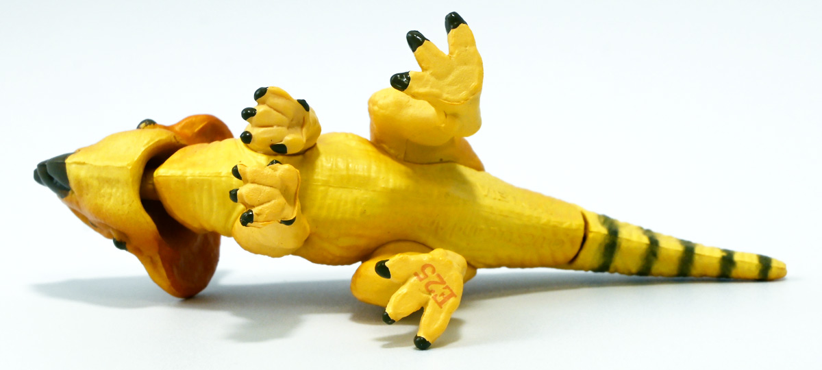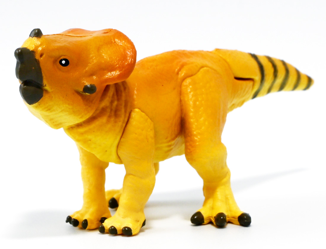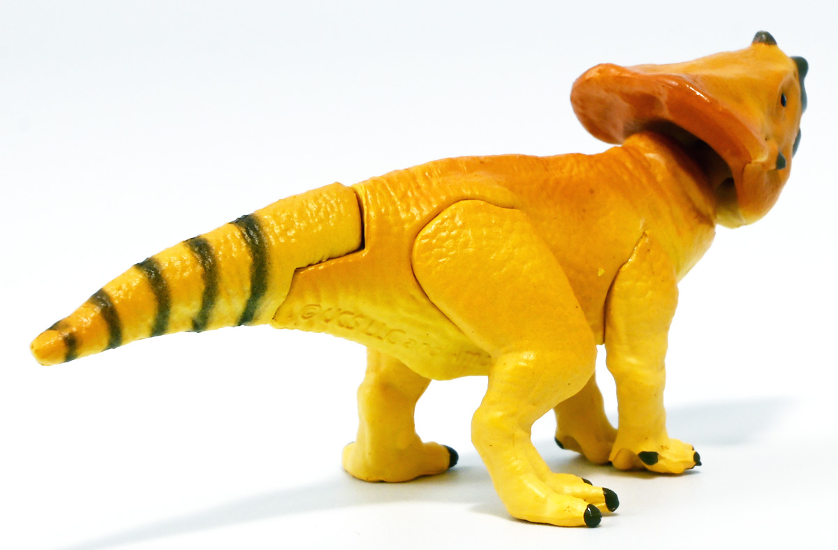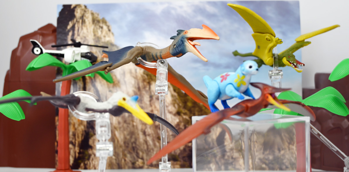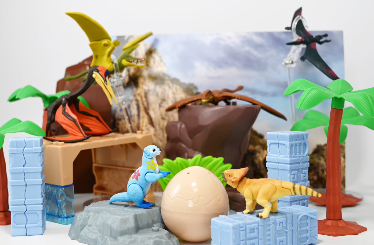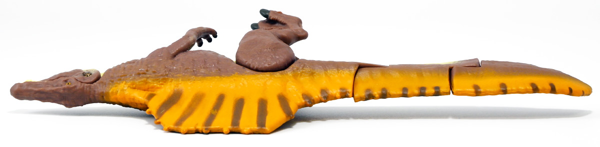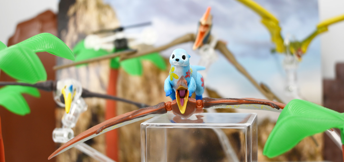 ■アニア ジュラシック・ワールド 空のケツァルコアトルス DXセット ![]() 2025年7月26日発売 / 2970円(税込) 劇中最後のミッションをモチーフとした第三のDXセットがこちら! ここでしか入手できない新規造形アニアが入った注目パッケージぞよ! ![]() ラインナップは「ケツァルコアトルス」、「ランフォリンクス」、「プテラノドン(子ども)」の三体。 このうちランフォリンクスはこのパッケージが初登場となる新規造形アニアだが、劇中に登場しない翼竜であるぞよ。 ![]() パケトップ。 ![]() ボトム。 シール訂正&点字シールのお知らせあり。 ![]() カードが三枚付属。 ランフォリンクスは劇中に登場せず、コンセプトアートが存在しない為、 「ケツァルコアトルス」が飛行形態と着陸形態で二枚入っています。 ![]() 飛行ケツァルは「ダイノスターズ」の綴じ込みふろくにもなっていたが、 本パッケージ封入のものはキラキラのレアバージョン。 ほか、ケツァルやモサは「てれびくん」や「幼稚園」ふろくのキラバージョンもあるぞよ。 ポップアップストアでティラノのキラカードを配ったりもしたみたい。 ![]() パカっと開封! これまたパッケージいっぱいに収まっている! でっかいぞよーっ!! ![]() まずはこちら! 後期白亜紀の末まで大空を支配していた巨大翼竜「ケツァルコアトルス」ぞよ! アステカの蛇神にして天空の支配者・ケツァルコアトルの名を冠されたこの翼竜は、 これまでに知られる中でも最大級の飛翔動物と考えられるが、発見された化石は断片的なものであり、 例によって初めはでっかく誇張して見積もられていたので年々小さくなってゆくのはご愛敬・・・。 最初は翼開長18メートルとか言われていたが、最近は12メートルとかもっと小さかったとかいろいろ言われている。 ま〜大きかった事は間違いないだろう! ![]() 第一、第二のミッションを成功させ、残る第三のDNAサンプルを入手する為、 ルーミス博士のアドバイスのもと、ミッションチームは巨大翼竜ケツァルコアトルスの巣を目指す! ゾーラ達が懸垂下降で絶壁の谷を下ってゆくと、そこには起源不明の古代寺院の遺跡がぽっかりと口を開けていた・・・。 どうやらケツァルはここを巣穴に使っているみたいぞよ! 運良く翼竜の卵を発見した一行はこれ幸いと注射器を差し込みDNAサンプルをゲット! ルーミス博士は博愛の恐竜おたくなので、胚を傷つけないように白身だけお裾分けしてもらったが・・・ こんな卵に針ブッ挿してどでかいアンプル一本分中身抜いて赤ちゃんが無事なもんかいね? と、そこへ怒りの親ケツァルコアトルスが襲来! ピンチに陥るゾーラ&ルーミス! ルクレールが懸命にサポートしてくれるが、これが仇となり彼は殉職! ルーミス博士も谷から落下するが、九死に一生を得た!! DNAサンプルも無事ぞよ!! や〜・・・多大な犠牲を払いびっくり展開もあったがなんとかミッションコンプリートぞよね〜・・・ って、そこに寺院に繋がる階段あったんかいっ! おい〜・・・じゃあ絶壁の谷を命がけで下ったのはなんだったんだぞよ〜・・・。 ![]() さて、劇中ではケツァルコアトルスの卵からサンプルを入手する。 古生物の卵化石と言うのはそれだけだと誰が産んだなんの卵なのかはよくわからない。 近くに親と思われる化石が残っている場合だけはっきりとなんの卵かと言う事が言えるぞよ。 また、生まれる直前の胚が化石として残っている事もごく稀にあり、こういう場合もそれがどんな動物の卵であったか判断できる。 近年ではCTスキャンで化石の中身を見る事も出来るので、色々研究が進んでいるぞよ。 さて、ケツァルコアトルスの様な翼竜もやはり卵を産んでいた。 ・・・が、それは鳥のように硬い殻に覆われていたのではなく、 ぷにぷにと柔らかい卵だったと考えられている。 べこっとへこんだ状態の化石が見つかっているぞよよ。 そして翼竜たちはその軟らかい卵を湿度の高い土中に産み付け、 お世話はしなかったと考えられる。 イメージとしてはウミガメみたいな感じぞよね。 つまり、鳥の様な巣を作り、硬い殻の卵を産む劇中のケツァルコアトルスは古生物学的には正確でないと言える。 ![]() シリーズにケツァルコアトルスは二度登場しているぞよ。 「新たなる支配者」で登場したバイオシン社のサンクチュアリに保護されている個体と、 今回登場のサン・ユベール島で製造されたインジェン社製の個体では復元デザインが異なっている。 本商品はインジェン社製のデザインぞよね。 ![]() 2作で最も異なる点は頭部造形で、 わたくし的にはバイオシンバージョンの方がイメージに近いが、 そもそもケツァルコアトルスの頭骨はどの種も完全なものが見つかっていない。 従って今日で知られている一般的な復元イメージは、 ケツァルコアトルス・ラーソニの断片的な化石を繋ぎ合わせて復元したものであるぞよ。 と言う事でこんなペリカンみたいなケツァルコアトルスがいても必ずしも間違いとは言い切れない・・・の