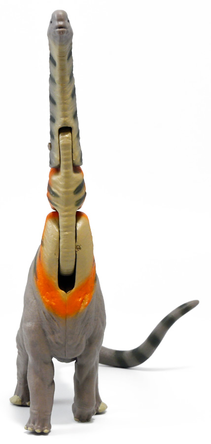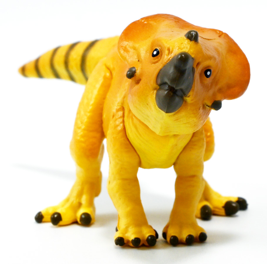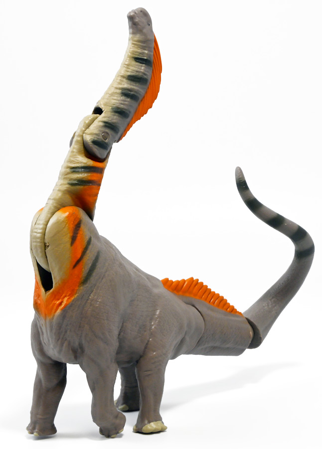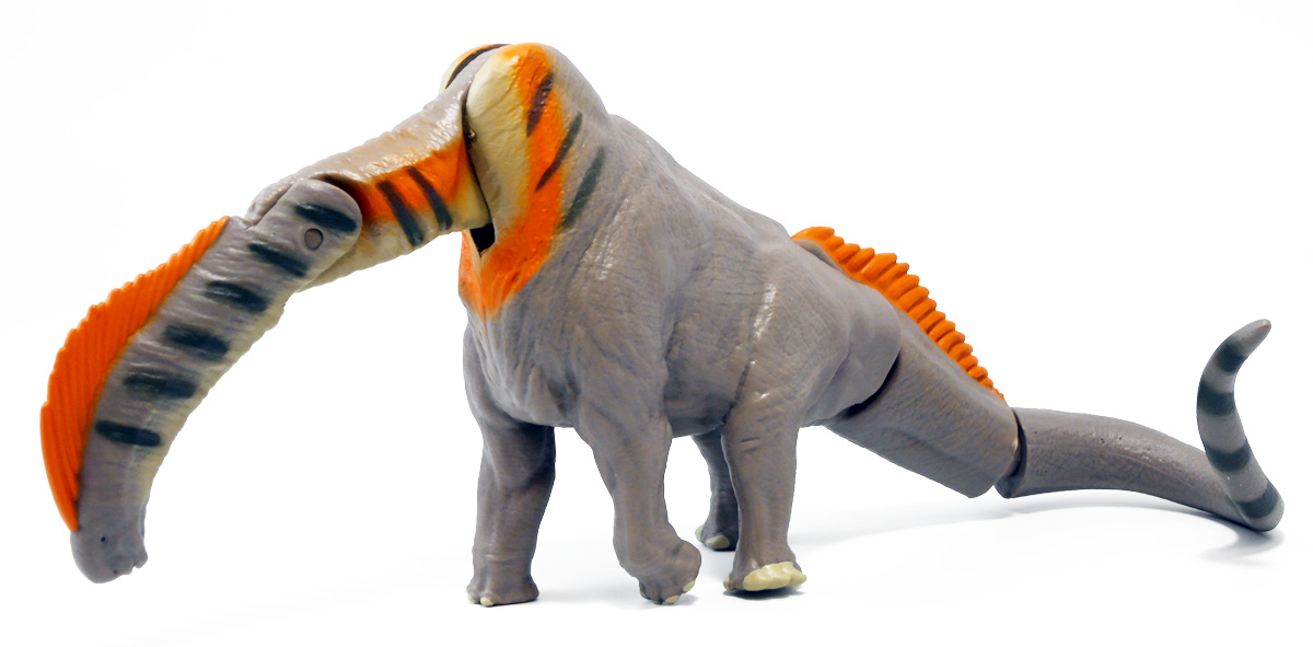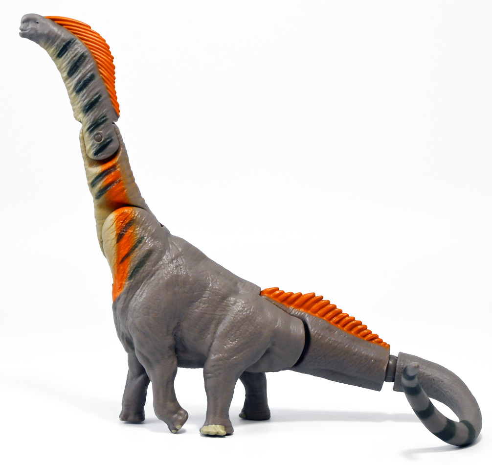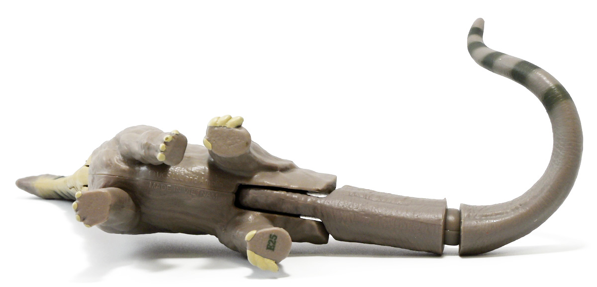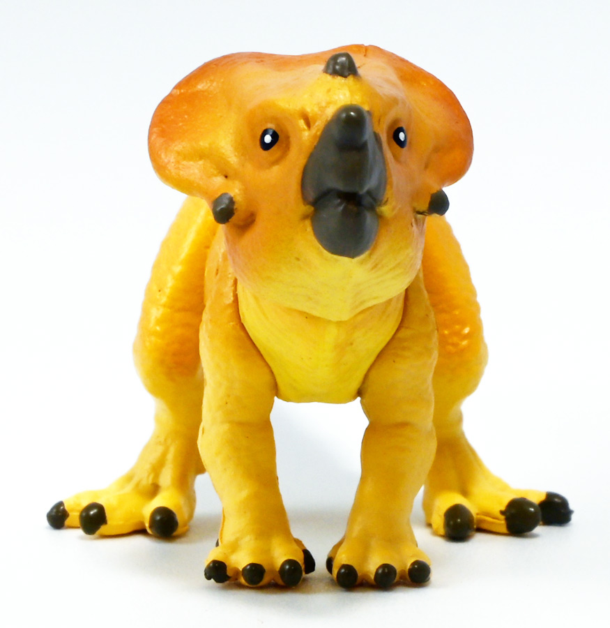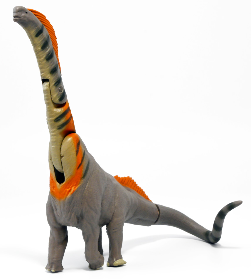 ■アニア ジュラシック・ワールド 空のケツァルコアトルス DXセット ![]() 2025年7月26日発売 / 2970円(税込) 劇中最後のミッションをモチーフとした第三のDXセットがこちら! ここでしか入手できない新規造形アニアが入った注目パッケージぞよ! ![]() ラインナップは「ケツァルコアトルス」、「ランフォリンクス」、「プテラノドン(子ども)」の三体。 このうちランフォリンクスはこのパッケージが初登場となる新規造形アニアだが、劇中に登場しない翼竜であるぞよ。 ![]() パケトップ。 ![]() ボトム。 シール訂正&点字シールのお知らせあり。 ![]() カードが三枚付属。 ランフォリンクスは劇中に登場せず、コンセプトアートが存在しない為、 「ケツァルコアトルス」が飛行形態と着陸形態で二枚入っています。 ![]() 飛行ケツァルは「ダイノスターズ」の綴じ込みふろくにもなっていたが、 本パッケージ封入のものはキラキラのレアバージョン。 ほか、ケツァルやモサは「てれびくん」や「幼稚園」ふろくのキラバージョンもあるぞよ。 ポップアップストアでティラノのキラカードを配ったりもしたみたい。 ![]() パカっと開封! これまたパッケージいっぱいに収まっている! でっかいぞよーっ!! ![]() まずはこちら! 後期白亜紀の末まで大空を支配していた巨大翼竜「ケツァルコアトルス」ぞよ! アステカの蛇神にして天空の支配者・ケツァルコアトルの名を冠されたこの翼竜は、 これまでに知られる中でも最大級の飛翔動物と考えられるが、発見された化石は断片的なものであり、 例によって初めはでっかく誇張して見積もられていたので年々小さくなってゆくのはご愛敬・・・。 最初は翼開長18メートルとか言われていたが、最近は12メートルとかもっと小さかったとかいろいろ言われている。 ま〜大きかった事は間違いないだろう! ![]() 第一、第二のミッションを成功させ、残る第三のDNAサンプルを入手する為、 ルーミス博士のアドバイスのもと、ミッションチームは巨大翼竜ケツァルコアトルスの巣を目指す! ゾーラ達が懸垂下降で絶壁の谷を下ってゆくと、そこには起源不明の古代寺院の遺跡がぽっかりと口を開けていた・・・。 どうやらケツァルはここを巣穴に使っているみたいぞよ! 運良く翼竜の卵を発見した一行はこれ幸いと注射器を差し込みDNAサンプルをゲット! ルーミス博士は博愛の恐竜おたくなので、胚を傷つけないように白身だけお裾分けしてもらったが・・・ こんな卵に針ブッ挿してどでかいアンプル一本分中身抜いて赤ちゃんが無事なもんかいね? と、そこへ怒りの親ケツァルコアトルスが襲来! ピンチに陥るゾーラ&ルーミス! ルクレールが懸命にサポートしてくれるが、これが仇となり彼は殉職! ルーミス博士も谷から落下するが、九死に一生を得た!! DNAサンプルも無事ぞよ!! や〜・・・多大な犠牲を払いびっくり展開もあったがなんとかミッションコンプリートぞよね〜・・・ って、そこに寺院に繋がる階段あったんかいっ! おい〜・・・じゃあ絶壁の谷を命がけで下ったのはなんだったんだぞよ〜・・・。 ![]() さて、劇中ではケツァルコアトルスの卵からサンプルを入手する。 古生物の卵化石と言うのはそれだけだと誰が産んだなんの卵なのかはよくわからない。 近くに親と思われる化石が残っている場合だけはっきりとなんの卵かと言う事が言えるぞよ。 また、生まれる直前の胚が化石として残っている事もごく稀にあり、こういう場合もそれがどんな動物の卵であったか判断できる。 近年ではCTスキャンで化石の中身を見る事も出来るので、色々研究が進んでいるぞよ。 さて、ケツァルコアトルスの様な翼竜もやはり卵を産んでいた。 ・・・が、それは鳥のように硬い殻に覆われていたのではなく、 ぷにぷにと柔らかい卵だったと考えられている。 べこっとへこんだ状態の化石が見つかっているぞよよ。 そして翼竜たちはその軟らかい卵を湿度の高い土中に産み付け、 お世話はしなかったと考えられる。 イメージとしてはウミガメみたいな感じぞよね。 つまり、鳥の様な巣を作り、硬い殻の卵を産む劇中のケツァルコアトルスは古生物学的には正確でないと言える。 ![]() シリーズにケツァルコアトルスは二度登場しているぞよ。 「新たなる支配者」で登場したバイオシン社のサンクチュアリに保護されている個体と、 今回登場のサン・ユベール島で製造されたインジェン社製の個体では復元デザインが異なっている。 本商品はインジェン社製のデザインぞよね。 ![]() 2作で最も異なる点は頭部造形で、 わたくし的にはバイオシンバージョンの方がイメージに近いが、 そもそもケツァルコアトルスの頭骨はどの種も完全なものが見つかっていない。 従って今日で知られている一般的な復元イメージは、 ケツァルコアトルス・ラーソニの断片的な化石を繋ぎ合わせて復元したものであるぞよ。 と言う事でこんなペリカンみたいなケツァルコアトルスがいても必ずしも間違いとは言い切れない・・・の