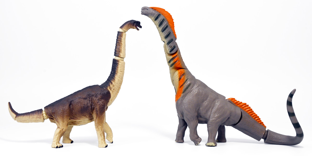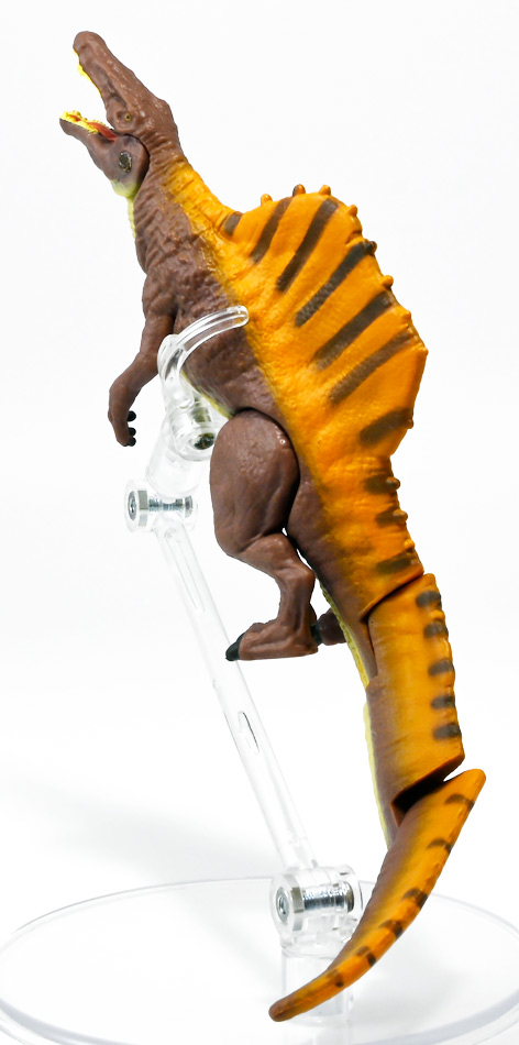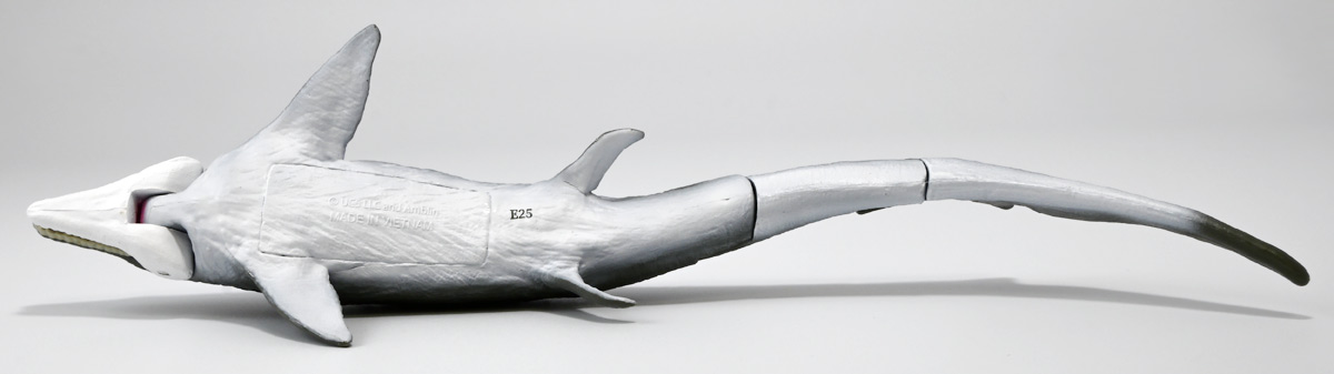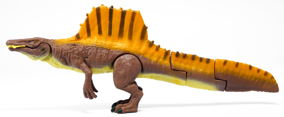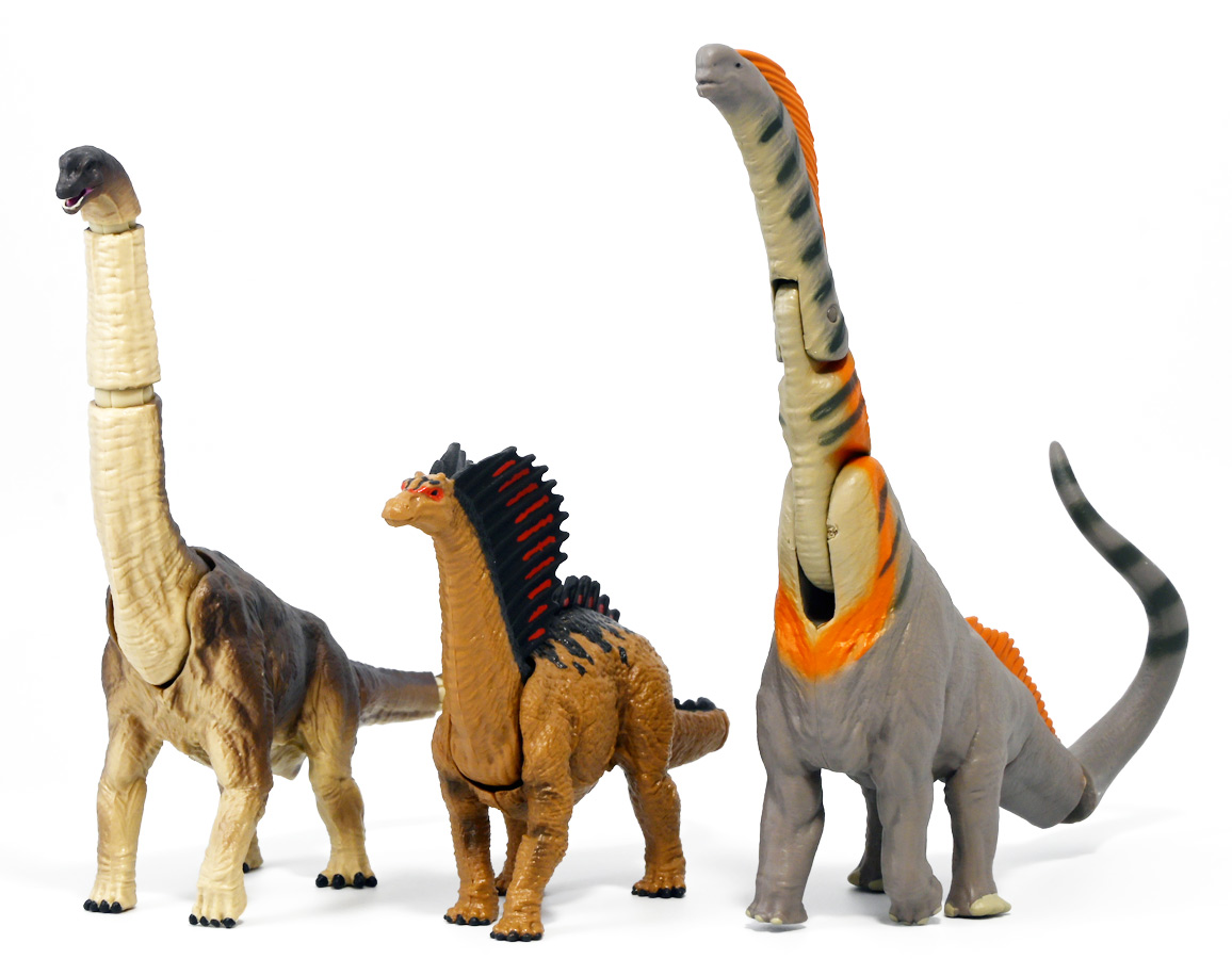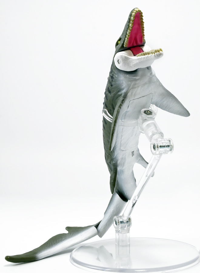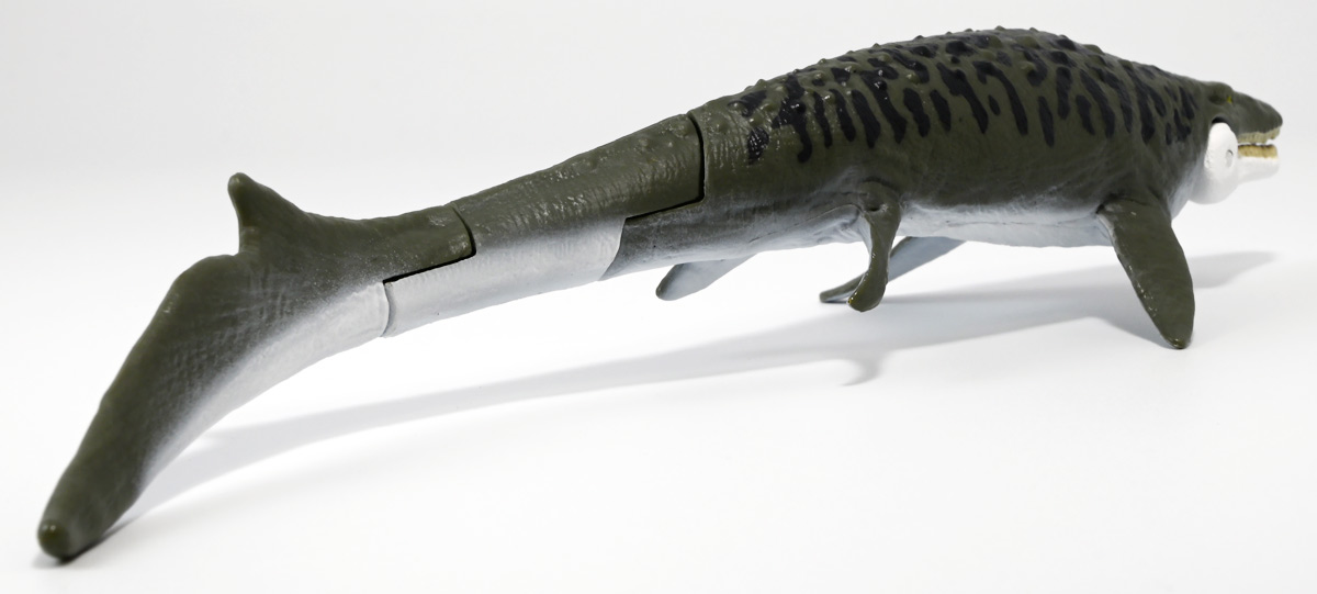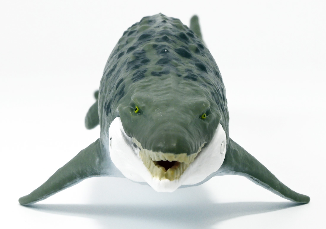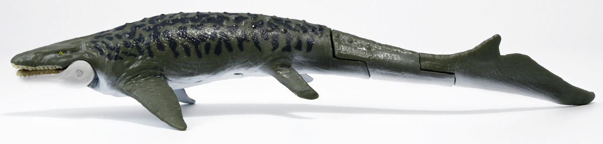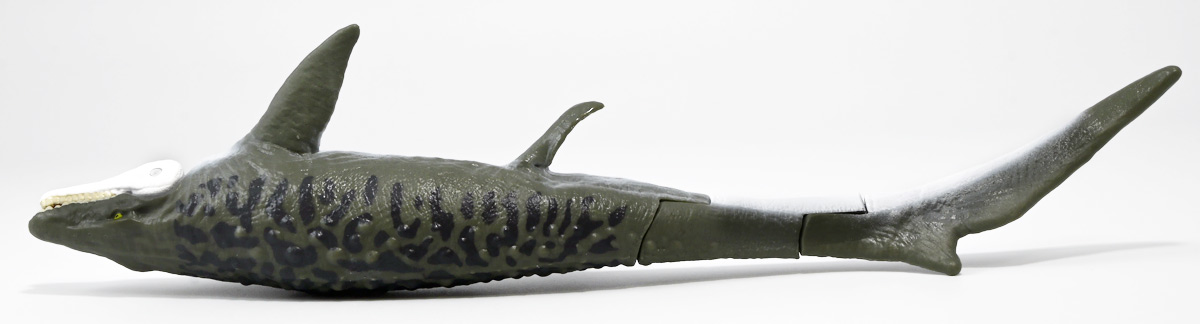■アニア ジュラシック・ワールド 海のモササウルス DXセット ![]() 2025年7月26日発売 / 2970円(税込) 2025年、ジュラシックワールド再始動! 国内では8月8日より公開となった最新作「ジュラシック・ワールド/復活の大地」に合わせて、 映画に登場する新恐竜達が続々アニア化! なんとわたくし・・・今回は既に映画を鑑賞済みなので本レビューもネタバレ紹介してゆくぞよ!! まだ映画見てない人はテキストを薄眼で遠くから見るぞよよ!! ![]() ジュラワアニアの新作は6月28日に単品パッケージ「T-レックス(復活の大地Ver.)」、 「モササウルス」、「スピノサウルス(A)」、「ティタノサウルス」、「ケツァルコアトルス」が登場。 プレイセット「ジュラシック・ワールド 決めろ!ダイノアタック」と 「プラレール ジュラシック・ワールド 恐竜輸送列車」も発売されたぞよ。 同時発売で各「DXセット」も発売予定でしたが延期となり、 7月26日に無事リリース。 7月にはトミカの「ツアービークル」も登場しており熱い月となったぞよ! ![]() 購入特典のプロモカードパックもまだまだ配っている。 こちらは「アンキロサウルス」レビューで紹介したのでそちらを参照のことぞ。 ![]() 本パッケージには「モササウルス」、「スピノサウルス(B)」、「アクイロプス」のアニアとバトルカードが封入。 このうちスピノサウルスBカラーとアクイロプスは本パッケージでしか入手出来ない為、 見所の多いセットパッケージとなっているぞよ! ![]() 単品パケと内容が重複しているので、どれ買えば良いんだよ!?と混乱しがちだが、 とりあえずDXセットを全部買っとけば造形はコンプできると言うワケ。 ![]() パケ底の材質表示がシールで訂正されている。 恐らく発売延期になった理由はここで、パッケージが間違っていた為に修正する必要があったのだろう。 また、「点字シールを差し上げます」と書いてあり、タカトミにお問い合わせすると対応してくれるようだ。 バトルカードに点字シールを貼って目の見えない人でも遊べるようにする取り組みのようです。 目の見えない人は映画を聴いても画面にどんな恐竜が登場しているのか判らない。 けれどアニアを触ればシルエットやディテールを感じられるし、 点字シールを貼ればカードの内容も読めるようになる。 なんとも親切であるぞよ〜! ![]() ぱかっと開封! 巨大なモササウルスと新復元のスピノサウルス、可愛いアクイロプスが入っているぞよ! ![]() バトルカードは3枚付属。 「ダイノスターズ レッドティラノ号」にも同絵柄・同背景のカードが綴じ込みふろくになっていたが、 こちらはパラメーターがアップしている。 ![]() そして綴じ込みふろくと異なり、本パッケージ付属のカードは全てカット済みのキラバージョン! このパケでしか手に入らないレアカードなのだ!! ![]() それでは中身を見ていこう! まずはこちら、新規造形・新デザインの「モササウルス」ぞよ!! めちゃくちゃでっけ〜アニアです。 ![]() 「新たなる支配者(2022)」で起こった事件から5年・・・ 現生動物と共存の道を辿るかに思えた恐竜達は地球環境に適応できず、 そのほとんどが死滅。 生き残りは自然公園で管理されるか、太古の環境に似た赤道直下の熱帯地域で見られるのみとなっていた。 秘密工作員であるゾーラ・ベネットは 遺伝子製薬会社パーカー・ジェニックス社のマーティン・クレブスに雇われ、 古生物学者のヘンリー・ルーミス博士、 そしてゾーラの旧友でありエセックス号の船長、ダンカン・キンケイドらを仲間に加えると、 フランス領ギアナにある秘密の研究島・・・サン・ユベール島へと乗り込む! かつてジュラシックパーク建設を夢見たジョン・ハモンドとベンジャミン・ロックウッドが設立したインジェン社が倒産した後、 パーカー・ジェニックス社はその資産の多くを買い取っており、彼らはルーミス博士の助言を受けた研究の末、 恐竜達のDNAを用いて現在人類を脅かしている心臓病を治療する夢の新薬「パレオダイオキシン」を製造できると確信していた! なぜ心臓病に恐竜の遺伝子が必要になるのか・・・? それは恐竜はでっけー動物なので心臓もでっかく、その遺伝子を組み込めば人類の心臓も強壮になるに違いないからだ! しかし、このミッションを成功させるためには、陸・海・空の三つの恐竜からDNAサンプルを回収せねばならない! すなわち、陸のティタノサウルス(疑問名)! 海のモササウルス(海棲爬虫類)!! 空のケツァルコアトルス(翼竜)!!!であるぞよ! 見事にまともな恐竜が一匹もいないが、ともかく一行を乗せたエセックス号は最初のターゲットとしてモササウルスを選んだ! なぜならモササウルスにはインジェン社の撃ち込んだ発信機タグが健在であり、 居場所の特定が容易だったからだ! ゆくぞ、最初のミッション・・・!! エセックス号突撃ぞよっ!! ![]() 海の恐竜・モササウルス現る・・・っ! と言って早速ズッコケなのは、 白亜紀の海を支配したモササウルス類はトカゲやヘビのよう