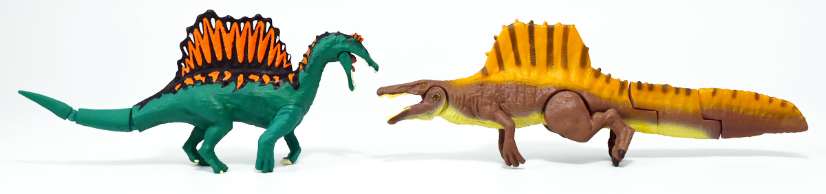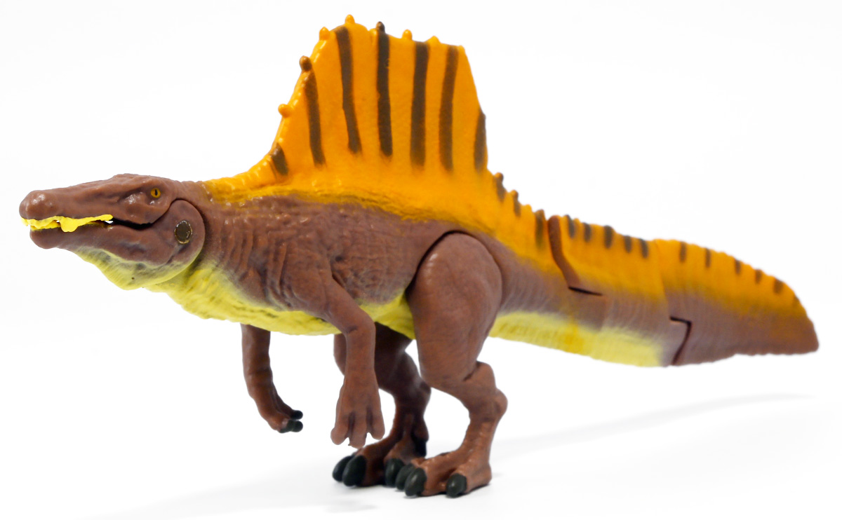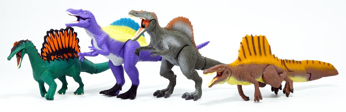 ■アニア ジュラシック・ワールド ファイナルバトルセット ![]() 2024年3月28日発売 / 5995円(税込) 2015年の映画「ジュラシック・ワールド」より、第一作目の最終決戦をモチーフにしたアニアギフトセットが突如登場! その名も「ファイナルバトルセット」ぞよーっ!! ![]() 2022年の「新たなる支配者」をもって堂々完結した「ジュラシック・ワールド」シリーズですが・・・ なんと2025年から新シリーズがスタート予定! それに先んじて2024年5月からはアニメ「サバイバル・ミッション」がネットフリックスで配信開始予定という事で、 本商品は俄かに熱を取り戻し始めた「ジュラシック」シリーズの先駆けとも言うべきおさらい玩具セットなのだ・・・! ![]() セット内容は「ジュラシック・ワールド」第一作目のラスト。 イスラ・ヌブラル島の最終決戦で活躍した恐竜達6体に加え、主人公のオーウェン・グレイディをセットにした全7体! アニア史上でも稀な豪華セットとなっている・・・! このパッケージを買えばジュラワ最終決戦で戦った恐竜達をまるっと入手できるうえ、 フィギュアは全て夜間戦闘仕様のここだけでしか入手出来ない新たなカラバリぞよ! ![]() パケ台紙は夜のジュラシックワールドとなっており、 裏にイスラ・ヌブラル島マップが貼り付けてある。 こちらは縦1mを超すビッグサイズのレジャーシート仕様だ! ![]() 絵柄はこちら。 このシートは過去発売のプレイセット「アニア ジュラシック・ワールド おおきな恐竜王国マップ(2021)」からの再録ぞよね。 という事で本商品は全て過去商品を元にした新たなバリエーションとなっており、 実質一斉再販的な位置づけですが、新カラバリとしてヴェロキラプトル姉妹が収録されるのが目新しいポイントぞよ。 ![]() まずはそんなヴェロキラプトル姉妹を見ていこう! こちらは言わずと知れた「ジュラシック・ワールド」のヒロイン・ブルーぞよ! ブルーは過去にいくつかカラバリが出ているが、本商品は夜間戦闘仕様の新たなバリエーションとなる。 サイモン・マスラニが経営するマスラニ社がIBRIS計画によって生み出した人造恐竜・ヴェロキラプトル4姉妹のうち、 恐竜内のリーダー格となるのがこのブルーだ! ヴェロキラプトルの狂暴な気質を宿しながらも、チームリーダーのオーウェンには心を許すような描写も見られ、 二人は戦いの中で種族を越えた奇妙な友情ともとれる絆を深めてゆくことになる・・・! ![]() そして原型を同じくするヴェロキラプトル、こちらは緑の体色をした4姉妹の次女・デルタぞよ! 鳥の遺伝子が混ぜられた人造ラプトルで、チームのサブリーダー格ながら性格は極めて狂暴! おろかなにんげんどもの事も隙あらば狙っており、ためらいなく食らいつくほどの残虐性を見せるのだ・・・! こちらはアニアシリーズでは初登場となる新アイテムぞよ! ![]() そしてヴェロキラプトル3体目・・・! ブルーとはライバル関係にもある3女のエコーぞよ! こちらも非常に狂暴な性質を持つ人造ラプトルだが、オーウェンとブルーの指揮によって見事なコンビネーションを見せ、 一時はインドミナスレックスの計略に惑わされたかに思われたが、最後は果敢に戦いを挑んだのだ!! やはりアニアシリーズでは初の登場となり、 今のところブルーを除くヴェロキラプトル姉妹はこのパッケージのみで入手できるアニアとなっている! ![]() まさか映画から9年もたって日本で新たなヴェロキラプトル姉妹の玩具が出るとはね・・・! 2024年に一作目の、しかも最終決戦にのみフォーカスしたパッケージが出るとは思わなかったぞよ・・・! ![]() 惜しむらくは、最終決戦コンセプトであるが為に、4姉妹のうち早い段階で死亡し、 最終決戦に参加出来なかった末っ子のチャーリーがラインナップから漏れてしまったことぞ・・・。 そもそもブルーを除くヴェロキラプトル姉妹はみんなインドミナスレックスに殺されてしまったので、 新シリーズへの再登場も叶わないとなれば、このうえ新たにチャーリーだけ発売される望みは薄いだろう・・・ ぜひアニアで4姉妹をコンプしたかったところぞ・・・!! ![]() こちらはヴェロキラプトルはヴェロキラプトルでも、 映画「ジュラシック」シリーズに登場する架空恐竜としてのヴェロキラプトル。 現実のヴェロキラプトルは全長2メートル程度、長い尾を除けばほんの全高50センチ程度の小さな小型獣脚類だったが、 映画では全長5メートル、体高2メートルまでに巨大化! デイノニクスをモデルとした邪悪なハンター怪獣として描かれている・・・! ヴェロキラプトルが属する竜盤類獣脚類恐竜には現生鳥類も含まれ、獣脚類のうちコエルロサウルス類が直接の祖先とされている。 恐竜が鳥に進化する過程で、コエルロサウルス類の段階ではっきりと羽毛を持っていたのだ・・・! ヴェロキラプトルはドロマエオサウルス類だが、同じ獣脚類である為羽毛を備えていた可能性が高く、 事実ドロマエオサウルス科の恐竜にも羽毛の痕跡が認められ