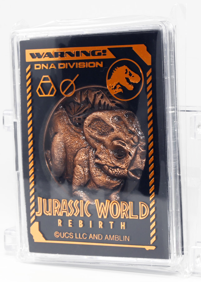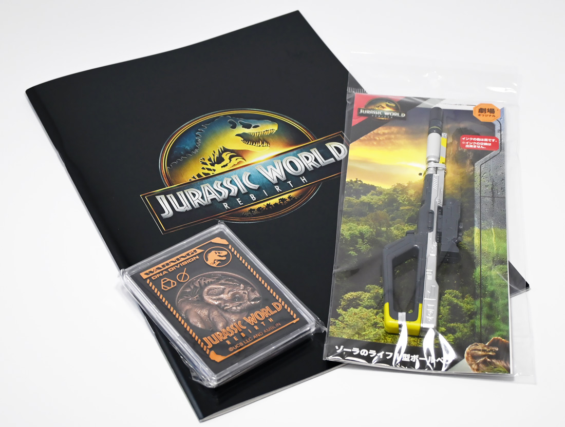 ■「復活の大地」劇場限定グッズ ゾーラのライフル型ボールペン&メダルC(アクイロプス) ![]() 今回も劇場限定グッズが様々登場しているぞよ! フィギュア系としてはT-レックスとスピノサウルスがマスコットチャームやペン、ボトルキャップのバリエで登場。 フィギュア蓋付ドリンクカップとしてティタノサウルスとモササウルスも出ていたみたい・・・だが、 正直どれも造形はイマイチ惹かれるものがなくわたくしは勇気のスルー! 4400円するモササウルスのメタルフィギュア「モサウェイト」も出ていたようだが、 入荷数が少ないらしく劇場には既に影も形も無かったぞよ。 ![]() とりあえずパンフ購入。 990円。 中身はインタビューメインで古生物やシリーズ紹介もあり。 ![]() 裏表紙は今回の主役・ゾーラぞよ! 次回も続投するのか気になるぞよね〜。 ってか、次回やるぞよか? やるぞよね!? ![]() 表紙裏表紙はメタリック仕様でキラキラしています。 これ格好良いけど指紋が付くから扱いが難しいぞよよ〜。 ![]() ![]() そして、そんなゾーラの持っていたライフルが「復活の大地 ゾーラのライフル型ボールペン」として立体化! これが国内上映における今回のメイン商材と考えて良いだろう! 価格は1980円(税込)とまぁまぁお高め。 ![]() 台紙に針金で括りつけられています。 パケを壊さず開けられるのが嬉しいぞよね。 ![]() じゃん! 劇中でゾーラが使用するライフルをモチーフとしたボールペンぞよ! お高いだけあってちゃんと彩色してありまぁまぁ豪華な仕様。 反面組み立ては甘くあちこち曲がっちゃってるがご愛敬だ。 ![]() パーカー・ジェニックス社が今回の作戦の為に用意したこの銃は、 弾丸が飛び出すのではなく針の生えた瓶が飛んで行く注射銃であるぞよ。 これが恐竜にぷすっと刺さると自動で血液を採集。 採集後は瓶がぽーんと発射され、パラシュートを展開しゆっくりと降下するので 安全にDNAサンプルをゲットできると言う発明なのだ! 劇中では注射器弾の予備もあったので外しちゃっても安心ぞよね! ![]() 恐竜を傷つけない、殺さないアイテム。 実に現代的であるぞよ。 一方でミッションチームは有事には敵を倒す事も厭わんとして神経毒の弾丸も用意していたが・・・ スピノの襲撃で物資を失った為に結局使われる事は無かったぞよ。 今回おろかなにんげんどもに倒された恐竜は一匹もいなかったかな? ゾーラがミュータドンを倒していた気がするので怪獣は死んでいたかも。 ![]() 一応トリガーも造形されているが、造形がデフォルメ的なのでフィギュアに持たせるのは難しそう。 フィギュアとのサイズ感は後述とする。 ![]() メタリック彩色がギラギラで格好良いぞよ! ![]() トップ。 全長約18.5cmのABS製だ。 ![]() ボトム。 劇場でゲットし、学校に持っていけばヒーローになれるぞよ!! ![]() キャップを外すと先っちょはボールペンになっています。 芯は替えられないのでまぁおまけ要素。 ペン先がちょっと注射器っぽくて面白いぞよ。 ![]() Figmaやコトブキヤのプラモと並べるとこのくらいの大きさ。 かなり巨大なのでフィギュアの小物には大きすぎるぞよね。 ![]() 40センチドールに持たせるとこのくらいのサイズ感。 気持ち小さめな気もするがこんなもんか? ![]() フィギュアやドールの小物として気になってるおろかなにんげんどもはご参考になさってくださいぞよ! ![]() 劇場限定グッズと言えば〜・・・そう、メダル! 今回はティラノの金メダル、モササウルスの銀メダル、そしてドロレスちゃんの銅メダル三つでている。 わたくしはこのドロレスちゃんの銅メダルは絶対買おうと思っていたから売店に残っていて安心したぞよ! ![]() 復活の大地 メダルC(アクイロプス) 直径約5センチの半立体メタル製メダル。 お値段は一つ880円ぞよ。 お、おい〜・・・前回からまた値上がりしてるぞよ〜・・・。 ![]() ケースも箔押しで格好良いぞよね! 富豪の皆さんは是非3種のメダルをコンプしていただきたいものだが、 庶民わたくしは一個だけぞよ。 最近はなんでもかんでも高くなっていっぱい買う気も失せる・・・と、そうだ! 景気の良い話が一つあった! わたくし、今回ツイッターの抽選でムビチケを当てたのでこの映画、タダで見れちゃったぞよ〜っ! ドン・キホーテの【ジュラシックワールド最新作『復活の大地』公開記念 プレゼントキャンペーン】、 なんと1万名応募のうち10名に当選と言う事でかなりラッキーじゃないぞよか!? や〜、嬉しいな〜。 ドンキと言えばあの・・・お寿司のキーホルダーを売っている店!! 万年金欠庶民わたくし、このご恩はきっと忘れないぞよ・・・! ありがとう、ドン・キホーテ! いつかお寿司のキーホルダーを買わせて頂こう! そうそう、今回紹介した劇場限定グッズはネット販売もあるので、劇場で買い逃した人は各々検索してみてくださいね。 ![]() 映画「復活の大地」は「ぞよラジ」でも深掘りしているのでこちらも合わせてお楽しみくださいぞよ! :このリンクを踏んで何かポチる