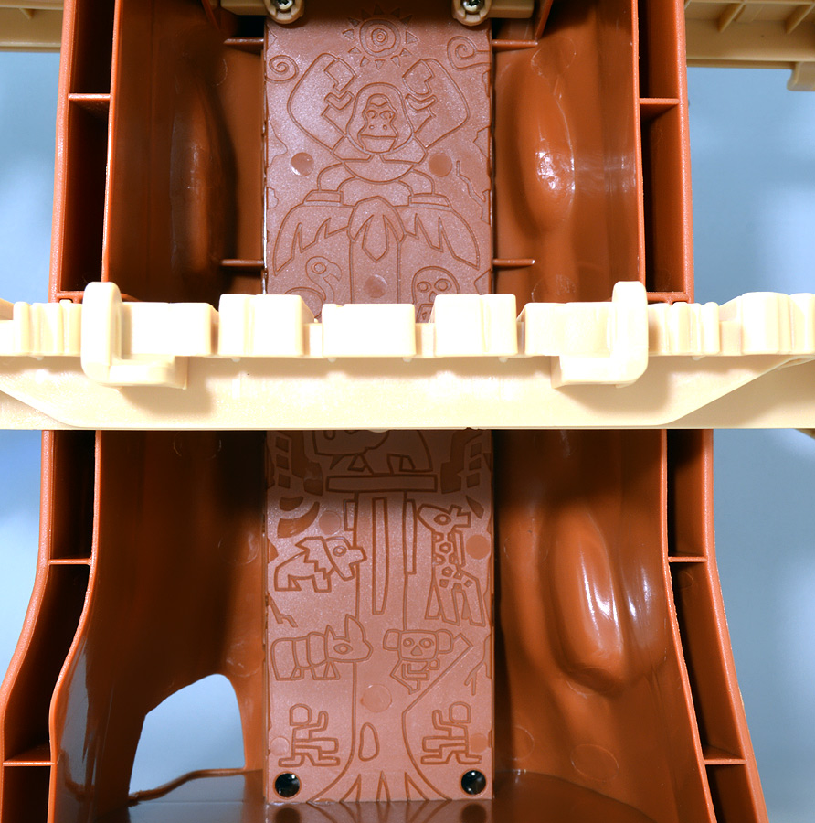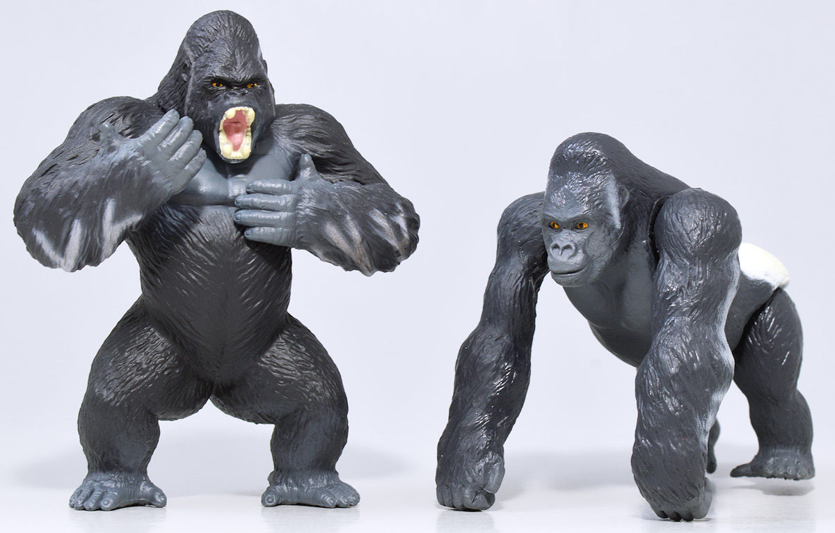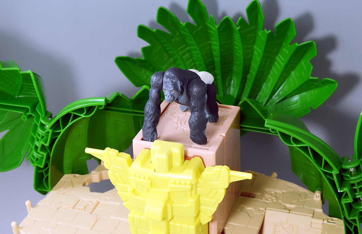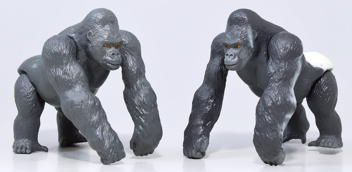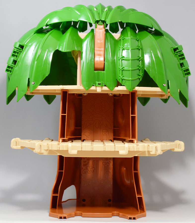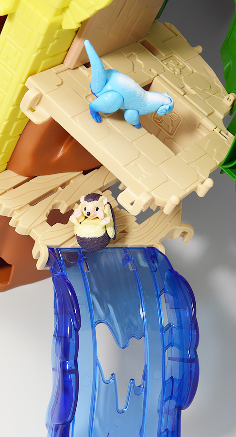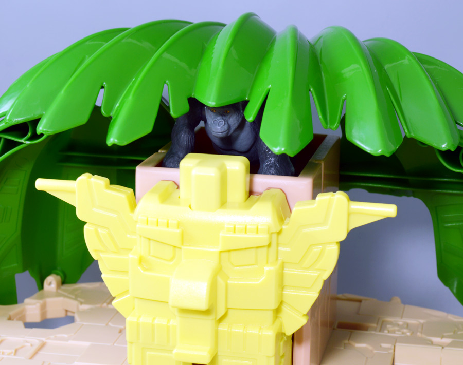 ■冒険大陸 アニアキングダム ジャイアントアクションツリー ![]() 2023年4月22日発売 / 6380円(税込) 実物アニアが登場する楽しいストップモーションアニメ 「冒険大陸 アニアキングダム」より、劇中に登場するジャイアントアクションツリーが 特大プレイセットとして登場ッ!! ![]() 惜しまれながらも完結を迎えたアニアキングダム・・・ 最早すべてが懐かしい・・・などと思い出になりつつあったこの2024年春・・・ッ!! 突如として第2期シリーズ「伝説のガーディアン編」の制作が発表・・・されたばかりか、 なんと夏には公開、玩具もいっぱい出ると言うではないか・・・! ってもうすぐじゃないかーっ!! インターネットでは既に新作アニメ版アニア6種の予約が開始されており、期待が高まるぞよ・・・!! ![]() まだまだ終わらないアニアキングダム・・・! こちらは第一期劇中にも登場したジャイアントアクションツリーのプレイセットぞよ。 10の遊びが搭載されたツリーに、ここでしか手に入らない限定アニアも入っており、 開封してすぐに遊べる仕様だ。 ![]() 結構早い段階で発売された動物サイドのプレイセットなのでパケは初期メンバーぞよ。 ![]() しかけいっぱい アニアたちの すみかだよ!! ![]() 内容一式。 説明書などは特になくパッケージが解説を兼ねている仕様だ。 ![]() 中身はビニールにくるまれているだけでほぼ完成品。 付属物を本体に装着すればすぐに遊べるぞよ。 ![]() 組み立てやシール貼りがなく開けてすぐ遊べるのはありがたい・・・ッ!! この辺はよりちびっ子向けのアニアシリーズならではの気配りでしょうか。 ポケモンプレイセットだとかなりシール大変ですからね・・・! ![]() それでは付属のアニアから見ていこう! こちらの「シルバ(ゴリラ)スペシャルVer.」は、このパッケージでのみ手に入る特別なアニアとなっているぞよ。 ![]() ゴリラの森に棲むゴリラ達のボス・シルバは、シルバーバックを背負った逞しい兄貴分。 かつてはカワウソ村の仲間として動物達にお節介を焼いて暮らしていたが、 ともすれば強引で身勝手になりがちな一面を疎まれ、裏切りを感じたシルバは村を去ってしまったぞよ。 ルッタ達が力を借りる為にゴリラの森へ出向いた時も、 初めはその過去を理由に協力を拒んだが、 ルッタ達の勇気に心を打たれ、最終的には村の動物達とも和解。 以後は頼もしい仲間として恐竜軍団との戦いでも大活躍したのだ!! ![]() 「誰かの為に必死になるお前に、オヤジさんと同じ・・・熱いものを感じたからな・・・!」 シルバはルッタのお父さんとも知り合いで、仲間になった際にはこの様な言葉でルッタの勇気を認めてくれた。 ひょっとしたらシルバのお節介焼きはルッタ父に憧れてのものだったのかもしれないぞよね! ![]() 造形は通常ラインの「AS-09 ゴリラ」の流用で、アニメ仕様となったカラバリぞよ。 オスのゴリラは13歳ごろになると、背中の体毛が銀色を帯びてくる。 黒いゴリラの群れの中でこの銀色が一際目立つ事で、オスの魅力をアピールする、 この体毛の事を「シルバーバック」というのだ! シルバはゴリラの森でもリーダーを任されるほどのイケメンなので、シルバーバックがより強調された彩色となっているぞよ。 ![]() ほか、腕にも模様が浮かんでおり、アニメ版として豪華な仕上がりとなっている。 ![]() 劇中でシルバは2種の造形が使い分けられており、 通常ラインにおける「通常版」、「ワイルドver」造形のどちらもアニメ劇中に登場している。 ワイルドverは主にドラミングなどのアクションシーンに用いられ、 その他多くのシーンではこちらの通常造形の方が主に使われている印象なので、 シルバといったらこっちの「スペシャルver」を思い浮かべるかもしれないぞよね! ![]() 大きなプレイセットも出してもらえ、アニア造形2種ともアニメに登場するとは、 シルバはアニキンの中でも優遇キャラなのです。 ![]() アニアはワンアクション付きの動物フィギュア! シルバは腕の付け根が軸アリボールジョイント可動、足が軸ロールとなっており、 このように立ち上がりポーズや・・・、 ![]() アクションポーズもつける事が可能!! この最小可動を使ってどのように活き活きとした画作りをするか。 これもストップモーションアニメ・アニアキングダムの面白味に繋がっているのだ! ![]() 「AS-36ゴリラ(ワイルドVer.)」を元にした単品版「シルバ」と並べて〜。 こちらは動きのついたドラミングポーズで、前述の通り2種とも劇中に登場しているぞよ。 ![]() こちらの通常ゴリラの造形は2023年の抽選式優待 「もうじゅっしゅうねん!! アニア10th記念猛獣セット」でもカラバリ収録されていたぞよね! こちらは明るいグレーの成型色で一般ゴリラといった趣です。 シルバーバックがないのでシルバの子分という想定で並べても楽しい。 ![]() 続いて本体となるジャイアントアクションツリーを見ていこう・・・! こちらはアニメに登場するゴリラの森に聳える巨木で、劇中ではフル塗