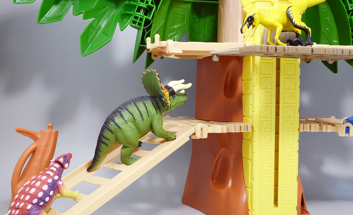 ■冒険大陸 アニアキングダム トリ―(トリケラトプス) ![]() 2023年6月15日発売 / 1045円(税込) 大人気アニアキングダムシリーズより、恐竜族の中にあって動物族との共存を重んじる一派のリーダー トリケラトプスのトリーを徹底紹介していくぞよ!! ![]() 心優しいトリケラトプス。 アニアでは通常ラインでもトリケラがラインナップされているけど、 このパッケージはちょっと特別なトリケラトプスになっているが後述ぞよ。 ![]() 巨大なツノで 体当たり! ![]() 場面カットはダーク・フレイムとの一騎打ちだ! ![]() くちにいれない! ![]() アニキンシリーズ恒例のおまけ、キャラクターカードが日本語と英語で二枚付属。 ラプルの解説によれば、トリーは頑丈なフリルと3本のツノが特殊能力に数えられ、 攻撃にも長けている一方、防御は超限界突破の数値7・・・! 生きた超重量級バトル要塞ぞよーっ!! ![]() 「この三本の角にかけて・・・っ!!」 トリケラトプスのトリー登場ぞよーっ!! ![]() アニアキングダムの支配に乗り出したダーク・フレイムのかつての友! フレイムが動物族侵略を目的に進軍を始めた時、恐竜と動物は不可侵だからこそこれまで穏やかに共生出来ていたのだと説き、 侵略派の恐竜達を諫める為に立ち塞がった心優しきトリケラトプスぞよ! ![]() ![]() まず一目に特徴的なのはこの大きなフリル! 彩色が非常に美しいぞよね!? 黄色を基調に、オレンジと茶のグラデだけで複数色あるし、黒いラインに丸模様のアクセント、 先っちょのトゲも茶で色分けされており、大変丁寧な彩色がなされている! やはりフリルはトリケラの大きな特徴の一つなので豪華仕様は嬉しいですよ〜。 ![]() 背中には縞模様。 ![]() とても情報量が多くて見ごたえのあるトリケラフィギュアに仕上がっている。 ![]() お腹側もグラデ塗装されていて豪華。 爪も色分けされています。 アニキンの恐竜族はほんと豪華ですよ〜。 ![]() アニアはワンギミック付きの動物フィギュア! トリーは首が軸入りボールジョイントで可動します。 ![]() 上下に振る事はもちろん、ロールさせて首を傾げるポーズもできちゃうのだ。 ![]() これだけで活き活きとしたポーズが再現できる! アニアの角竜ではお馴染みの可動となっております。 ![]() さて、トリーについては以前にギフトセットの「ボルケーノの恐竜セット」に収録のメタルレッドverも紹介済みなので、 そちらも参照のことぞよが・・・おや!? てっきりカラバリかと思いきや、造形が全くの別物っ!! なんと単品版トリーは新規造形のトリケラトプスなのだ!! ![]() 比べてみると彩色パターンが異なるのは勿論、そもそも原型に共通箇所が無い。 メタルレッドverはアニアの通常ライン「AL-02 トリケラトプス」のカラバリだが、 トリーは全体に一回り大きく迫力のある造形となっているぞよ。 ![]() 大きく異なるのは角の形状ぞよね! フリルも大きくなって、更に尻尾も太くたくましくなっている。 やはりダーク・フレイムと渡り合うキャラクターには、 通常ラインのトリケラよりもより堅牢で逞しいビジュアルが必要だったと言う事ぞよかな!? ポージングも変更され、どっしりと構えた姿勢になっています。 ![]() ←トリー / メタルレッドver / 福井県立恐竜博物館販売のトリケラトプス・ホリドゥス→ トリケラトプスは後期白亜紀のララミディア大陸を支配した最後のケラトプス科として有名ぞよね! 絶滅した鳥盤類恐竜の中でも最も知名度がある為、その名は恐竜の定義に登場する程一般に知れ渡っている。 2023年は恐竜科学博で主役だったし、恐竜博2023では新種のフルカトケラトプスが展示され話題となった! 角竜は今、非常にアツいジャンルと言えるだろう・・・っ!! トリケラトプスに興味のあるおろかなにんげんどもはぜひ、 ↑のリンクからイベントレポートなどを入口に理解を深めて欲しいぞよ!! ![]() トリケラトプスを代表とする周飾頭類の角竜化石は膨大に産出し、様々見つかっているけど、 よく調べてみると同じ種の別な成長段階だった・・・と言う事がよくあるぞよ。 これまで数多命名されてきたトリケラトプスだが、 現代では代表的なホリドゥスとより新しい地層から見つかった進化形のプロルススの2種のみが有効とされている。 福井県立恐竜博物館限定アニアには、通常ラインの「AL-02」のカラバリとして「ホリドゥス」がラインナップされているぞよ。 ホリドゥスとプロルススの主な見分け方は鼻角で、プロルススの方が鋭利につき出していると言われるが かなり微妙な違いなのでぱっと見で見分ける事はなかなか難しい! 今回のトリーはせっかく新規造形なのだから、通常ラインのホリドゥスに対して プロルススを思わせる造形になっていれば面白いと思ったが・・・並べてみるとトリーもホリドゥスのように感じるぞよね。 前方に突き出した二本の上眼窩角の形も大きく異なるが、この角は成長段階によって形が変わり、 個体差も大きかったと言われているのだ。 ところで、トリケラトプスの前