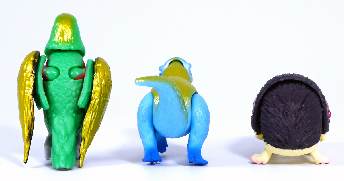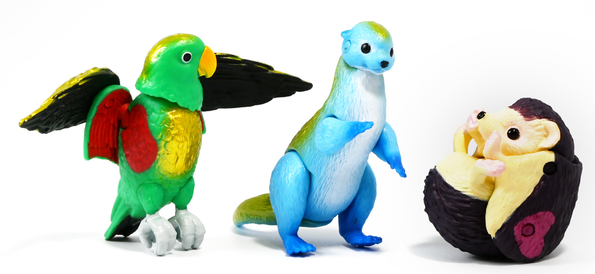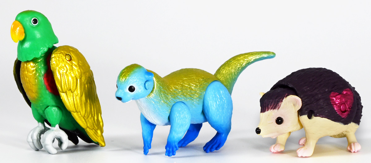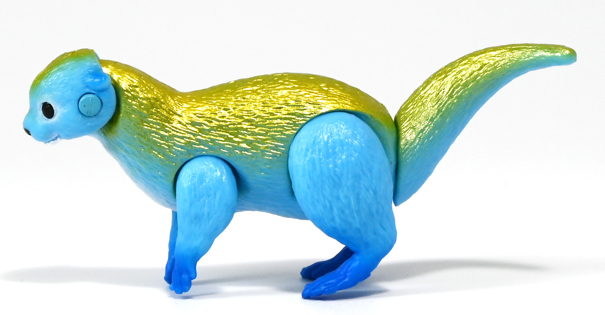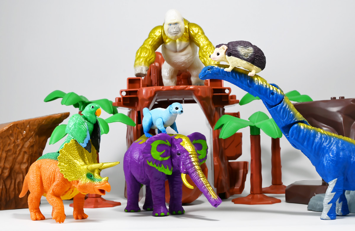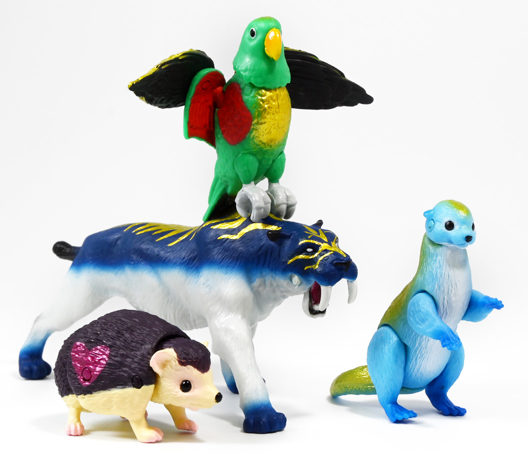 ■冒険大陸 アニアキングダム ルッタとなかまたちセット(キングゴールドVer.) ![]() 2025年10月2日発売 / 2200円(税込) ほんもの玩具がストップモーションで動きまくる大人気アニメ「アニアキングダム」! 第二期「伝説のガーディアン編」に続き、 この2025年9月27日より第三期新シリーズ「キングゴールドマウンテン編」が配信開始! 合わせて劇中登場のアニア達がそのまま玩具として発売しているぞよ! ![]() 玩具も一挙新登場! しているが、わたくしは送料合わせで半分ずつに分けてポチったぞよ。 ![]() この「ルッタとなかまたちセット」は新シリーズに合わせたギフトセットの一つ。 なかよしトリオの新カラバリがまるっと手に入るぞよ。 ![]() もう終わりかと思えば突如再開。 「アニアキングダム」は急に新シリーズが始まるから気を抜けないのだ・・・! ![]() ![]() 今回のシーズンでは動物達をパワーアップする謎の果物 「金のリンゴ」を得る為にルッタ達がキングゴールドマウンテンに挑み、 奮闘すると言う内容となっているぞよ。 ![]() ルッタ、ハート、エディ、そしてサベールの「キングゴールドver」に加えて ジオラマシートも封入されている。 ![]() パカっと開封! ブリスターに収まっています。 ![]() まずは我らがルッタの新カラバリ・・・! 「ルッタ キングゴールドver.(コツメカワウソ)」 なんと金のリンゴを食べてゴールデンにパワーアップしているぞよ!! ![]() トップ。 背中側が金ピカに! ちびっ子は金ピカが好きぞよからな〜。 ![]() ボトム。 基本仕様は通常ルッタと変わらず。 彩色が一色増えているので豪華ぞよ。 このカラーはルッタの「アニアキングダムを守れるように強くなりたい!」と言う意志の表れぞよ。 ![]() 続いてエディの新カラー、 「エディ キングゴールドver.(オオハナインコ)」 こちらも胸と羽が金ピカになりました。 ![]() 劇中ではこのパワーアップを齎す金のリンゴを求めてルッタ達が奮闘する訳だけど、 最終話の変身に先駆けて、ルッタ達がどんなパワーアップを果たすのか、 その想像図、妄想として第2話でこれらのフィギュアが登場しているぞよ。 ![]() エディ曰く「賢さをパワーアップ」しているとの事。 原型は過去のなかよしトリオと共通なのでギミックもそのまま受け継いでいるぞよ。 ![]() そして 「ハート キングゴールドver.(ヨツユビハリネズミ)」 紅一点のハートだけ他と仕様がやや異なる。 ![]() キングゴールドverと題しながらパワーアップは側面のハートマークがメタリックピンクになった点。 ハートによれば「かわいさをパワーアップ」しているらしいぞよ。 ![]() ボトム。 全て「G25」の印字がある為2025年製と見分ける事が出来るぞよ。 ![]() カワウソ村のなかよしトリオが金のリンゴを食べてパワーアップ! キングゴールドverで三度登場ぞよ!! ![]() 劇中に出てくるフィギュアがそっくりそのまま玩具になった! 人形劇の人形をそのまま売っちゃえば良いじゃんとはシンプルかつ合理的なアイディア。 2023年の開始からシーズンを重ねて3年目・・・! 始まった頃はまさかこんなに続くとは思わなかったぞよね!? ![]() そしてアニメが終わったら絶対コツメカワウソ、ヨツユビハリネズミ、オオハナインコの動物カラーが出ると思っていたが、 アニメカラバリが増えて普通のカラーがまだ出ていないのも意外な展開!! 可愛いから良いけどね! ![]() 仲良しトリオおしり。 ![]() アニアはワンギミック付きの動物フィギュア! これら三体は過去のバリエーションとギミックを共通しており、 ルッタは頭、四肢、尾が簡易可動。 エディは頭のロールに加えて翼が展開可能。 ハートはくるんと丸まるギミックを搭載しているぞよ。 ![]() ポーズを付けて並べれば「本物」の写真が撮れちゃうぞよ!! キミのお部屋が「アニアキングダム」に早変わりだ!! ![]() そして本パッケージにはもう一つ、 「サベール キングゴールドver(サーベルタイガー)」も封入されています。 ![]() 元は太古の時代から復活した氷河戦士の一人として 現アニアキングダムの支配を目論んだサベールも、すっかり絆されてカワウソ村の仲間になったぞよ。 「キングゴールドマウンテン編」では一話からこのパワーアップ状態で登場。 「きんきら金のキーン!」とご機嫌にバナナの皮の山の裏から現れた。 ![]() 何を隠そう、カワウソ村にパワーアップの金のリンゴを齎した者こそ、 金ピカになったスピンとサベールなのだ! その秘めたる力を見せつけるように、 サベールは強化されたジャンプ力(と運の悪さ・・・)をみんなに披露してみせた! これを見てフレイムは「強みと弱みを同時に伸ばす禁断の果実」であると分析しているぞよ。 ![]() サベールとスピンのパワーアップを見て、ルッタ達は金のリンゴが欲しくて欲しくてたまらなくなる! しかし残っているリンゴはたった一つ・・・。 レースでルッタがゲットするも、空腹で倒れているラベンダに譲ってしまうぞよ。 そう、バナナの皮の山は全てラベンダ一人で築いたものだったのだ! ラ