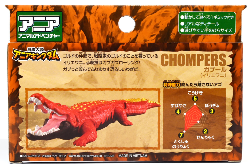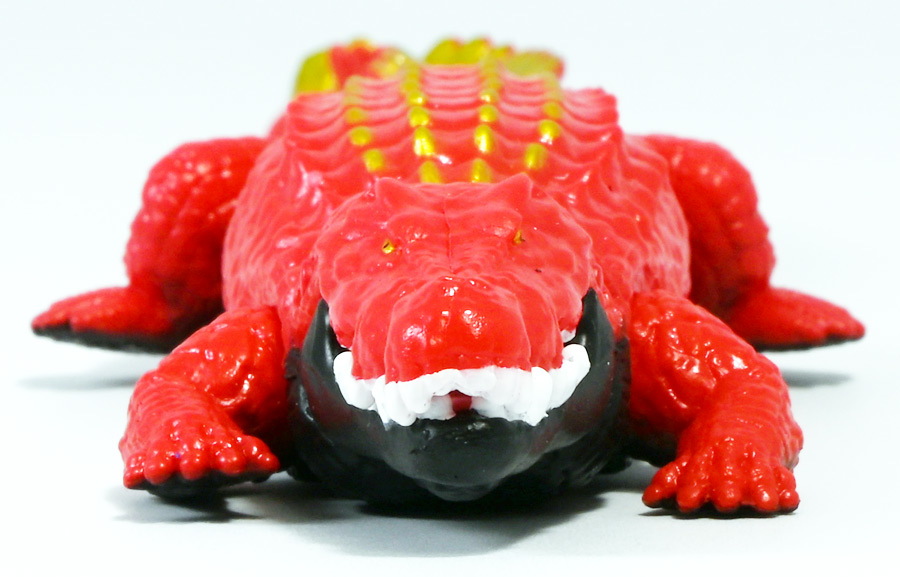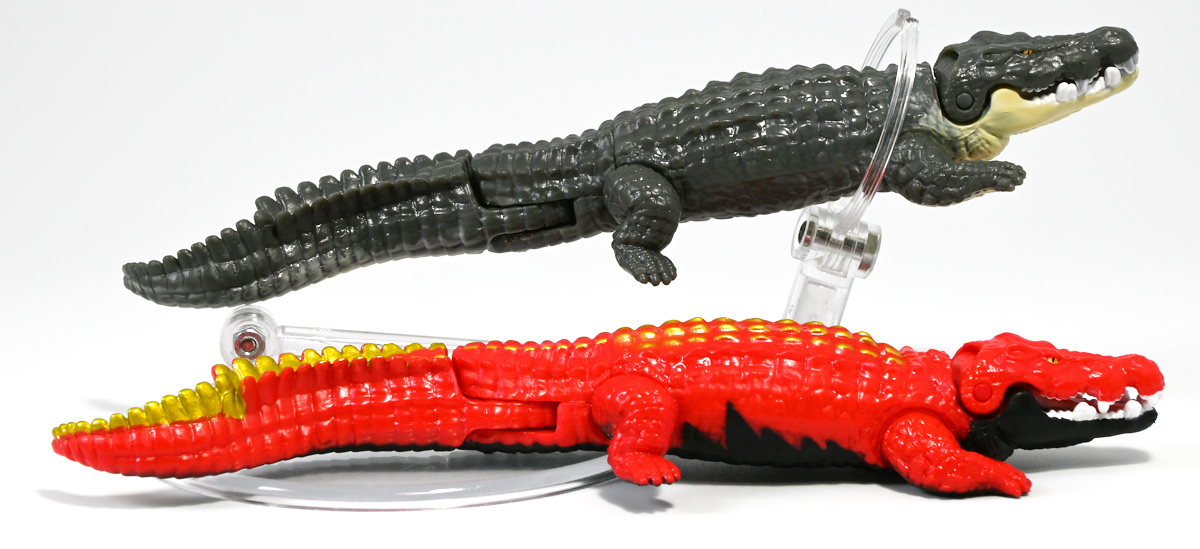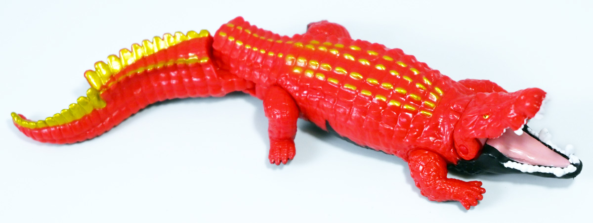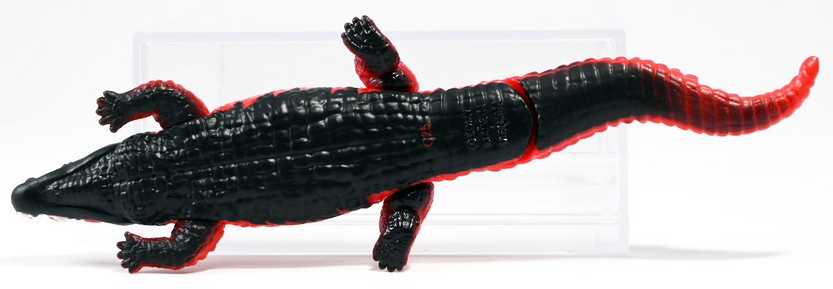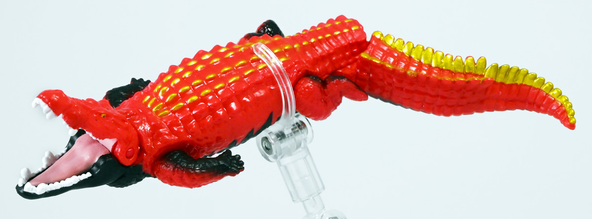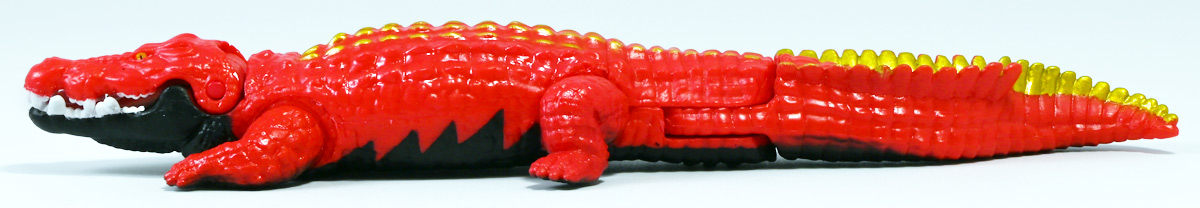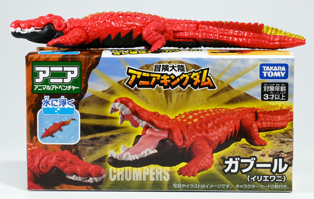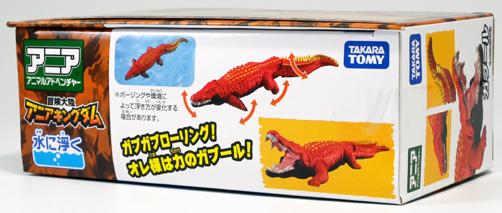 ■冒険大陸 アニアキングダム ガブール(イリエワニ) ![]() 2025年10月2日発売 / 1045円(税込) アニアキングダム新シリーズ「キングゴールドマウンテン編」より登場のガブールが、 劇中そのままの姿でアニアフィギュア化! ![]() 新作単品パケの背景は金ピカ感を強調したデザイン。 今回登場した新作アニアは全て過去原型のカラバリ、 金のリンゴでパワーアップした形態ぞよ。 ![]() ガブガブローリング! オレ様は力のガブール! 水に浮く! ![]() くちにいれない!! ![]() キングゴールドトリオのパケ側面には共通のあらすじがはいっています。 ![]() 付属のキャラクターカードも金ピカ風デザイン。 ガブールはとくしゅのうりょくが限界突破の数値7! やはり金のリンゴでパワーアップしているみたいぞよね! ワニは恐竜と同じ爬虫類の仲間と解説されている。 恐竜もワニも同じ主竜類なので、これは正解ぞよね! ![]() 金のリンゴを求めてキングゴールドマウンテン踏破を目指し旅立ったルッタ達! 探検チームの行く手を阻むのが、新たに現れたキングゴールドトリオの一角、 力のガブールであったぞよ!! ![]() キングゴールドトリオは第一話ラストより登場。 ゴルドの命令で山に立ち入る者へ襲い掛かってくるぞよ! 「伝説のガーディアン編」では新キャラのガーディアン達が一人ずつ現れたが、 今回敵のキングゴールドトリオは出ずっぱりなのでかなり活躍してるぞよね! ![]() 戦略家のゴルドの事を慕っており、チーム意識が強く乱暴者に見えて真面目さん。 特に名乗り口上を重んじ、「力のガブール!」と高らかに登場するのがお約束だが、 続くシソッチは毎回とぼけた名乗りをするので格好がつかないのもお決まりの展開ぞよ! ・・・ちなみに、第二話で本格登場したガブールは本商品とちょこっと彩色が異なる・・・ように見える。 目の金色が未塗装で、赤地に瞳の黒だけちょんと描かれているのだ! どうやら試作品で撮影していたみたい? あるいは角度でそう見えるだけ・・・? 気になるポイントぞよ。 ![]() 特徴はなんと言っても真っ赤なボディに金と黒の差し色。 これが非常に格好良いぞよね! ![]() 逞しくうねった尾! 「ガブールスーパーバッティング!」 劇中では木の実を弾いてルッタ達に攻撃を仕掛けてきた!! ![]() トップ。 ワニの鱗は鱗板と呼ばれ、その下には板状の骨である皮骨が発達し、とても硬いぞよ! 本商品では背鱗板一つ一つが金で彩色されていて非常に美しく格好良い! 丁寧仕上げぞよな〜。 ![]() お腹側も格好良いブラックだ! 大体生き物はみんな背中側が濃い色でお腹側が明るい色のカウンターシェーディングの体色になるのが普通であるぞよ。 ワニもやっぱりお腹は普通白っぽい色をしている。 ガブールのようにお腹の黒い動物も中にはいるが、これは何か理由があって色素を作っていると考えられる。 なぜお腹が白い方が有利なのかと言えば、大体の場合保護色の役割をする。 しかし一方で、胚発生の初期に背中側にある神経冠から色素を作る元となる細胞が発生するから、 と言う根本的な理由もあるみたいぞよ。 だから背中から色がついて、お腹には色がつきにくい。 色素を作るのもコストであるからして、動物もほんとは余計な力を使いたくないぞよね。 最初にこういう理由があって、 省エネしつつ、生存に有利な色のパターンがたまたま生き残ってきたのかもしれない。 ![]() ガブールは口が開閉し尾が左右にスイング、更に四肢もロール可動し表情付けが可能ぞよ! ![]() これにより遊泳ポーズにも変形できるのだ!! すいすい泳ぐポーズで飾っちゃおう!! ![]() 彩色も美しく、実に良く出来ていますぞよ〜! ![]() 本商品は「水に浮くver」なのでお風呂に入れて遊ぶ事も出来る! 「アニアキングダム」シリーズとしてはメガーロ、シャラックに続く三体目の水に浮くアニアとなっているぞよ。 ![]() ガブールは「AL-28 イリエワニ(水に浮くVer.)(2024年5月)」の原型を元にしたアニメ版カラバリ。 恐らく金のリンゴを食べる前はこの普通のカラーのイリエワニだったと考えられるぞよ。 派手派手な色にチェンジして印象がガラッと変わりました。 ![]() 新登場のキングゴールドトリオは同時発売! 玩具売り場で本物のアニアをゲットしよう!! ![]() ルッタ達の前に突如襲い掛かってきたキングゴールドトリオ! ガブールはグラグラ橋を執拗に揺らし、ルッタ達の脱落を狙うが・・・!? 知恵と勇気で困難を切り抜けろ、ルッタ!! ![]() パケからはみ出す程のサイズ感! 力のガブールが劇中そのままの仕様で玩具化ぞよ! 合わせて相棒(?)のシソッチレビューへ続く↓ :このリンクを踏んで何かポチるとわたくしにささやかな報酬が入りサイトの運営費となるのでよろしくぞ! ・「アニア 冒険大陸 アニアキングダム ガブール (イリエワニ)」 ・「アニア 冒険大陸 アニアキングダム キングゴールドマウンテン」 ▲TOP |