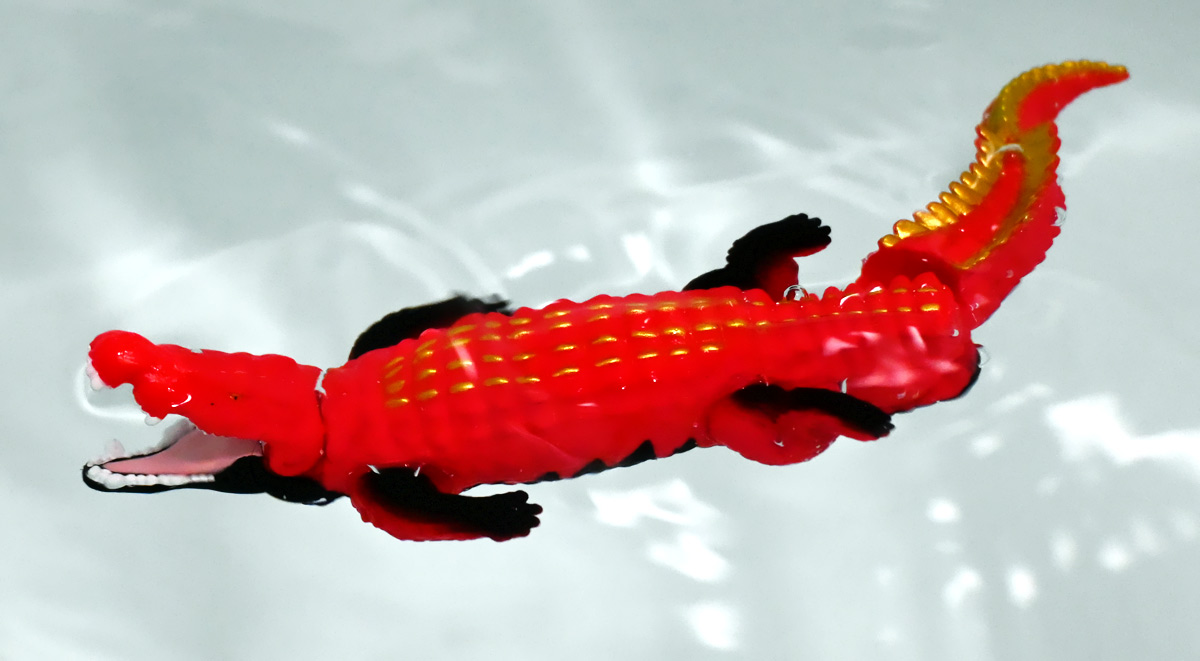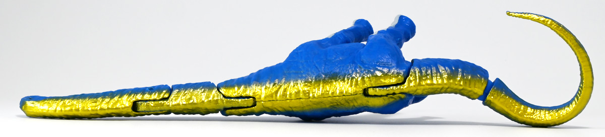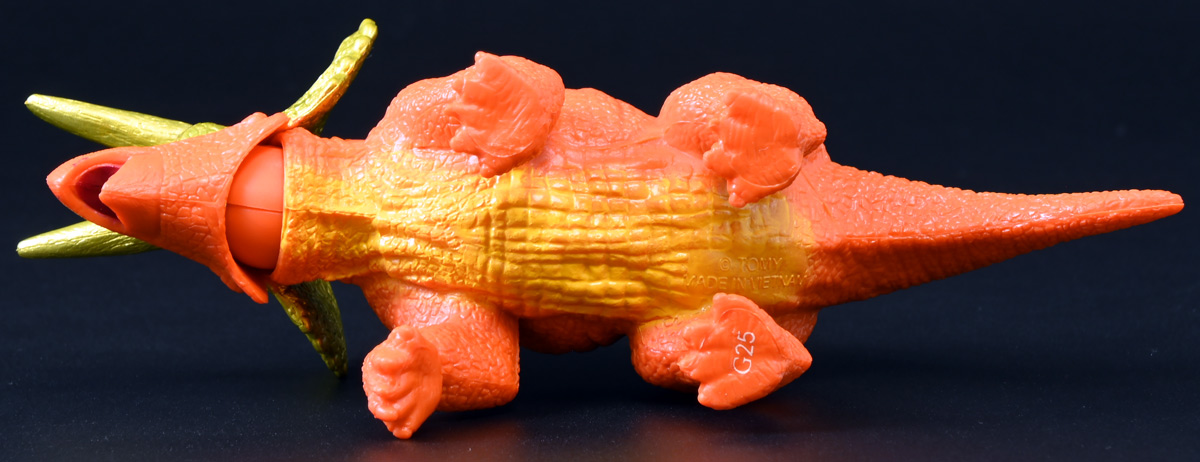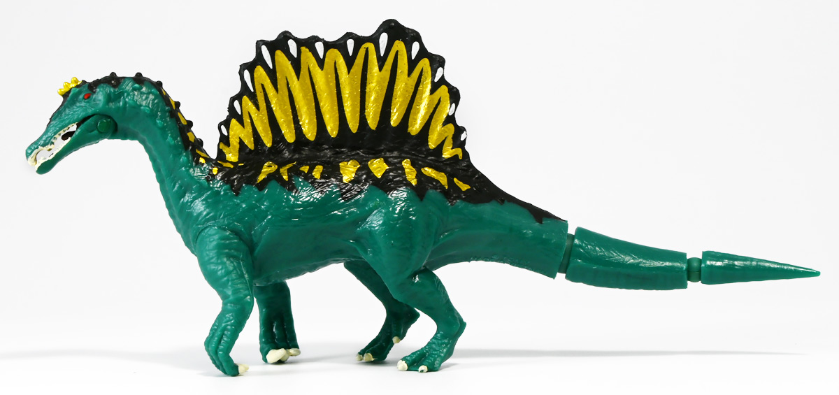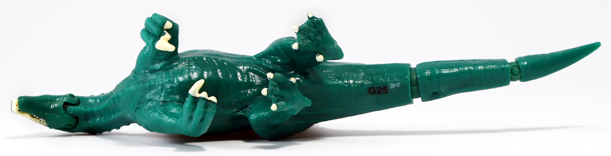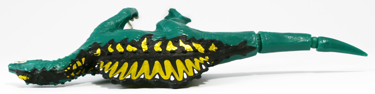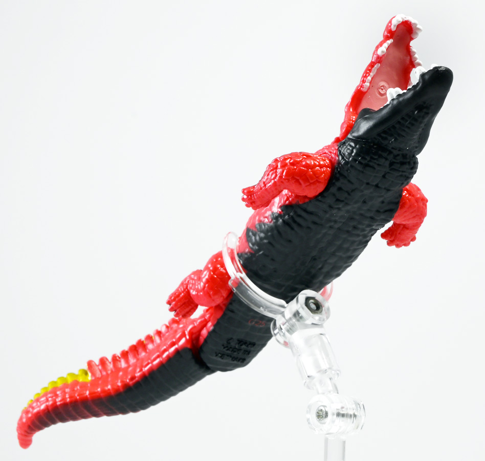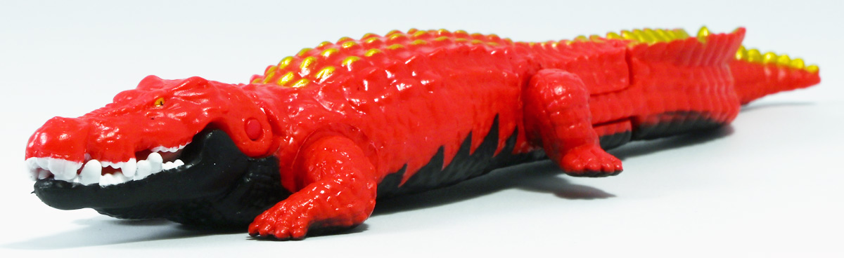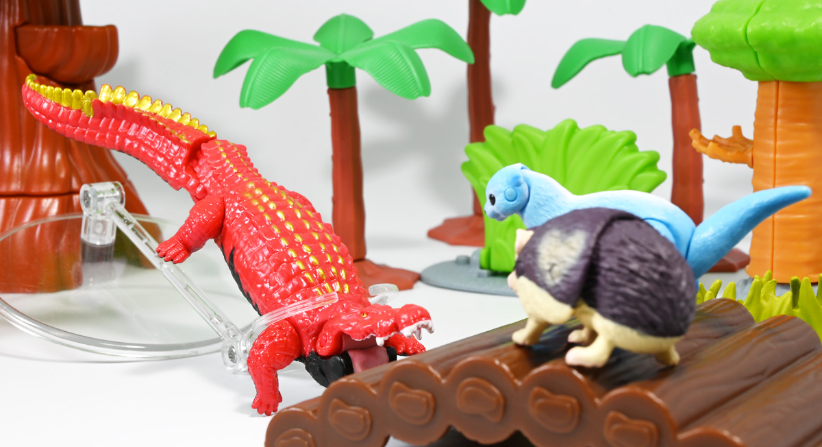 ■冒険大陸 アニアキングダム ガブール(イリエワニ) ![]() 2025年10月2日発売 / 1045円(税込) アニアキングダム新シリーズ「キングゴールドマウンテン編」より登場のガブールが、 劇中そのままの姿でアニアフィギュア化! ![]() 新作単品パケの背景は金ピカ感を強調したデザイン。 今回登場した新作アニアは全て過去原型のカラバリ、 金のリンゴでパワーアップした形態ぞよ。 ![]() ガブガブローリング! オレ様は力のガブール! 水に浮く! ![]() くちにいれない!! ![]() キングゴールドトリオのパケ側面には共通のあらすじがはいっています。 ![]() 付属のキャラクターカードも金ピカ風デザイン。 ガブールはとくしゅのうりょくが限界突破の数値7! やはり金のリンゴでパワーアップしているみたいぞよね! ワニは恐竜と同じ爬虫類の仲間と解説されている。 恐竜もワニも同じ主竜類なので、これは正解ぞよね! ![]() 金のリンゴを求めてキングゴールドマウンテン踏破を目指し旅立ったルッタ達! 探検チームの行く手を阻むのが、新たに現れたキングゴールドトリオの一角、 力のガブールであったぞよ!! ![]() キングゴールドトリオは第一話ラストより登場。 ゴルドの命令で山に立ち入る者へ襲い掛かってくるぞよ! 「伝説のガーディアン編」では新キャラのガーディアン達が一人ずつ現れたが、 今回敵のキングゴールドトリオは出ずっぱりなのでかなり活躍してるぞよね! ![]() 戦略家のゴルドの事を慕っており、チーム意識が強く乱暴者に見えて真面目さん。 特に名乗り口上を重んじ、「力のガブール!」と高らかに登場するのがお約束だが、 続くシソッチは毎回とぼけた名乗りをするので格好がつかないのもお決まりの展開ぞよ! ・・・ちなみに、第二話で本格登場したガブールは本商品とちょこっと彩色が異なる・・・ように見える。 目の金色が未塗装で、赤地に瞳の黒だけちょんと描かれているのだ! どうやら試作品で撮影していたみたい? あるいは角度でそう見えるだけ・・・? 気になるポイントぞよ。 ![]() 特徴はなんと言っても真っ赤なボディに金と黒の差し色。 これが非常に格好良いぞよね! ![]() 逞しくうねった尾! 「ガブールスーパーバッティング!」 劇中では木の実を弾いてルッタ達に攻撃を仕掛けてきた!! ![]() トップ。 ワニの鱗は鱗板と呼ばれ、その下には板状の骨である皮骨が発達し、とても硬いぞよ! 本商品では背鱗板一つ一つが金で彩色されていて非常に美しく格好良い! 丁寧仕上げぞよな〜。 ![]() お腹側も格好良いブラックだ! 大体生き物はみんな背中側が濃い色でお腹側が明るい色のカウンターシェーディングの体色になるのが普通であるぞよ。 ワニもやっぱりお腹は普通白っぽい色をしている。 ガブールのようにお腹の黒い動物も中にはいるが、これは何か理由があって色素を作っていると考えられる。 なぜお腹が白い方が有利なのかと言えば、大体の場合保護色の役割をする。 しかし一方で、胚発生の初期に背中側にある神経冠から色素を作る元となる細胞が発生するから、 と言う根本的な理由もあるみたいぞよ。 だから背中から色がついて、お腹には色がつきにくい。 色素を作るのもコストであるからして、動物もほんとは余計な力を使いたくないぞよね。 最初にこういう理由があって、 省エネしつつ、生存に有利な色のパターンがたまたま生き残ってきたのかもしれない。 ![]() ガブールは口が開閉し尾が左右にスイング、更に四肢もロール可動し表情付けが可能ぞよ! ![]() これにより遊泳ポーズにも変形できるのだ!! すいすい泳ぐポーズで飾っちゃおう!! ![]() 彩色も美しく、実に良く出来ていますぞよ〜! ![]() 本商品は「水に浮くver」なのでお風呂に入れて遊ぶ事も出来る! 「アニアキングダム」シリーズとしてはメガーロ、シャラックに続く三体目の水に浮くアニアとなっているぞよ。 ![]() ガブールは「AL-28 イリエワニ(水に浮くVer.)(2024年5月)」の原型を元にしたアニメ版カラバリ。 恐らく金のリンゴを食べる前はこの普通のカラーのイリエワニだったと考えられるぞよ。 派手派手な色にチェンジして印象がガラッと変わりました。 ![]() 新登場のキングゴールドトリオは同時発売! 玩具売り場で本物のアニアをゲットしよう!! ![]() ルッタ達の前に突如襲い掛かってきたキングゴールドトリオ! ガブールはグラグラ橋を執拗に揺らし、ルッタ達の脱落を狙うが・・・!? 知恵と勇気で困難を切り抜けろ、ルッタ!! ![]() パケからはみ出す程のサイズ感! 力のガブールが劇中そのままの仕様で玩具化ぞよ! 合わせて相棒(?)のシソッチレビューへ続く↓ :このリンクを踏んで何かポチるとわたくしにささやかな報酬が入りサイトの運営費となるのでよろしくぞ! ・「アニア 冒険大陸 アニアキングダム ガブール (イリエワニ)」 ・「アニア 冒険大陸 アニアキングダム キングゴールドマウンテン」 ▲TOP |
