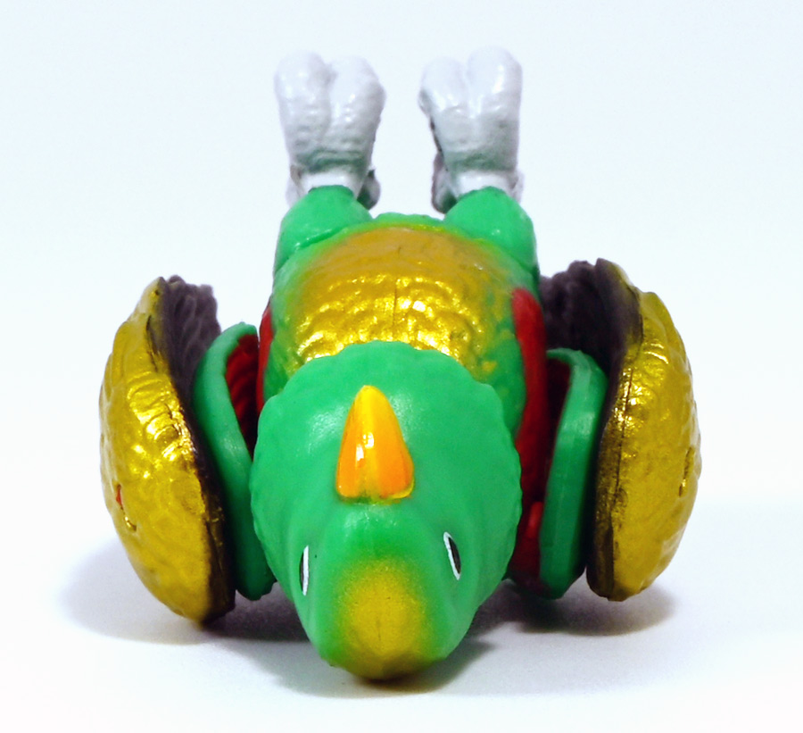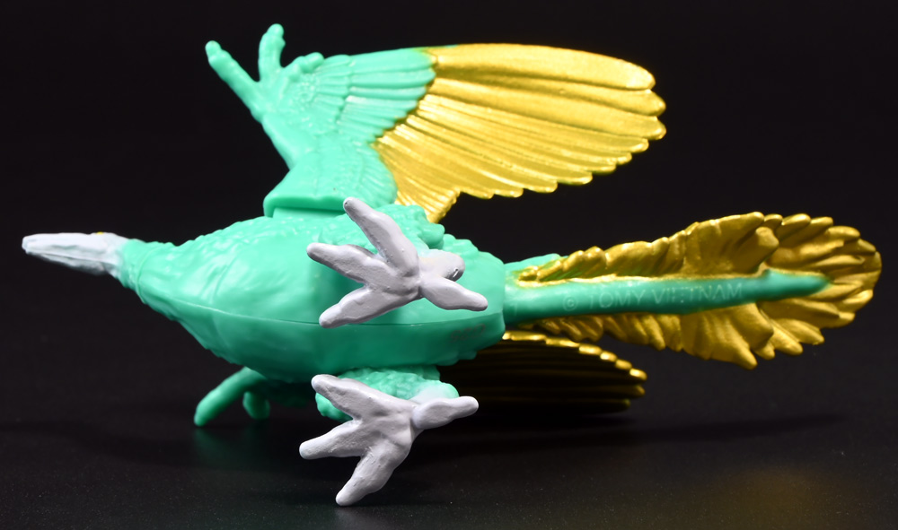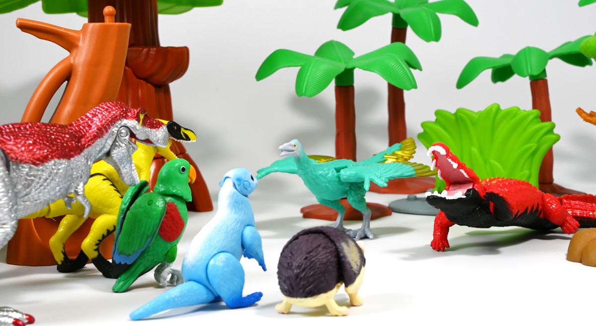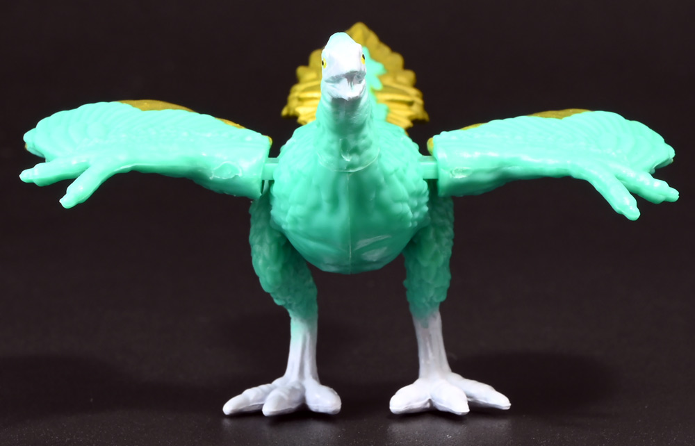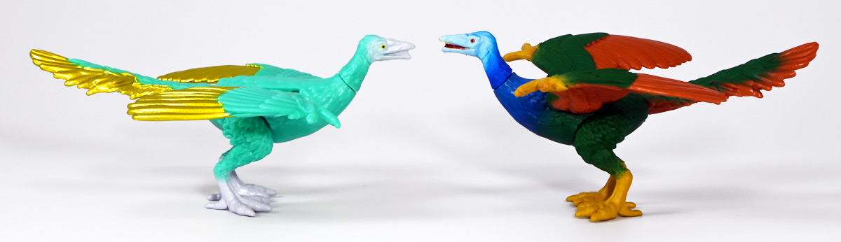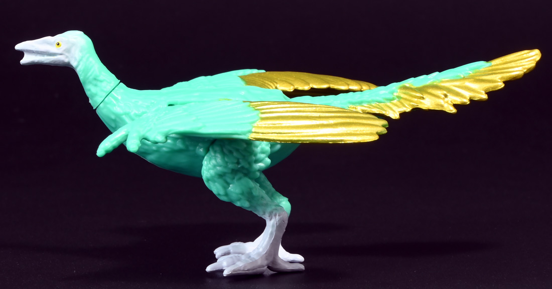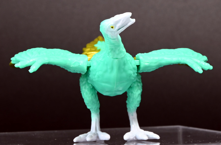 ■冒険大陸 アニアキングダム シソッチ(始祖鳥) ![]() 2025年10月2日発売 / 1045円(税込) キングゴールドトリオの一角、技のシソッチが本物アニアで登場! このパッケージにはアニメの重要アイテム、「金のリンゴ」が付属するので見逃せないパケとなっているぞよ! ![]() 始祖鳥初のカラバリはこりゃまた派手派手なヤツとなった! なかなか黒い始祖鳥が出ないぞよな〜。 ![]() サンドストームウィング! シソッチです! ![]() くちにいれない! ![]() 付属のキャラクターカードは日本語と英語で二枚付属。 玩具を通じて言葉も学べる仕様となっている! やはりとくしゅのうりょくが限界突破の数値7となっているぞよ! ![]() 足が繊細なので保護材で包まれて入っています。 慎重に開封するぞよよ! 金のリンゴと金のサケは小さいパーツなので紛失注意ぞよ! ![]() キングゴールドトリオのリーダー・ゴルドがキングゴールドマウンテンを侵す者への刺客として、 ガブールと共に放ったのがこのシソッチであるぞよ! 二つ名は「技のシソッチ」だが、せっかくの練習も身につかず、 うっかり者のシソッチは毎回口上を忘れて なぞかけを始めるので、ガブールはがっかりしてしまうのだった! ![]() エメラルドグリーンの羽毛に金の差し色が光るシソッチ! これも恐らく金のリンゴの力でパワーアップした始祖鳥だと考えられるぞよね! うっかり者かと思いきやかなりの実力で、 必殺技のサウンドストームウィングによってラプルの視界を奪い有利を取るという戦いも見せた! 流石は技のシソッチぞよ! ![]() 一応繊細な足は保護されて封入されているのだが、 付け根がやや軟らかいので、開封時はふにゃっと曲がっていてバランスが悪くなっている可能性がある。 自立しない場合はドライヤーなどで簡単に矯正してやると良いだろう! ちびっ子は火傷しないようにお父さんお母さんに手伝って貰うぞよよ! ![]() さて・・・本パケのキャラクターカードにも記載があり、 第6話の「アニキンTV」でも解説されていたが・・・、 「始祖鳥は鳥のような見た目だが、実は爬虫類の仲間。鳥じゃないから飛べなかった」 という解説。 確かに始祖鳥を一口に説明するのは難しいかもしれないが、こりゃちょっと誤りなんじゃないかとわたくしは感じましたぞよ。 まず、おろかなにんげんどももご存知の通り、 恐竜が進化したものが現生で数多見られる鳥類であるぞよ。 現代の分類によれば、鳥は竜盤類獣脚類恐竜の一種であり、 グラデーションを成して少しずつ進化してきた恐竜と鳥をはっきり区別する事は難しい。 鳥が恐竜であると言う事はつまり、最も進化した爬虫類であると言う事を示している。 鳥は爬虫類の仲間なのだ! 始祖鳥は鳥と恐竜の関連性が初めて指摘された種であり、様々な共通点が見られる。 そして飛べなかったかと言うと、これがよく判らない。 恐らく滑空を利用したと考えられるが、羽ばたいて自由に飛べたとは考えにくい・・・という塩梅ぞよ。 空を自由に飛んで利用する動物には、昆虫やコウモリなどの哺乳類もいる。 飛べる事と、鳥である事、爬虫類である事は、直接関係しない。 鳥が爬虫類の仲間って事は、エディも広義の爬虫類ってことぞよ。 以上の事から「アニアキングダム」の説明はやや正確とは言い難い訳ぞよ。 ![]() わたくしは以前から感じていたが、「アニアキングダム」の恐竜解説はかなり古い学説を含んでおり、 現代では間違いと言われる事も多い。 また、福井県立恐竜博物館の監修がついているもの以外の「アニア」玩具に関しても同様である。 特に始祖鳥は、通常ラインで本来は黒かったとされているものがキジをモチーフとした彩色で登場しており、 なぜこう言った独自の解釈を採用するのかやや疑問が残るぞよ。 動物のアニメや玩具はちびっ子に多大な影響を与えるからして、 正確である事に越したことはない・・・! 例えば映画や玩具では翼竜もモササウルスも恐竜として扱われているが、 これは間口を広げる役割があるから良いとされている。 この事にいちいち突っ込んで、知識をひけらかすのは無粋であるぞよ。 しかし、商品を世に送り出す側はこれに甘んじ、学びを捨ててはならんとわたくしは考えます。 今回の始祖鳥の解説も、ニュアンスは判らないでもないが、もう少し相応しい説明があったと思えるぞよね! ま〜わたくしも別にこの事をちびっ子にいちいち説いて回ろうとは思わん。 しかしわざわざインターネットの僻地にやってきて 長いレビューを読んでいるおろかなにんげんどもには共感が得られると考え、 ここでは無粋にも突っ込ませていただいたぞよ! ![]() 確かに小学校で「鳥は爬虫類の一種ですよ!」と先生に異議を申せば、 「鳥は鳥類で、爬虫類ではありません!」と叱られる事でしょう。 ホントの事と、世間で知られている常識には乖離があるのだ。 とりわけ動物の分類って難しいぞよよ〜! ![]() この対向する趾も最新の学説からすると主流では無い復元ぞよ。 たぶんこの復元
