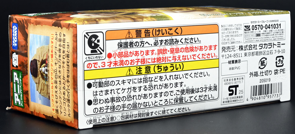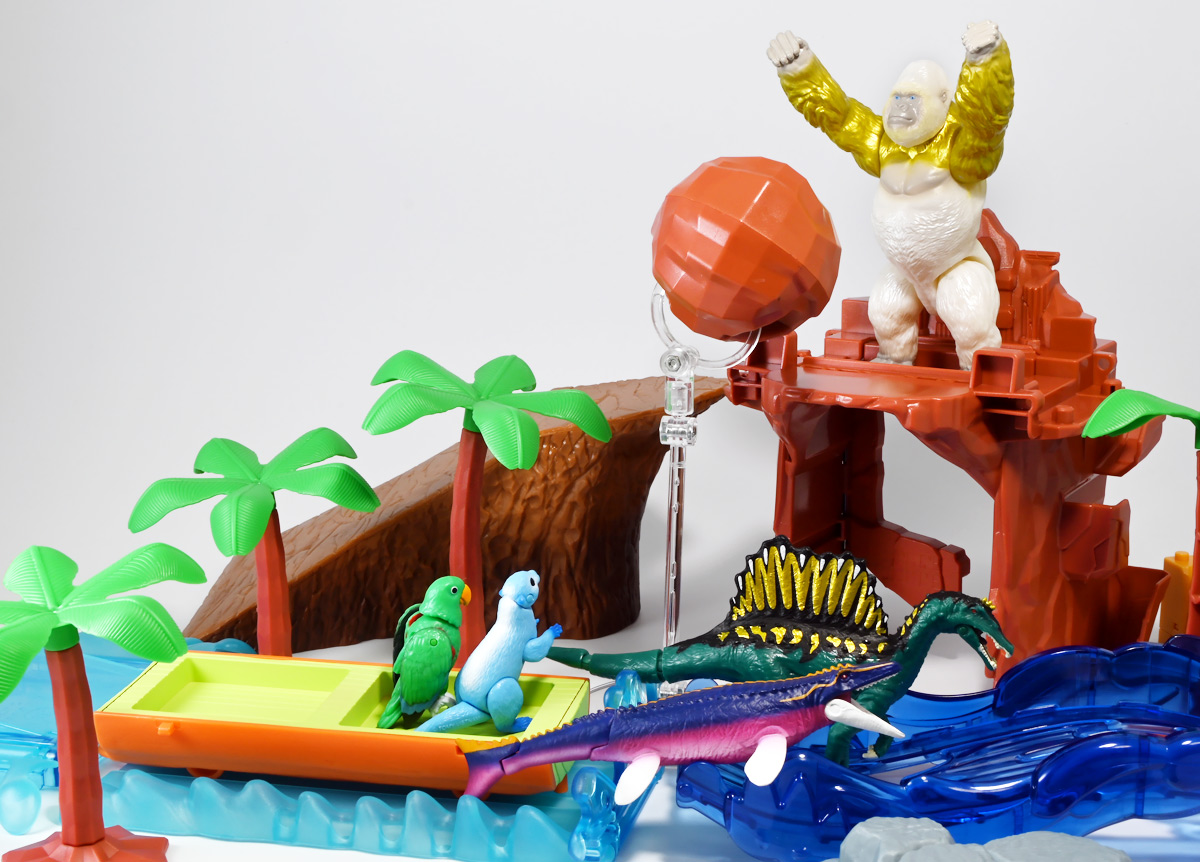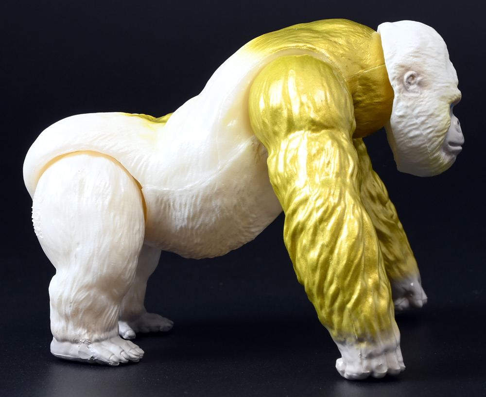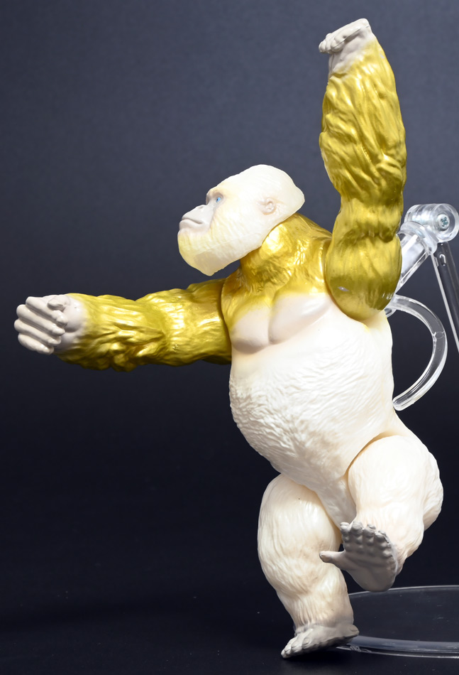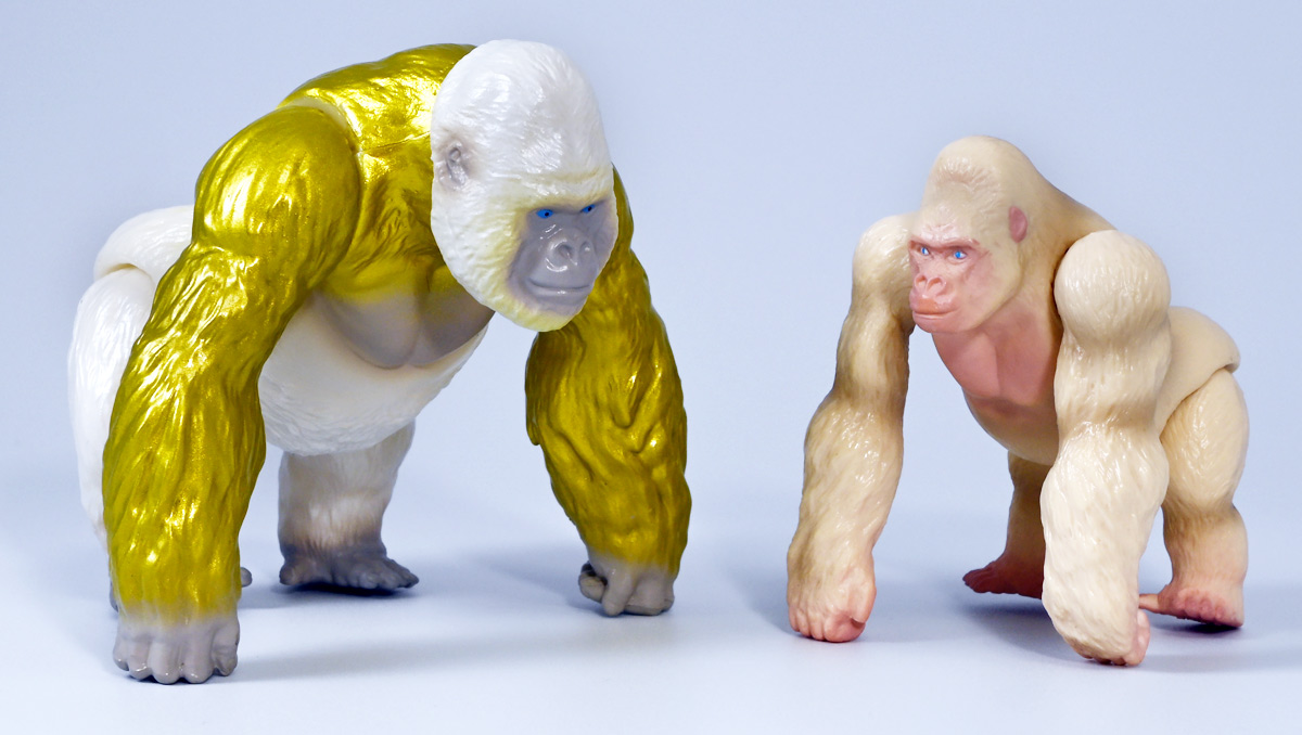 ■冒険大陸 アニアキングダム ゴルド(ゴリラ) ![]() 2025年10月18日発売 / 1045円(税込) キングゴールドトリオのリーダー・ゴルドが本物のアニアで登場! 過去プレイセットに付属した「ホワイトキングゴリラ」のリメイク的キャラクターぞよ! ![]() ALゴリラの新たなカラバリぞよね! パケはずっしり重く期待感が高まるぞよ!! ![]() ヘビーゴールドラッシュ! ゴリゴリいくぜ! ![]() くちにいれない! ![]() キャラクターカードが日本語と英語で二枚付属。 金のリンゴでパワーアップしたと思われる能力値はせんりゃくが限界突破の7となっているぞよ! ![]() パカっと開封! アニメ第3期「キングゴールドマウンテン編」で新登場したゴルドが、 劇中そのままのアニア玩具で登場ぞよ! ![]() 食べると金ピカにパワーアップ出来る金のリンゴを求めて、 その在り処「キングゴールドマウンテン」の頂上を目指すルッタ一行。 そんなルッタ達を金のリンゴを狙う不届きものと睨み、 道中妨害を企てる新たな敵! その名もキングゴールドトリオのリーダーこそが、このゴルドであるぞよ! ![]() ![]() ゴルドはどうやらキングゴールドマウンテンを守護する存在みたいぞよね! 食べると長所と短所を同時に伸ばす禁断の果実である金のリンゴが悪戯に収穫されないよう、 仲間と共に守っているぞよ! 得意のドラミングでガブールとシソッチに的確な指示を出し、 ルッタ達を翻弄する戦略家なのだ! ![]() ホワイトの毛並みが黄金に輝き実にゴージャスな見た目・・・! 頭だけでなく腕っぷしも強く、山の頂から大岩を落としてくる攻撃も厄介だ! これぞ必殺技・ヘビーゴールドラッシュぞよ! ![]() アニアはワンアクション付きの動物フィギュア! ALゴリラを元にした本商品は頭、腕、脚が可動部となっており・・・、 ![]() この可動域を活かしてナックルウォークポーズにも変形できます! シルエットが大きく変わるので楽しいぞよね! ![]() 頭部はボールジョイントなのでこんな風にちゃんと前を向く事が出来る。 これは良く出来たギミックですぞよ! ![]() 意外と優しいお顔をしているんです。 ![]() 更に腕が軟質素材になっており、くにくに曲げて遊ぶ事も出来る。 劇中では曲げた状態でポーズをとっているが、 製品は中に骨が入ってないので手を放すと元に戻ってしまうぞよ。 ![]() 本商品は「AL-29 ゴリラ(2024年5月)」の原型を使用したアニメ版彩色。 黒から光沢感のあるパールホワイトのなっただけでなく、 金の差し色や各部のグラデーション彩色も増えてがらっと印象が変わりました。 ![]() アニアキングダム第3期「キングゴールドマウンテン編」は、 玩具、アニメ共に旧プレイセットの「アニア 変形!ビッグフォールマウンテン(2019年10月)」をモチーフとしている。 このビッグフォールマウンテンには山頂の遺跡を守る「ホワイトキングゴリラ」がおまけとして封入されたが、 ゴルドは正にこのホワイトキングをモチーフとしたリメイクキャラと考えて良いだろう! ご覧の通りパール調のホワイトに青い目と面影があるぞよね! ただしASゴリラの原型を使用したホワイトキングはニシゴリラ、 ALゴリラを元にしたゴルドはヒガシゴリラなので種のモチーフは別種であるぞよ。 ![]() なんとかキングゴールドマウンテンの山頂に辿り着いたルッタ達! しかし、待ち受けていたキングゴールドトリオの連携攻撃は手ごわかった! ブレイズとラプルが奮闘するも、ガブール&シソッチは的確な攻撃で翻弄してくる! どうやらゴルドのドラミングが戦略を伝えているみたいだ・・・これは強敵ぞよ!! ![]() 丸太のイカダに乗って急流下りで脱出ぞよ!! これらのアニメエピソードはプレイセットの各ギミックにフォーカスした展開が採用されており、 ごっこ遊びが捗るぞよ!! ![]() パケからはみ出す程のサイズ感! この大きさ&格好良いアニメ彩色がほんの割引数百円で手に入るとはお得ですぞよ! キングゴールドトリオを集めて劇中の戦いを再現しよう!! ![]() 「アニア」シリーズは「ぞよちゃんねる」でも度々取り上げているのでこちらもよろしくぞよ! :このリンクを踏んで何かポチるとわたくしにささやかな報酬が入りサイトの運営費となるのでよろしくぞ! ・「アニア 冒険大陸 アニアキングダム ゴルド (ゴリラ)」 ・「冒険大陸 アニアキングダム ビッグアニア ゴルド (ゴリラ)」 ▲TOP |
