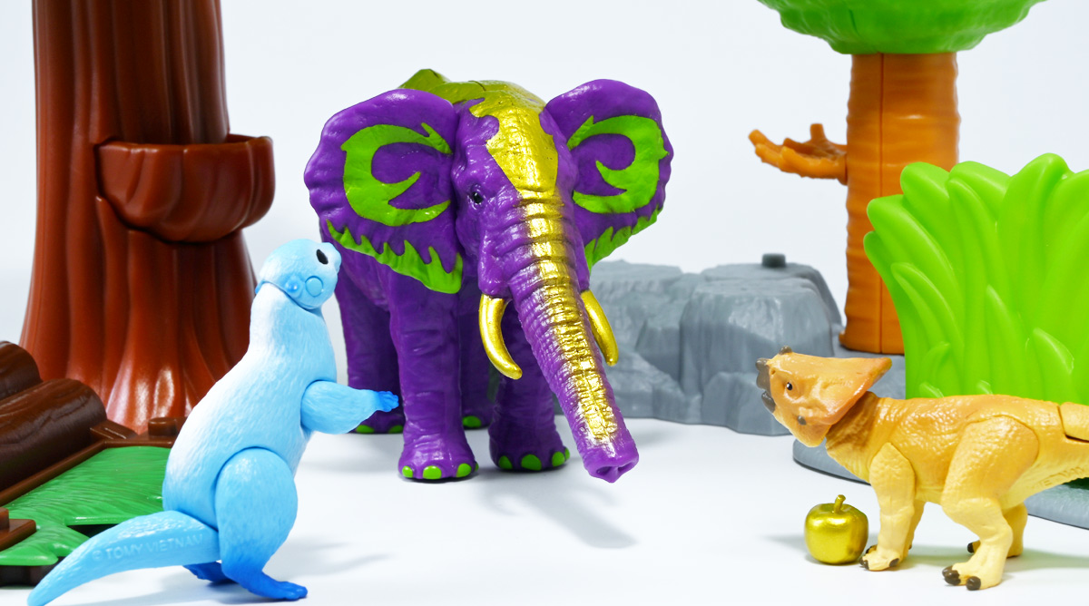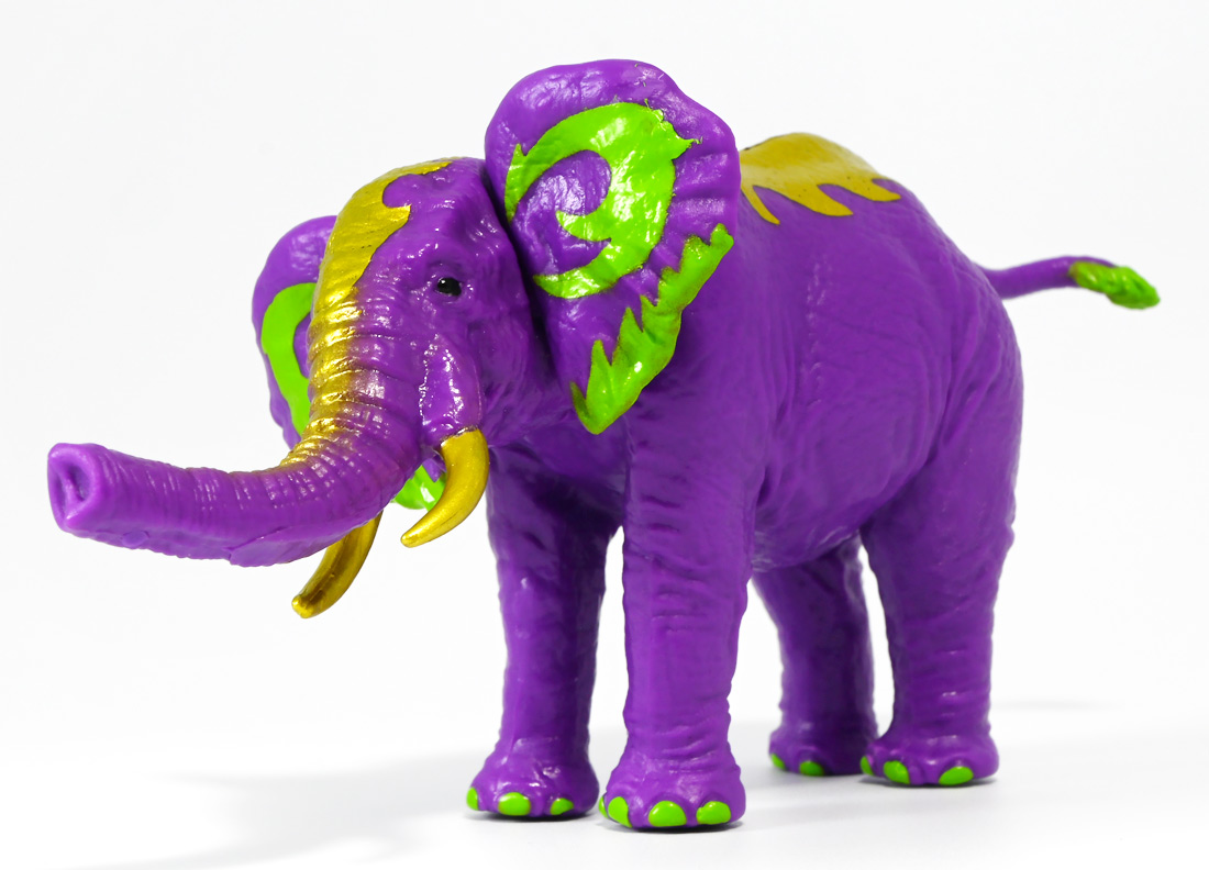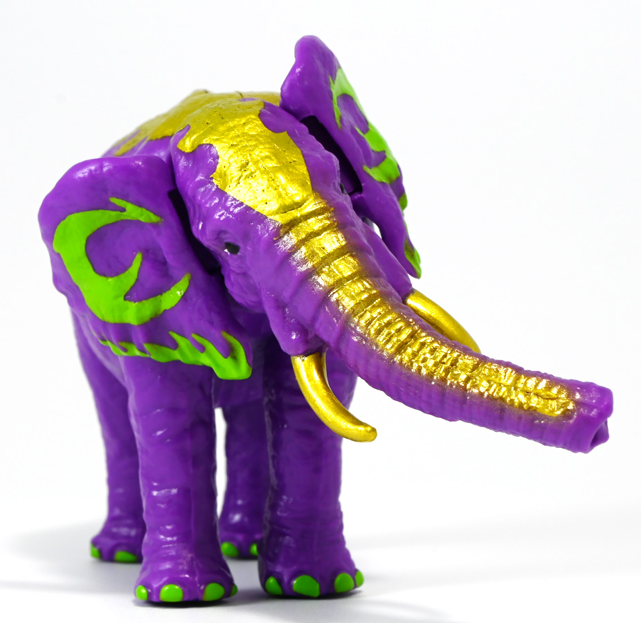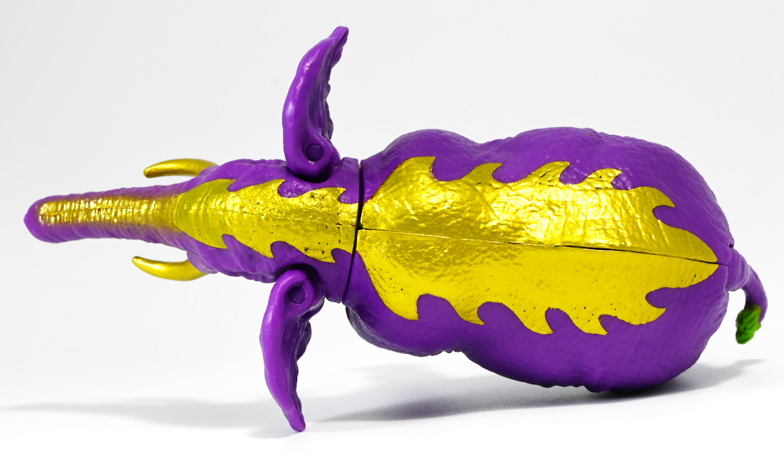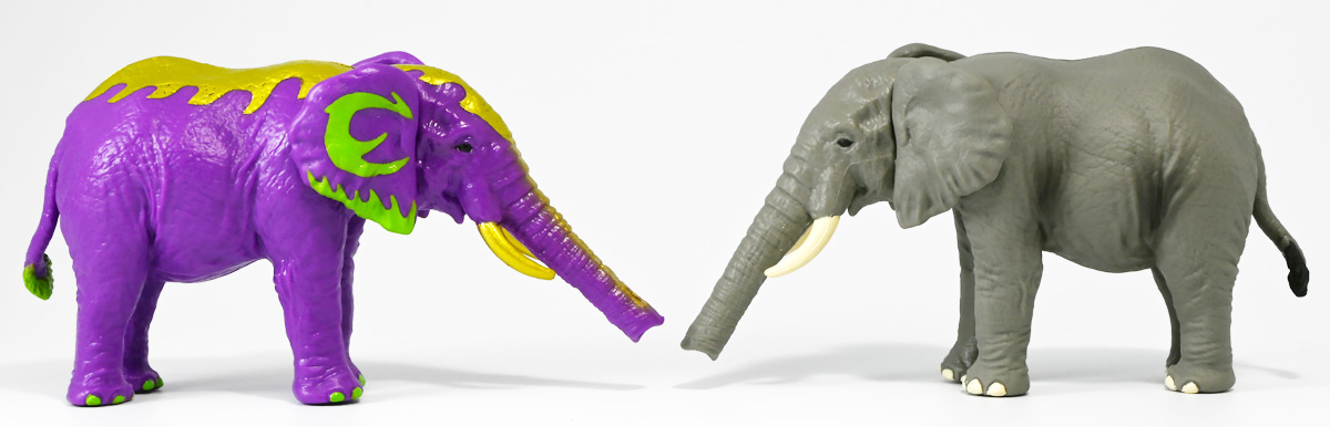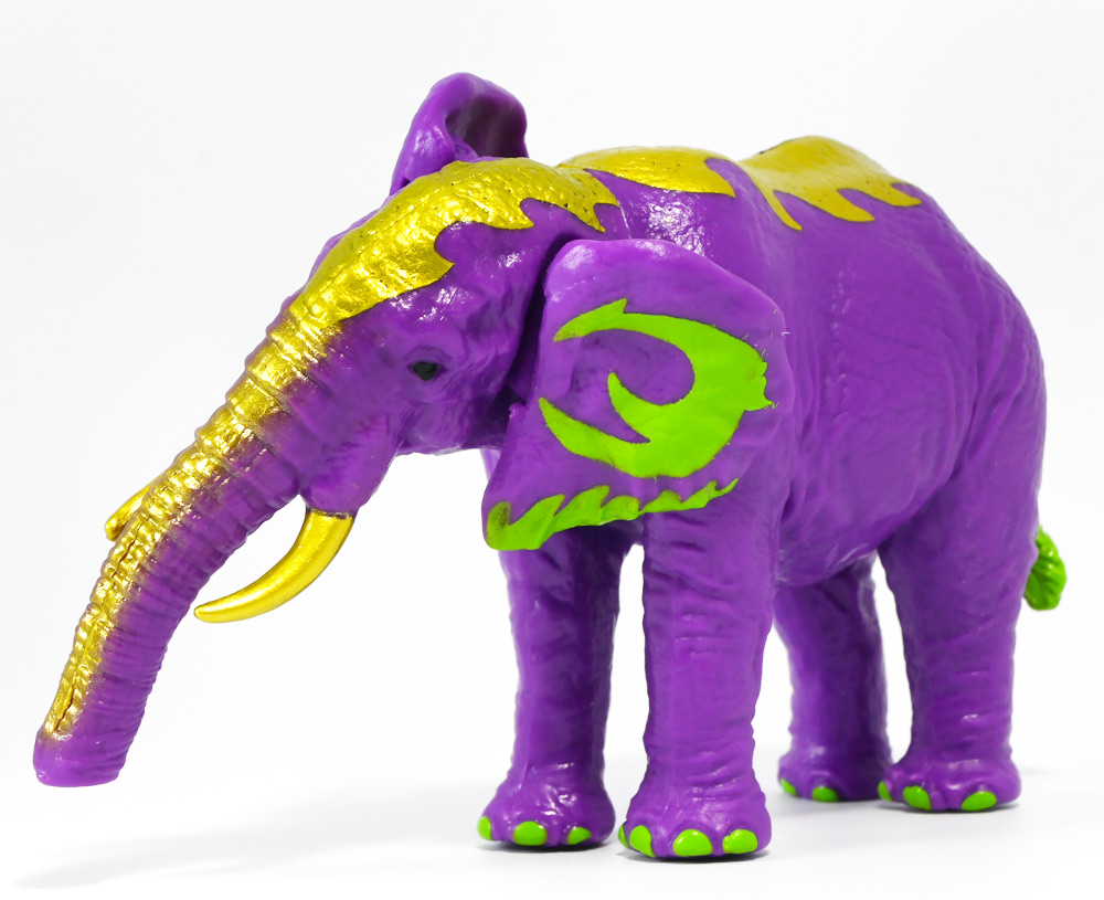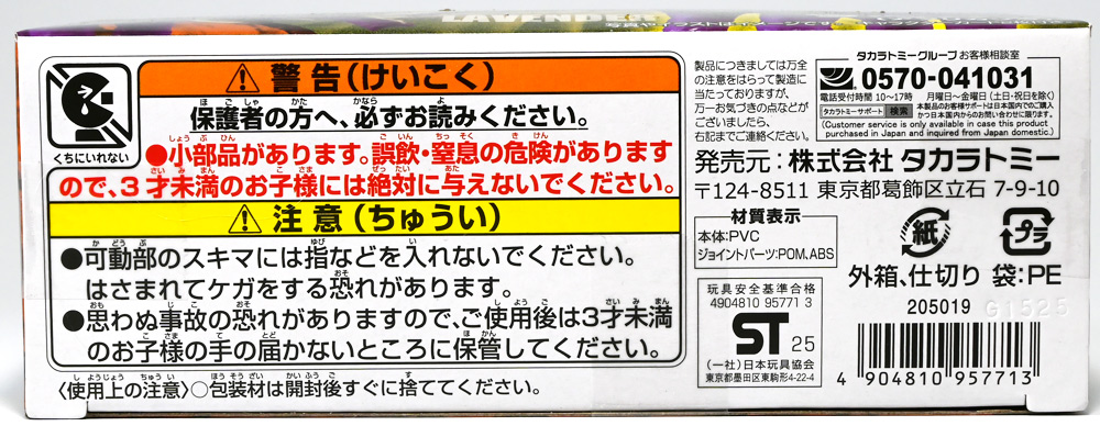 ■冒険大陸 アニアキングダム ラベンダ(アフリカゾウ) ![]() 2025年10月2日発売 / 1045円(税込) アニアキングダム第3期「キングゴールドマウンテン編」より登場するルッタ達の新しいお友達、 アフリカゾウのラベンダが本物アニアになって発売ぞよ! ![]() という事で、いつも通り劇中登場のコマドリ撮影人形とそっくり同じものが フィギュアとして玩具売り場に並んでいるのだ! ![]() 華麗なるラベンダの ラベン打法!ですわ! ![]() くちにいれない! ![]() 味方側のパケにはそれぞれ個別のストーリーが記載されているぞよ。 ![]() おまけのキャラクターカードが日本語と英語で二枚付属。 金のリンゴでパワーアップしたラベンダはこうげき7の限界突破! とくしゅも6となっており、頼もしい味方であるぞよ。 ![]() 金のリンゴでパワーアップを遂げたアフリカゾウのラベンダ! その名の通りラベンダーカラーに金の模様が浮かぶゴージャスな食いしん坊お嬢様ぞよ! ![]() 今日も平和なカワウソ村に、スピン&サベールが持ち込んだ金のリンゴ・・・ 食べると金色になってパワーアップできると言うからルッタ達は興味津々! 残り一個のリンゴを誰が食べるか競っていると、 お腹が減って倒れているアフリカゾウのラベンダと遭遇! カワウソ村に散乱するバナナの皮はこのラベンダが食ったものらしいぞよ・・・ な、な、なんと大食漢なのだーっ!! 困っている動物を見ると放っておけないルッタは、思わず金のリンゴをラベンダにあげてしまうぞよ。 するとどうした事だろう! これを食ってたちまちラベンダは黄金の光に包まれ、ラベンダーカラーにパワーアップ! 金のリンゴのパワーは本物だったのだ!! ![]() 「わたくしはラベンダ!大食いおゾウ様のラベンダでございまーすっ!」 という事でこのカラーリングはラベンダが金のリンゴを食べて変身したパワーアップ形態というワケぞよね! 変身シーンはさながら魔法少女の変身バンクかのくるくるキラキラで面白い。 「おじょう様」ならぬ「おゾウ様」な名乗りも可愛いぞよね! ![]() ALアフリカゾウの原型を元にラベンダーカラーの新彩色。 背中と牙が金色に変わっており、食欲もパワーアップ! 金のリンゴをもっともっと食べたいと言うラベンダの欲求に、 サベールとスピンは「キングゴールドマウンテン」には金のリンゴが沢山なっていたと教えてくれる。 かくしてルッタ達はラベンダと共に、キングゴールドマウンテンの山頂を目指して出発するのだった! ![]() しかし、道中には様々な妨害が待ち受けていた・・・! 金のリンゴを守るキングゴールドトリオが攻撃を仕掛けてきたのだ! ルッタ達はラベンダを初めとする新たな仲間と共に、この困難を乗り越えてゆくが・・・!? どうなる、「キングゴールドマウンテン編」!! ![]() トップ。 金ピカ彩色が格好可愛いぞよね! ![]() ボトム。 紫を基調に緑の差し色がアクセントとなっているぞよ。 ![]() アニアはワンアクション付きの動物フィギュア! ラベンダは首・耳・尻尾が可動する他、 最大の特徴である鼻がベンダブル仕様となっており、 ぐにぐにと自在に曲げる事が出来るぞよ! ![]() このベンダブル仕様によってこれまでにない柔軟な可動を実現。 要は軟質素材の中に針金の骨が入っており、ポーズをつけたまま固定できると言う仕組みぞよね。 一見すると繊細そうだが、ま〜そんなに神経質にならずとも良いだろう! ![]() 上下は勿論、こんな風に左右に振ったり、柔軟で活き活きとしたポージングが可能となっている! ![]() 意外とこのベンダブル仕様はアニアでは珍しいのだ! 恐竜の尻尾とか竜脚類の首とかベンダブルになっても良さそうですけどね。 ![]() ラベンダは「AL-26 アフリカゾウ(2024年5月)」の原型を元にしたアニメ版彩色。 劇中でも右のALアフリカゾウとして登場し、ルッタに金のリンゴを貰って左のカラーに変身しているぞよ。 という事でギミック等もAL-26を踏襲している。 ![]() ルッタ達が出会ったのははらぺこおゾウ様のラベンダ! 一個しか残っていない金のリンゴだけど、見過ごせないルッタは気前よく分けてしまうぞよ。 ![]() 金のリンゴを食べたラベンダはゴールデンにパワーアップ! ルッタ達の仲間に加わると、共にキングゴールドマウンテン山頂を目指して旅立つ事に! ![]() そこへキングゴールドトリオのガブール&シソッチコンビが強襲! 「あっちこっち、シソッチーっ!」 「ガブールスーパー・バッティング!」 連携技で木の実攻撃を繰り出して来た! 大慌てのルッタ達だったが、パワーアップしたラベンダ必殺の「ラベン打法」で撃ち返し撃退! しかし運動してお腹が減ってしまったラベンダは、 ガブール&シソッチの残した木の実でランチ休憩。 一時パーティーを離脱する事となるぞよ。 「キングゴールドマウンテン編」はこうして毎回新たな仲間が登場し、 キングゴールドトリオの妨害を一つ一つ潜り抜けてゆく、というフォーマットで進んでゆくのだ! ![]() そんなラベンダ、実は「キングゴールドマウンテン編」配信前に、 