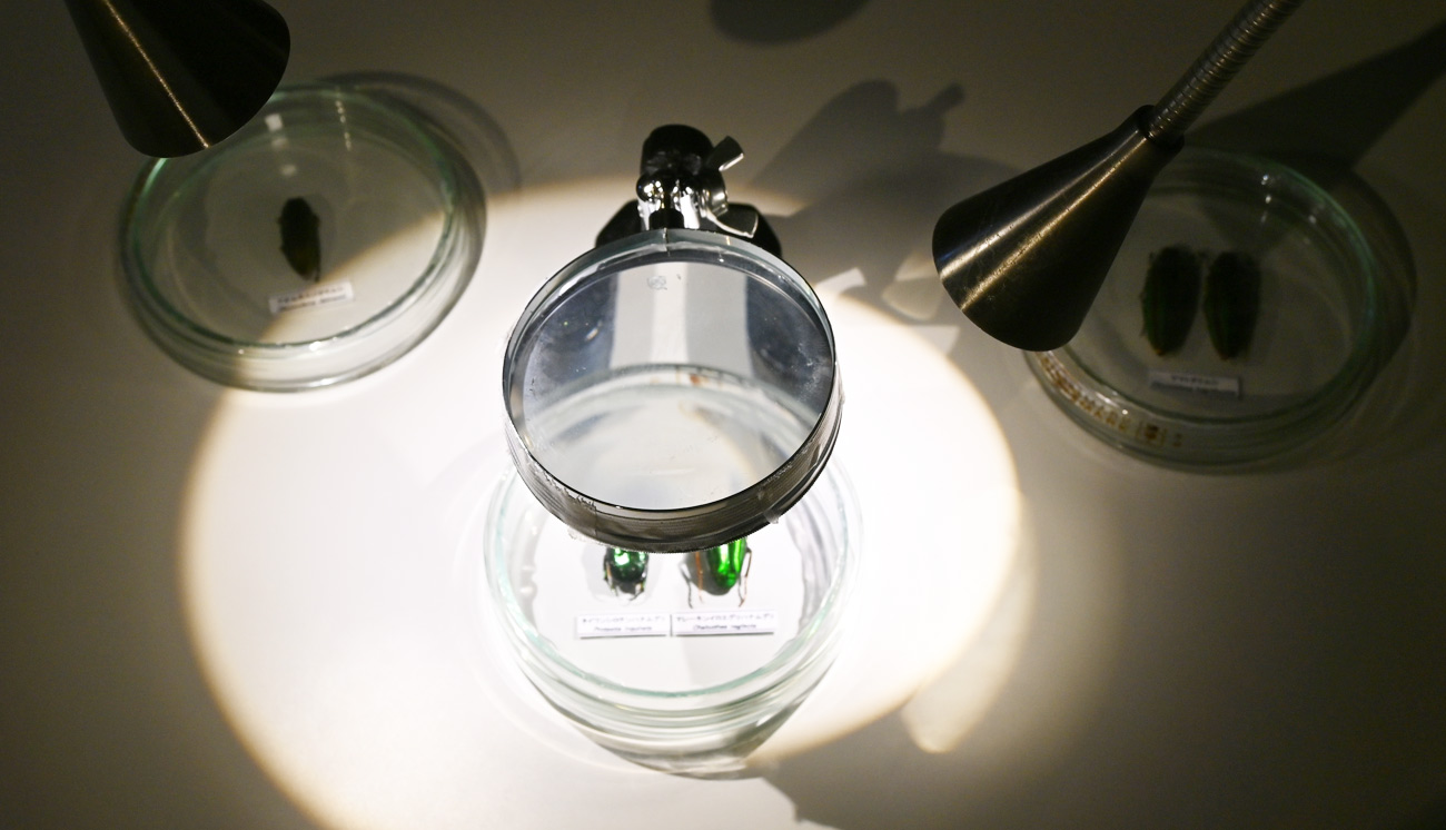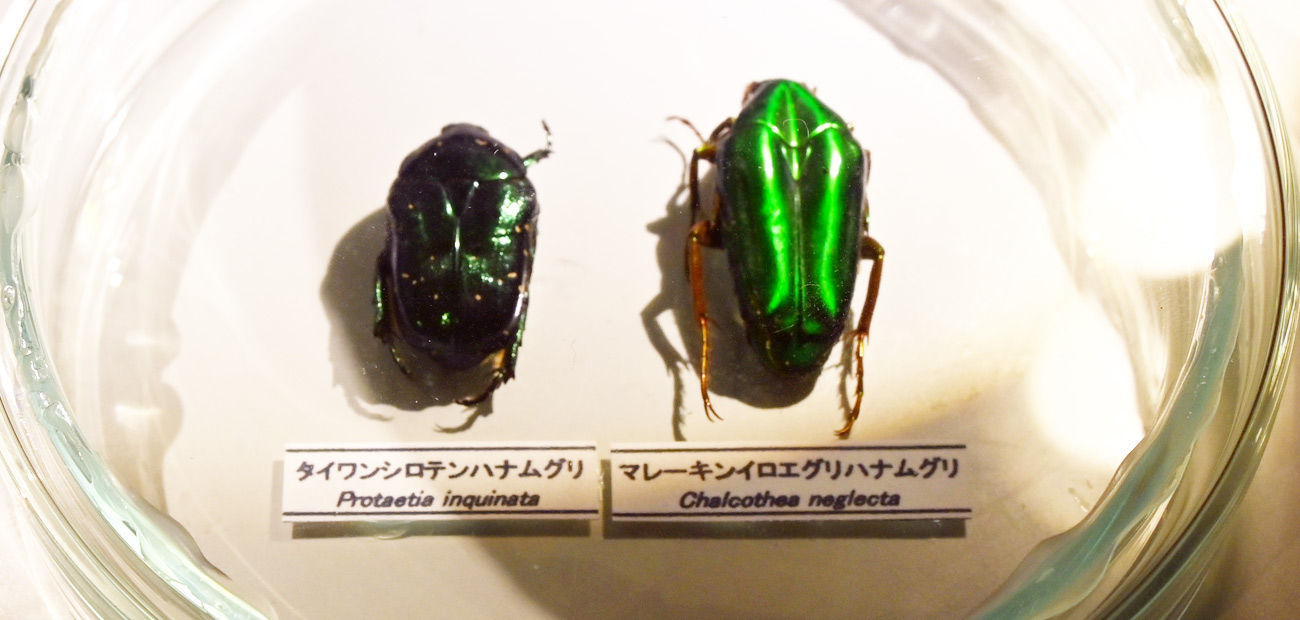 今回展示されているタマムシ類コレクションは、そんな国内トップクラスのタマムシ類研究者として知られる大桃定洋博士から、