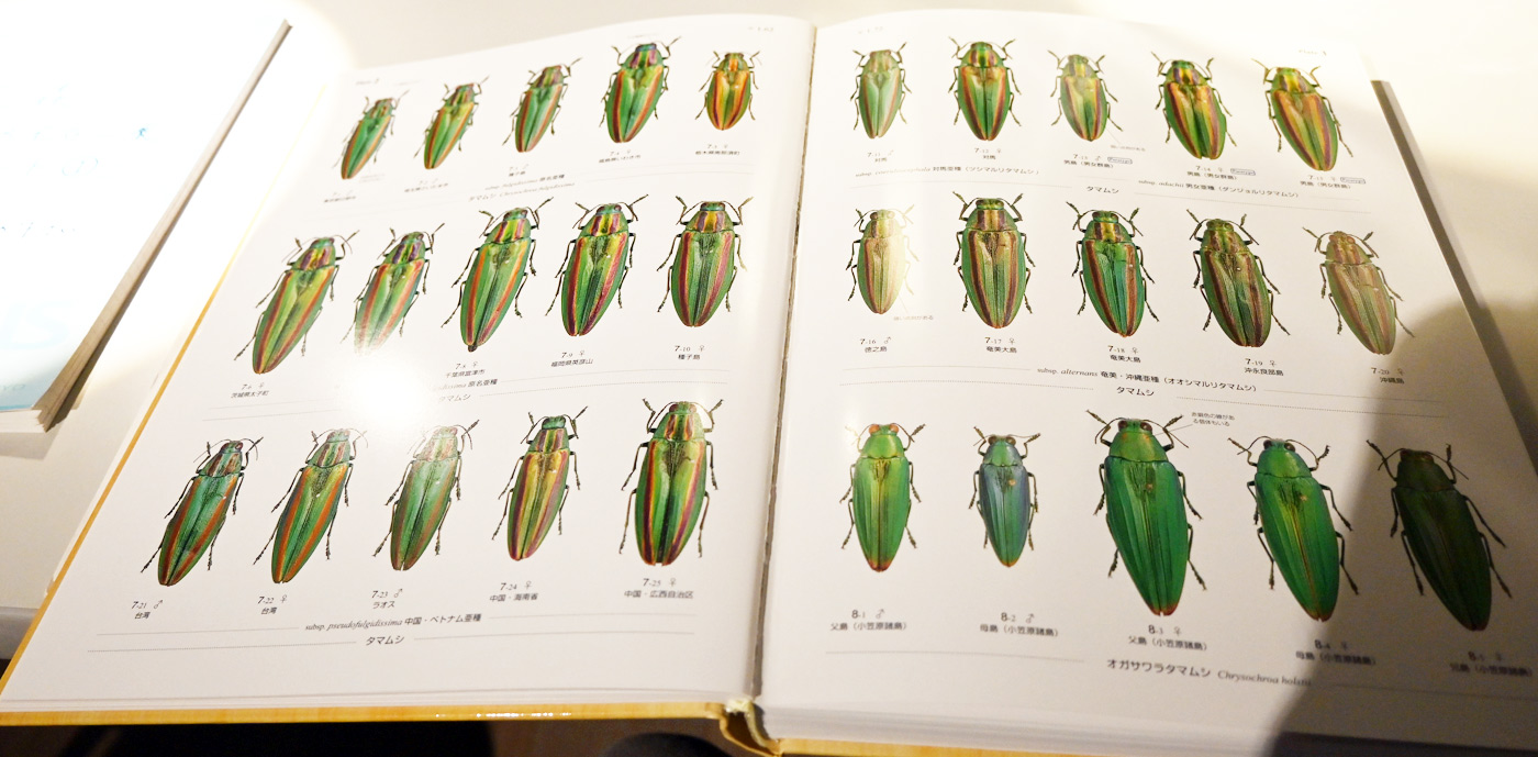 中身はこんな感じで世界と日本のタマムシが網羅されています。