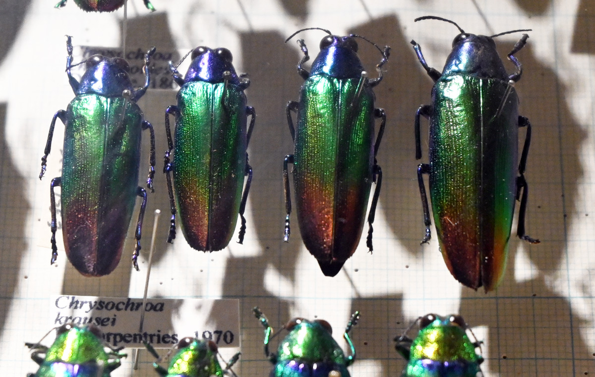 中でも最もポピュラーなタマムシの中のタマムシ、所謂「ヤマトタマムシ」もこの中に紛れている。