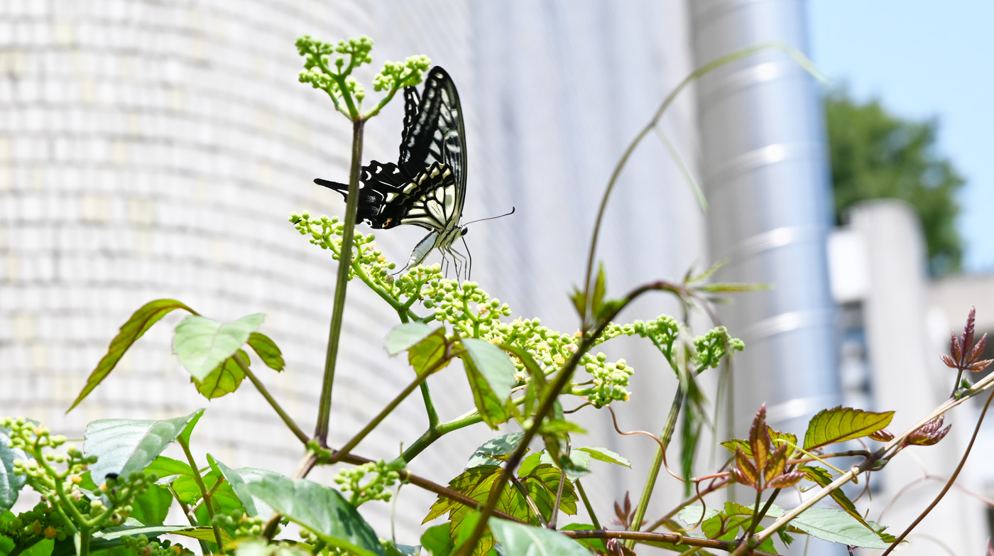 ナミアゲハが寄主とするのはミカン科の植物なので、きっとこれから卵を産むつもりなのだろう。
