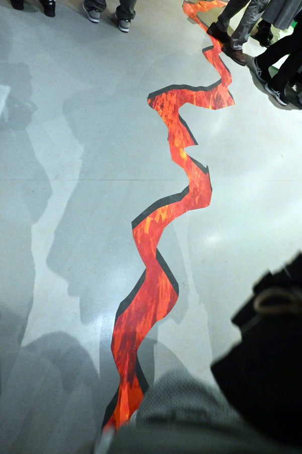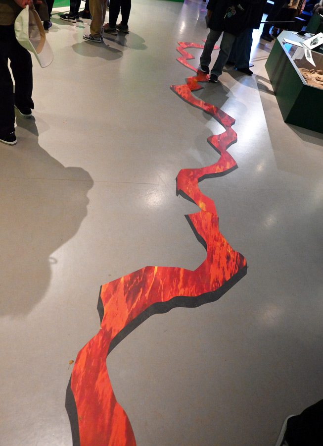 ここでも地面が割れて溶岩が見えているぞよ。 |