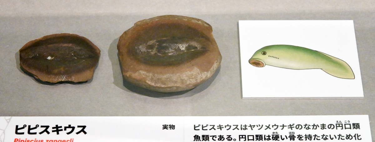 円口類は硬い骨を持たず化石に残りにくいが、この標本は環状の口が観察できる。