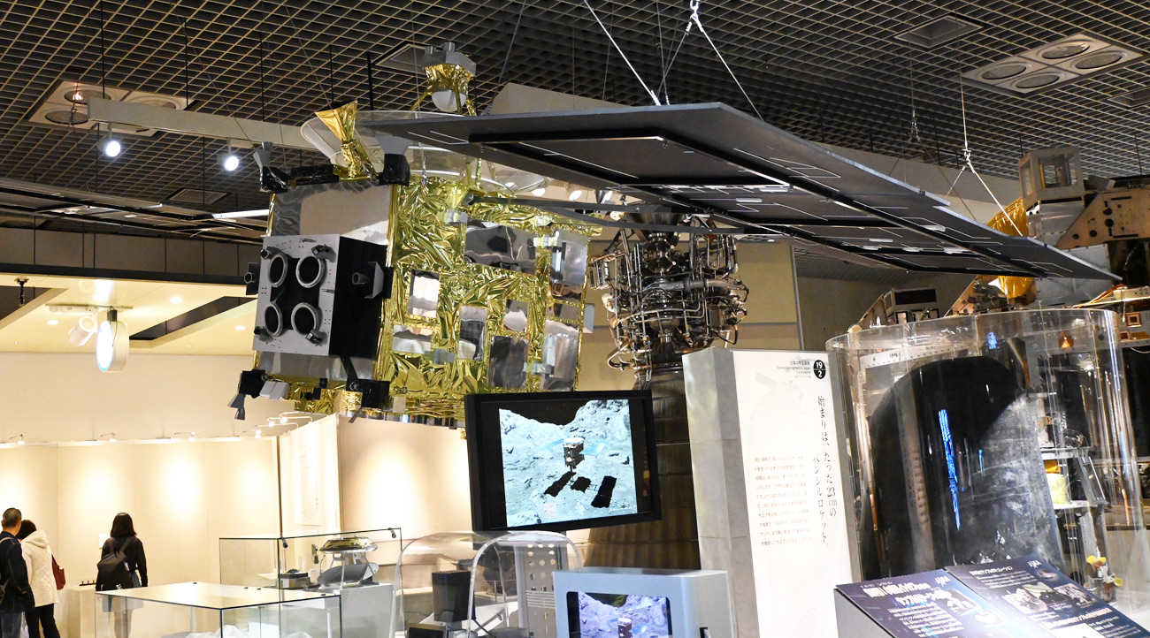 このエリアでは深海から宇宙まで網羅されており、「小惑星探査機はやぶさ」の模型も飾られている。