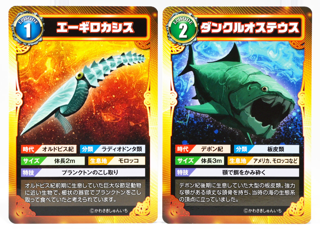 全部で5種類あり「1.エーギロカシス」、「2.ダンクルオステウス」、「3.ディメトロドン」、「4.レドンダサウルス」、「5.ティラノサウルス」となっている。