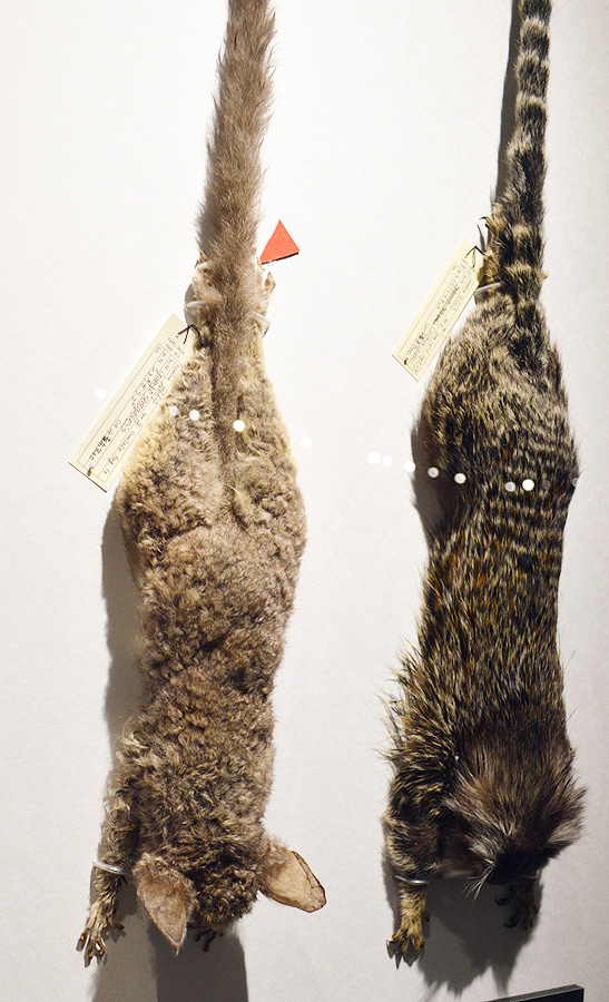 中身を抜いて、皮の方に詰め物をしたら骨格標本と剥製両方作れる。