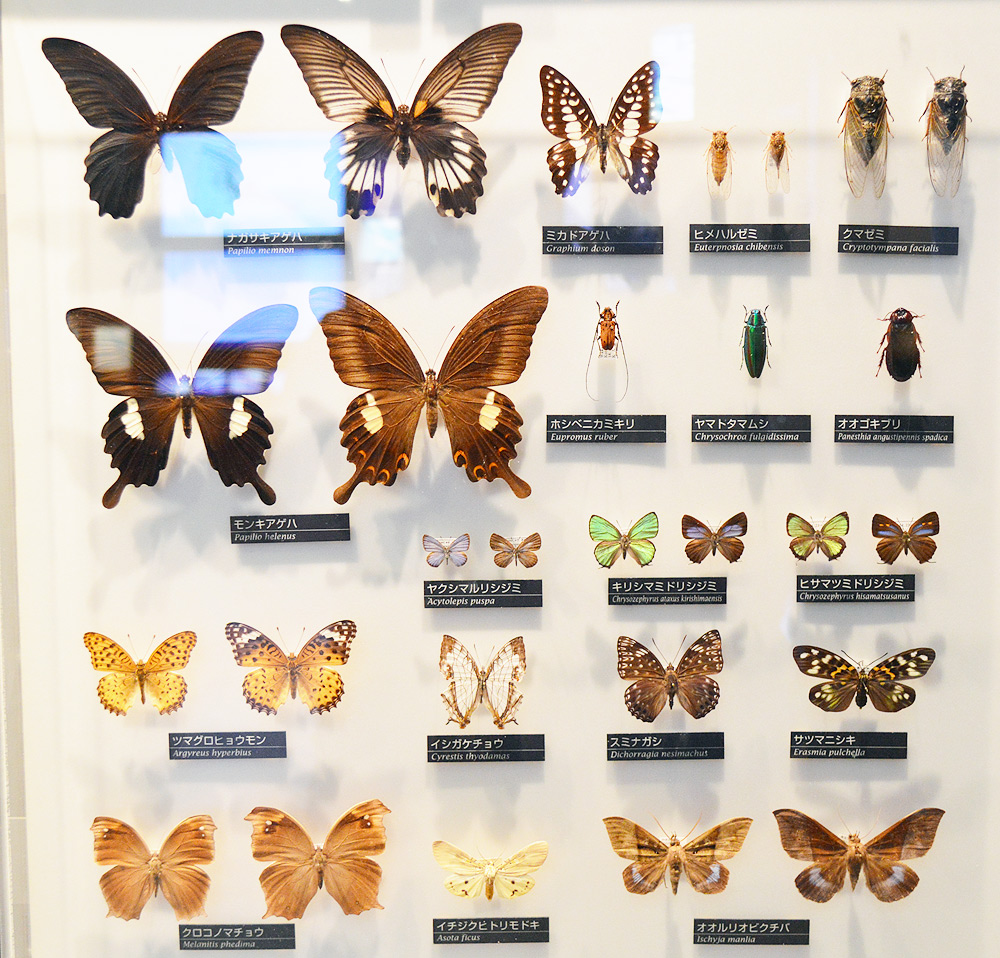 日本の虫たちは「日本館」で見物できるが、世界の虫は「地球館」に飾られている。