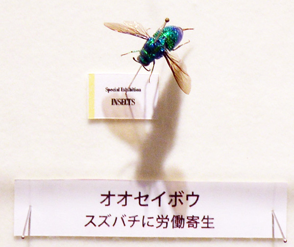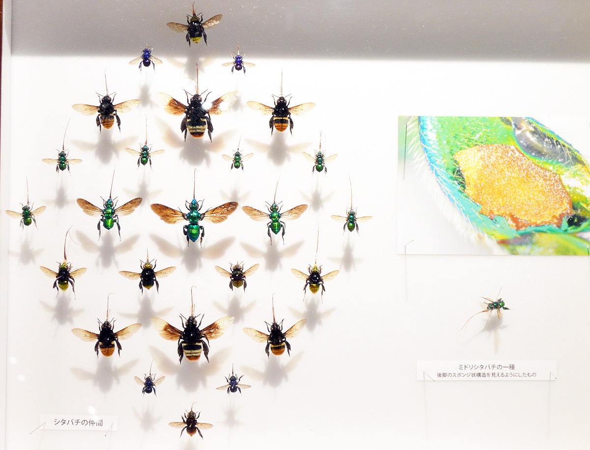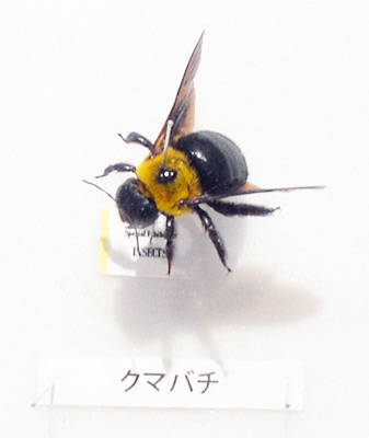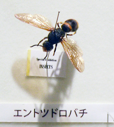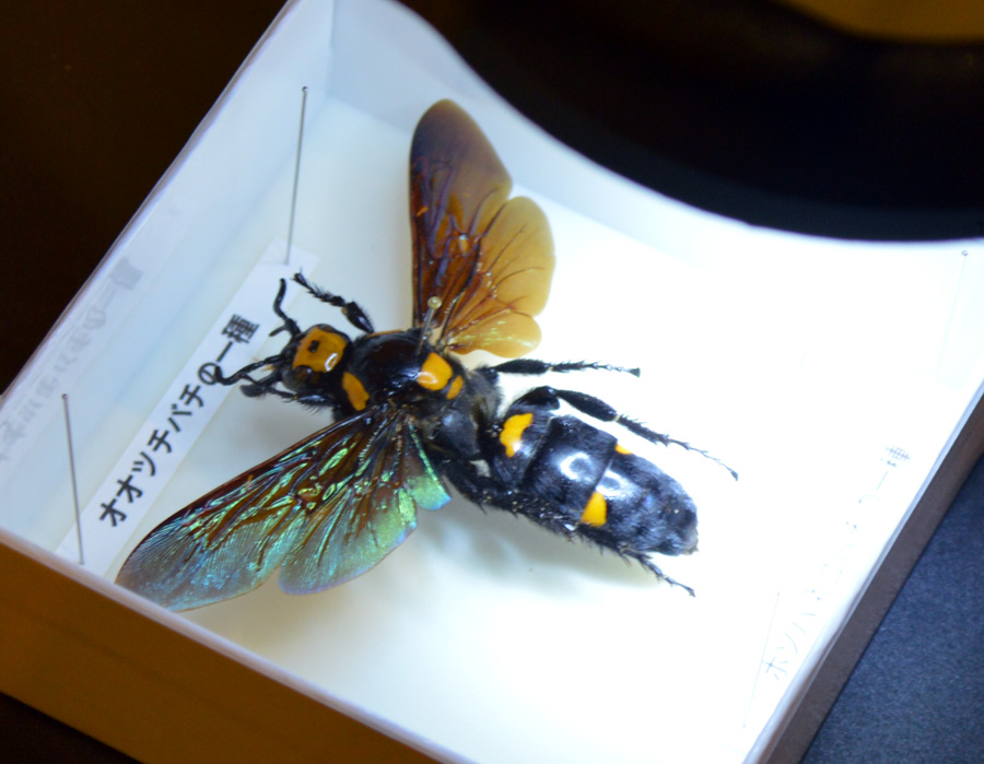 ここにいるオオツチバチの、右下の方のピンにそのホソハネコバチの仲間の標本が実は乗っているのだが・・・