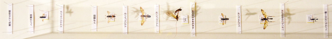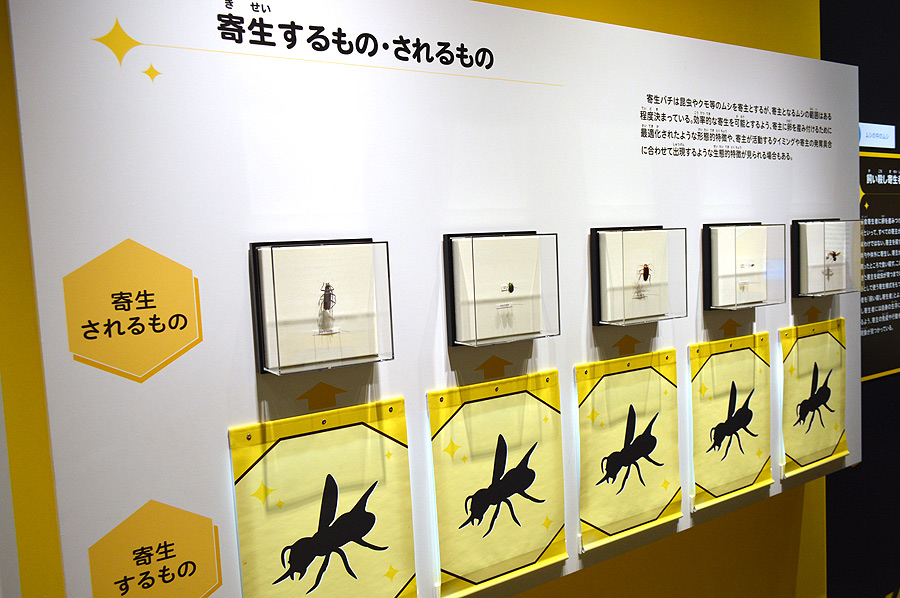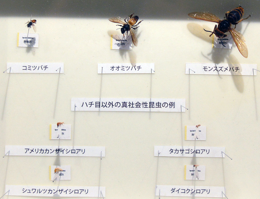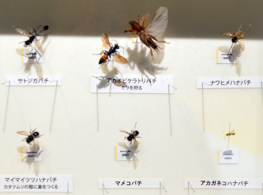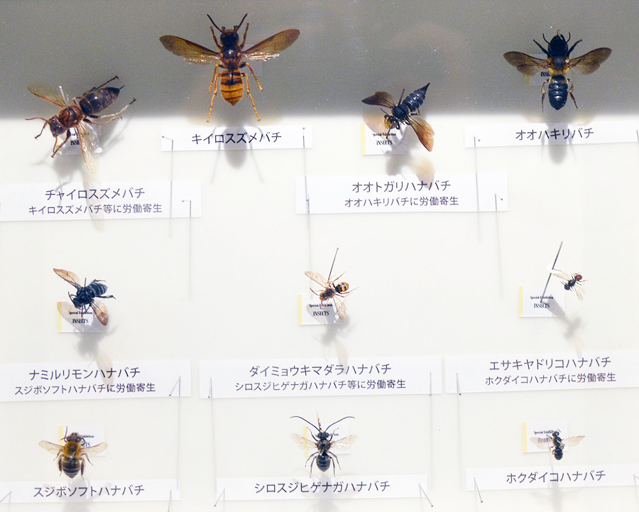 続くエリアは世界では15万種も知られる「膜翅目」の昆虫達のコーナー「ハチの扉」ぞよ。