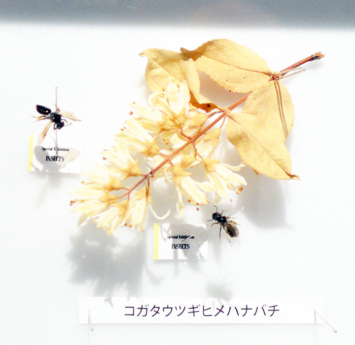 「コガタウツギヒメハナバチ」は1cm程の小さなウツギの花が開花する時期に合わせて出現する。