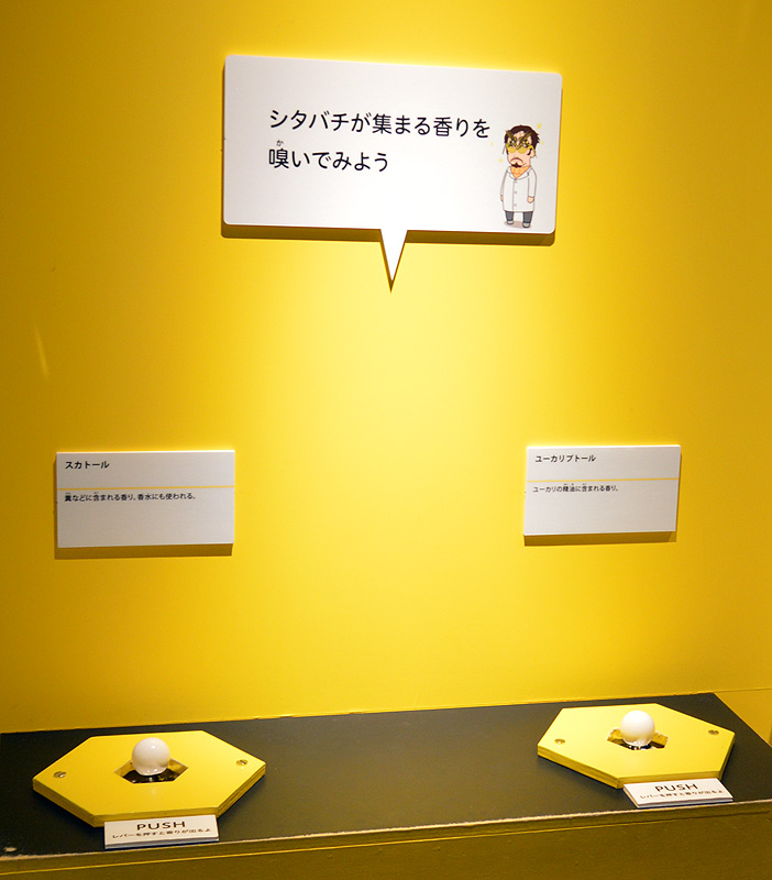 会場ではそんなシタバチの好む香りを散布する装置で遊べました。