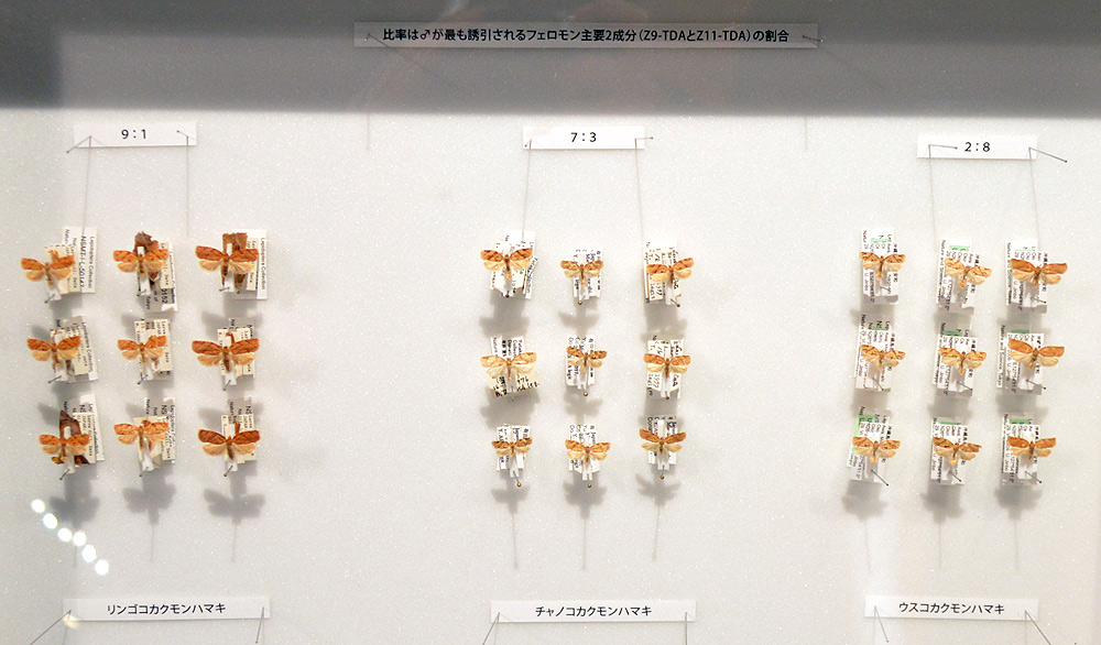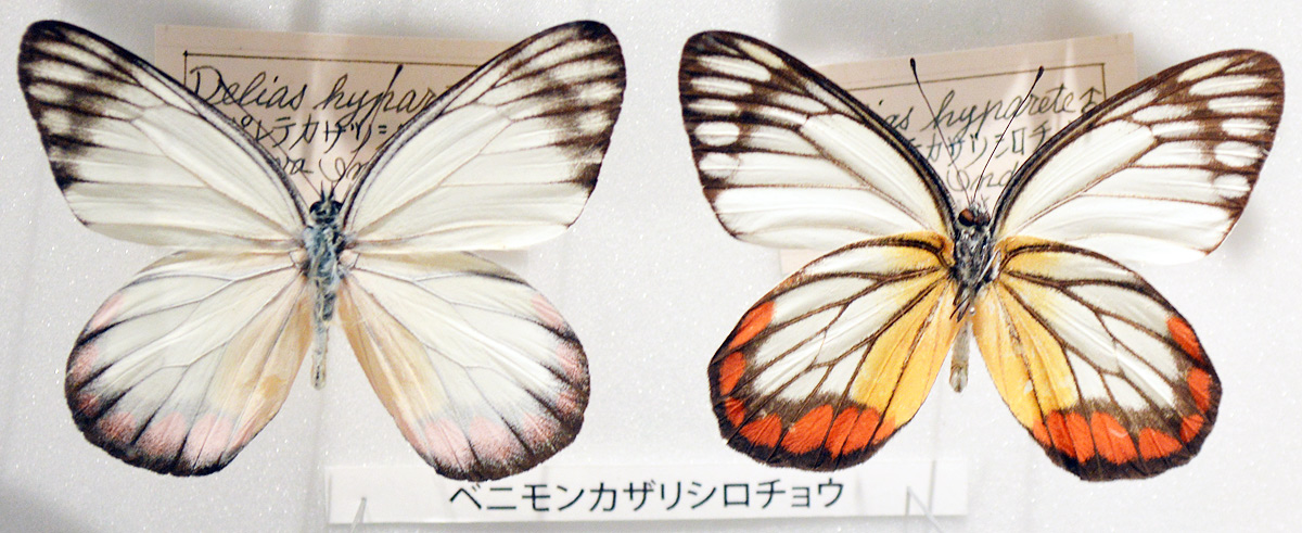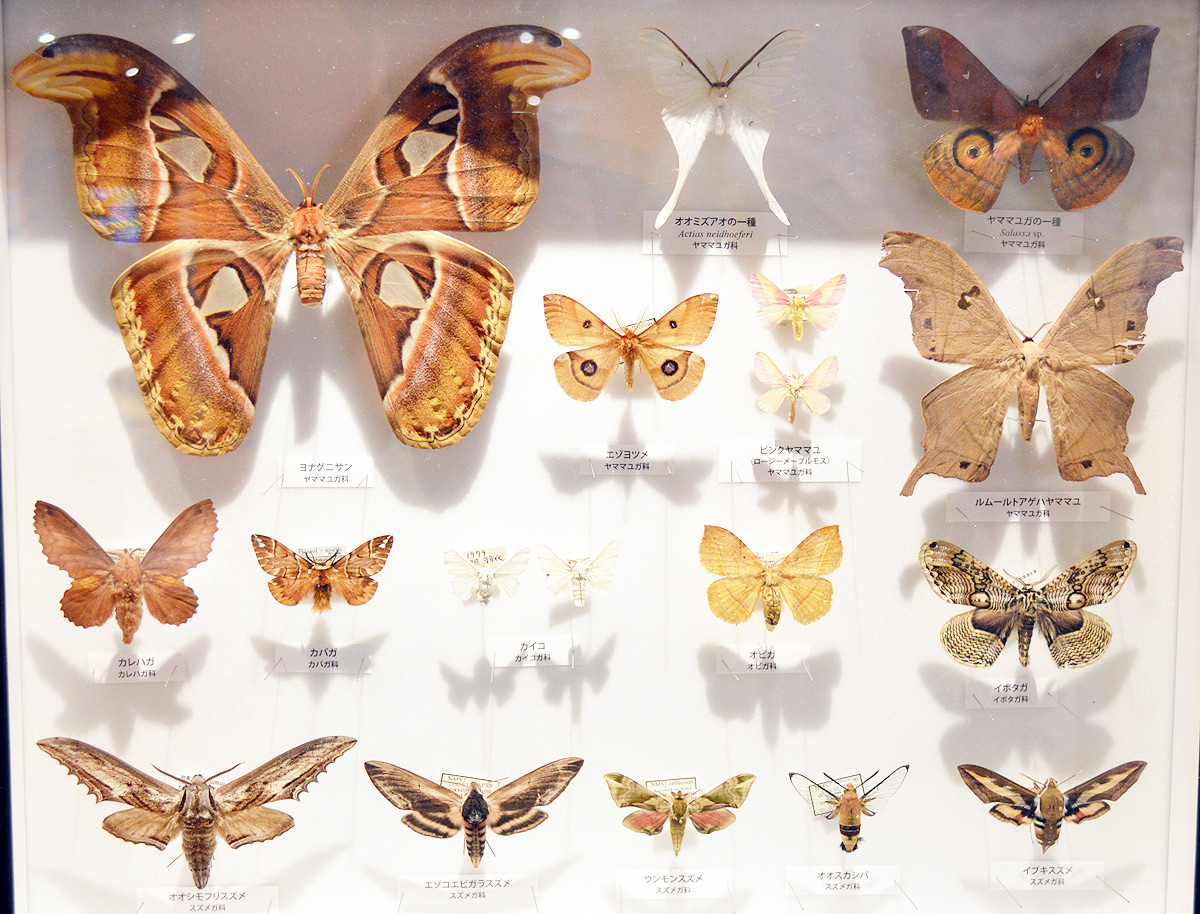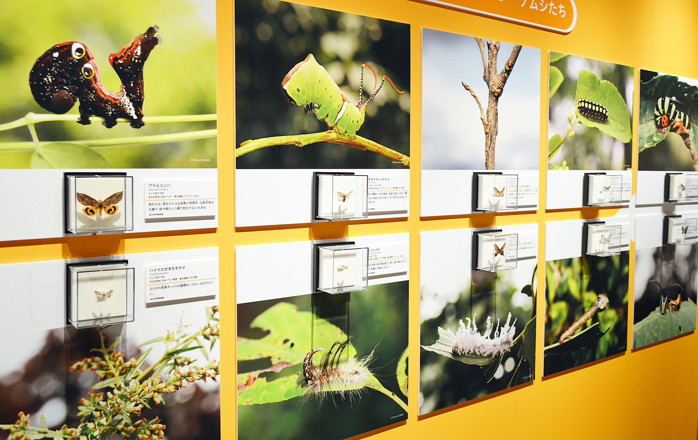 どちらも鱗翅目の動物で、本特別展では解りやすく「チョウ目」と言う言葉を使って説明しているぞよ。