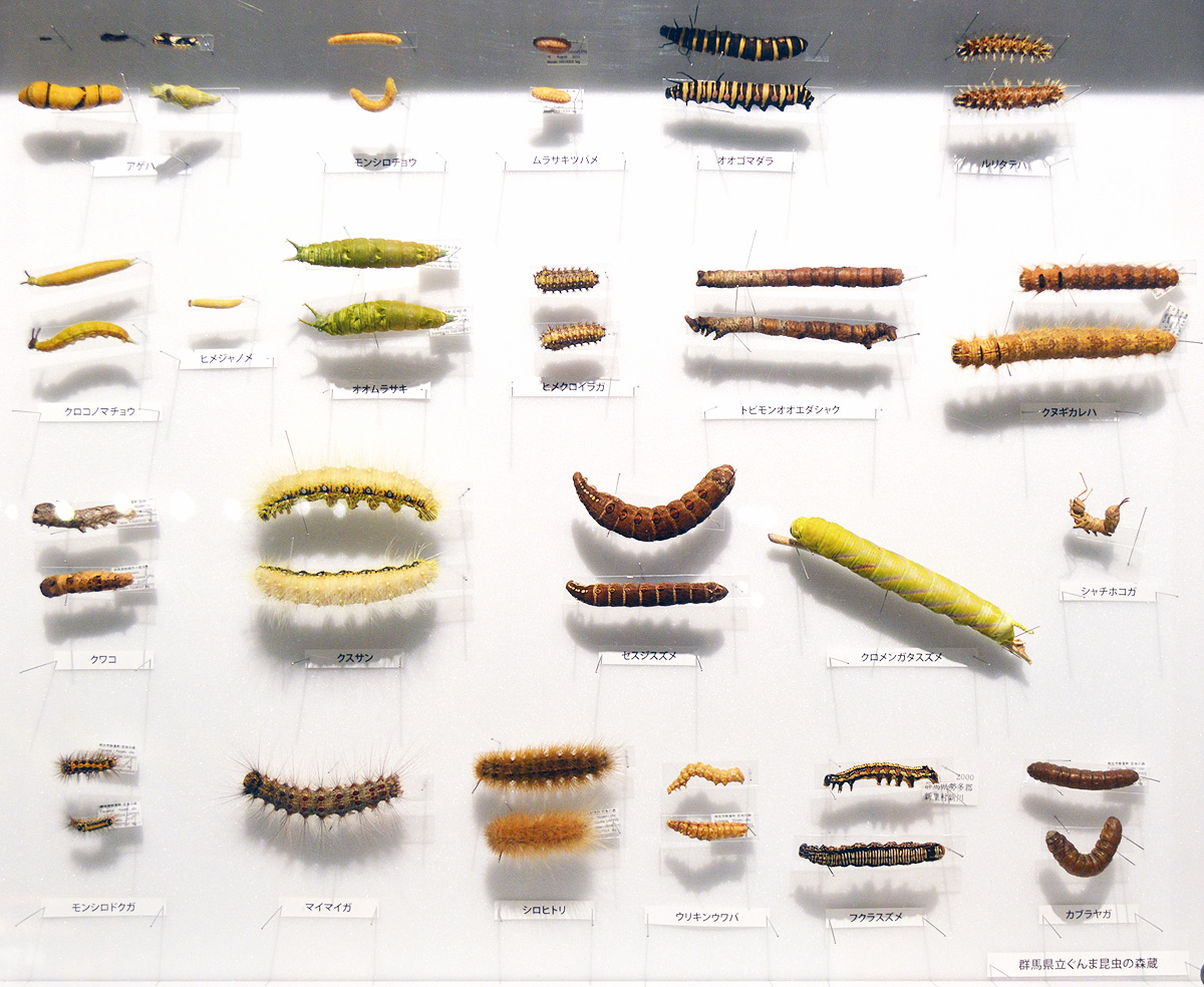 それにしてもこの箱の幼虫標本の実に見事で美しく保存されている事よ・・・!