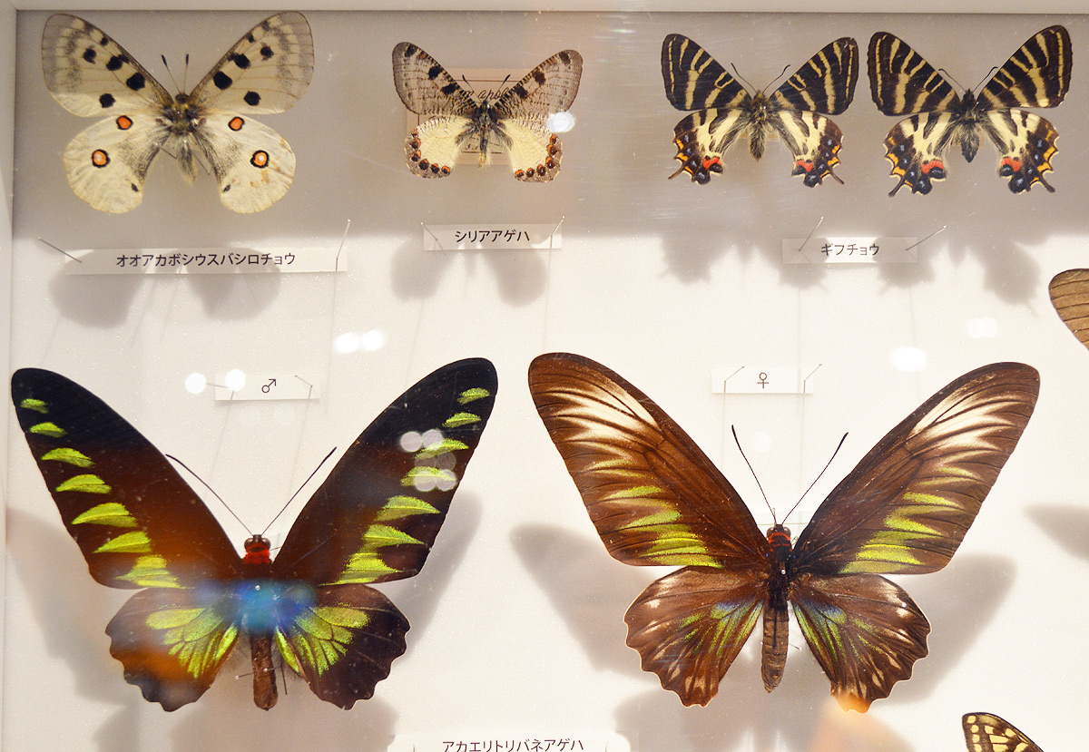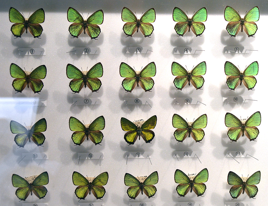 会場には様々の蝶を集めた標本箱がずらりと並んだ。