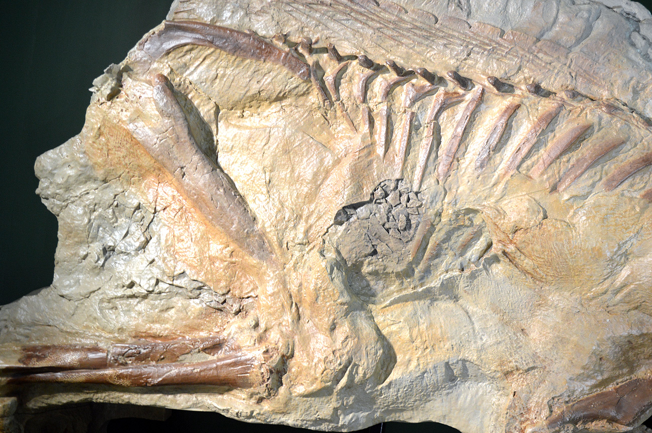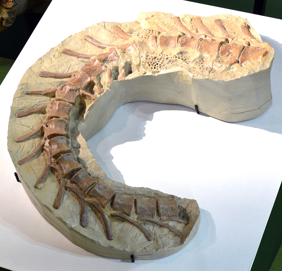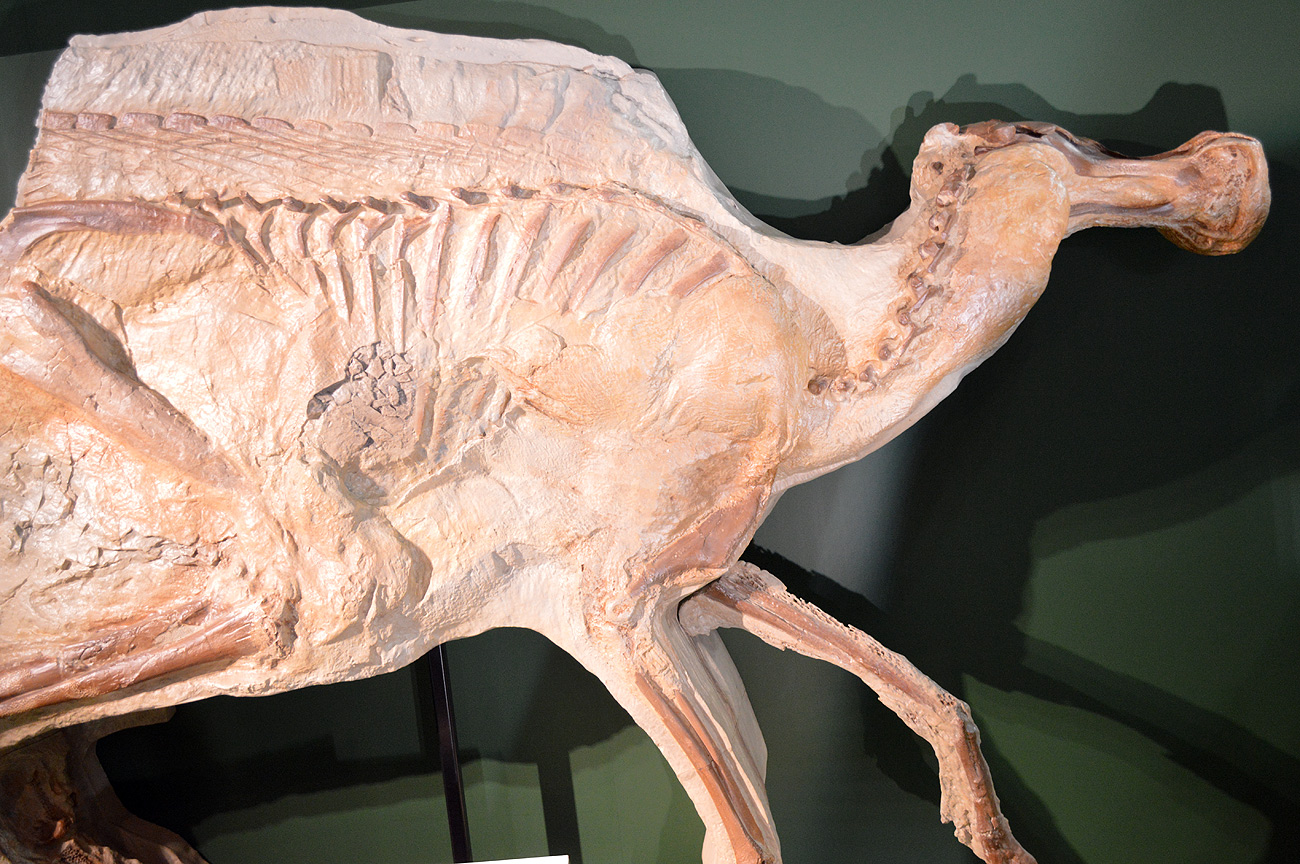 こちらの標本はレオナルドの愛称で呼ばれるものの複製で、ミイラ化した後に化石となった為、皮膚の痕跡が残っている貴重なものぞ。
