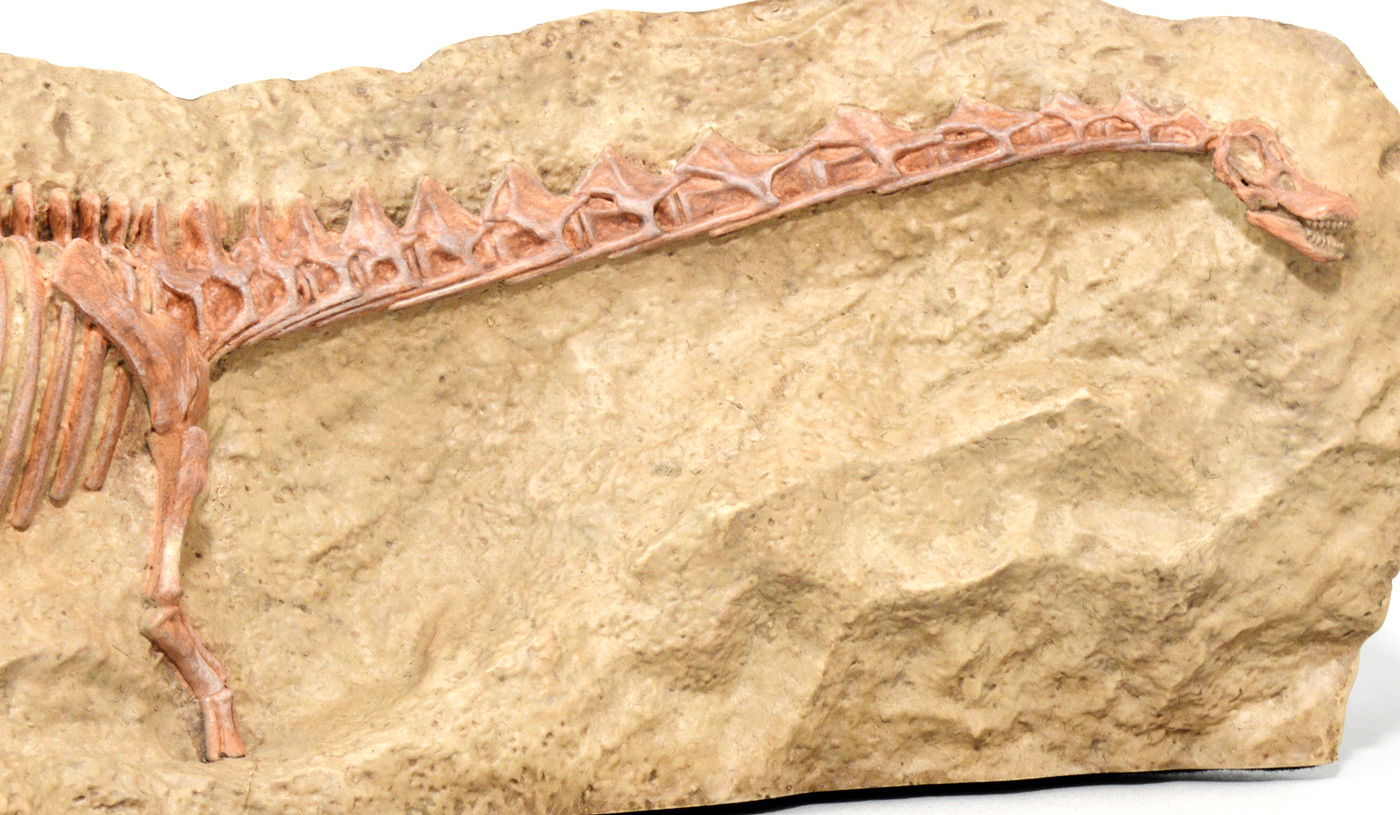 前述の限定ガチャに収録された骨格モデルの3D原型を基に拡大し、産状化石風に仕上げたのが本商品となる!