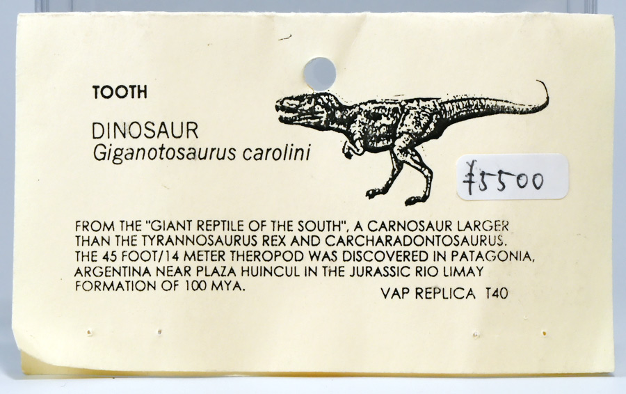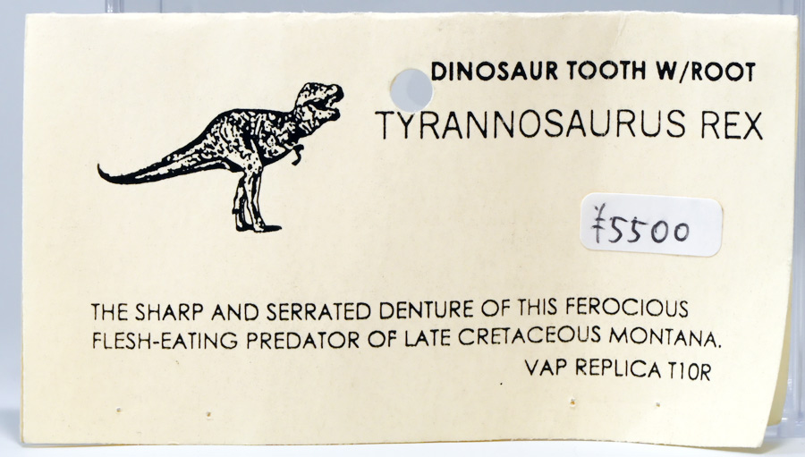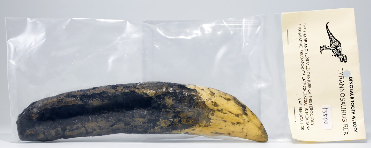恐竜の歯では最も入手しやすく、大体1万円か2万円くらいあれば大きくて立派なヤツがケース付きで買えてしまうぞよ!