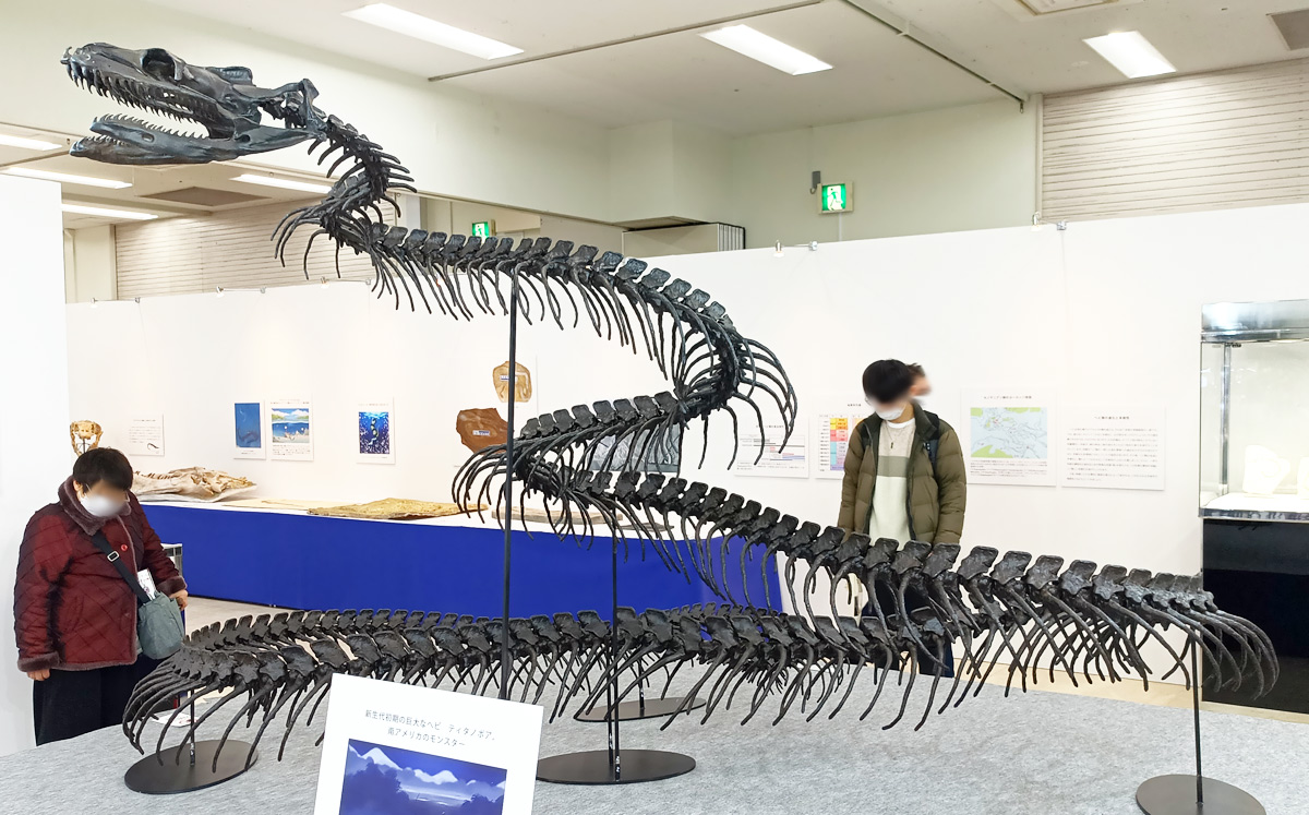 会場には目玉展示として中期〜後期暁新世に生息した超巨大なボア科の絶滅種・ティタノボアも登場!