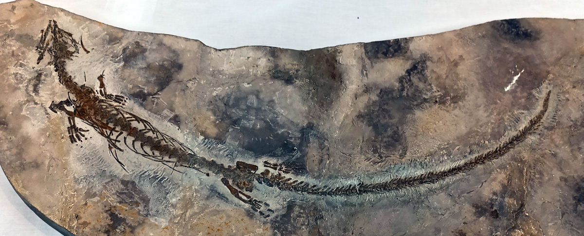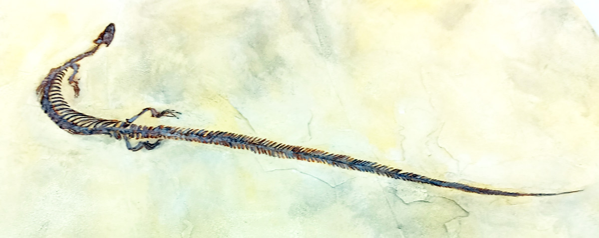 長い尾を持ち水中で魚類を捕らえる事に長けていたと考えられるモササウルスの祖先・ポントサウルスや、