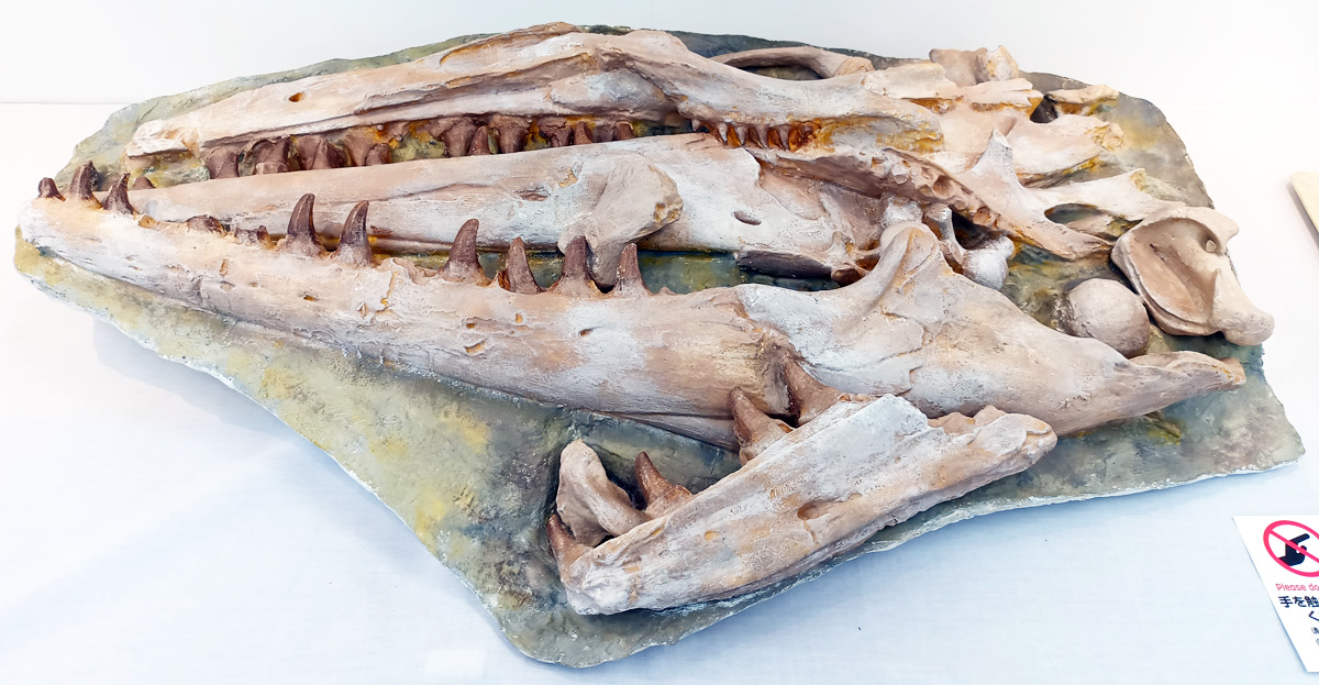 水辺をテリトリーとしていた為に、歯も化石として保存されやすく、おみやげとして広く出回っているぞよ。