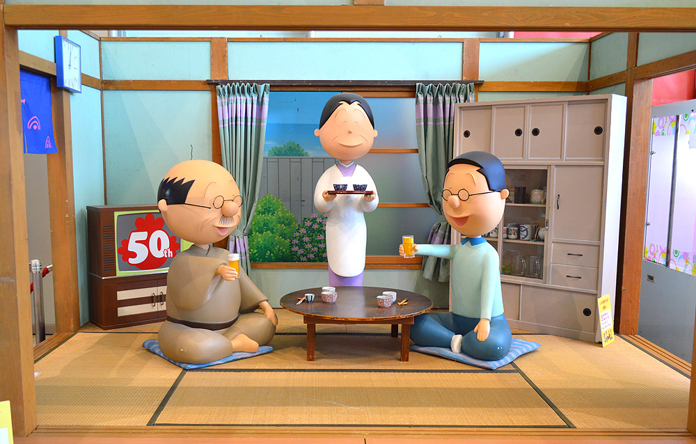 が、その前にこちらはフジテレビ本社屋1F「サザエさんのお店」に展示された磯野家再現立像ぞよ。
