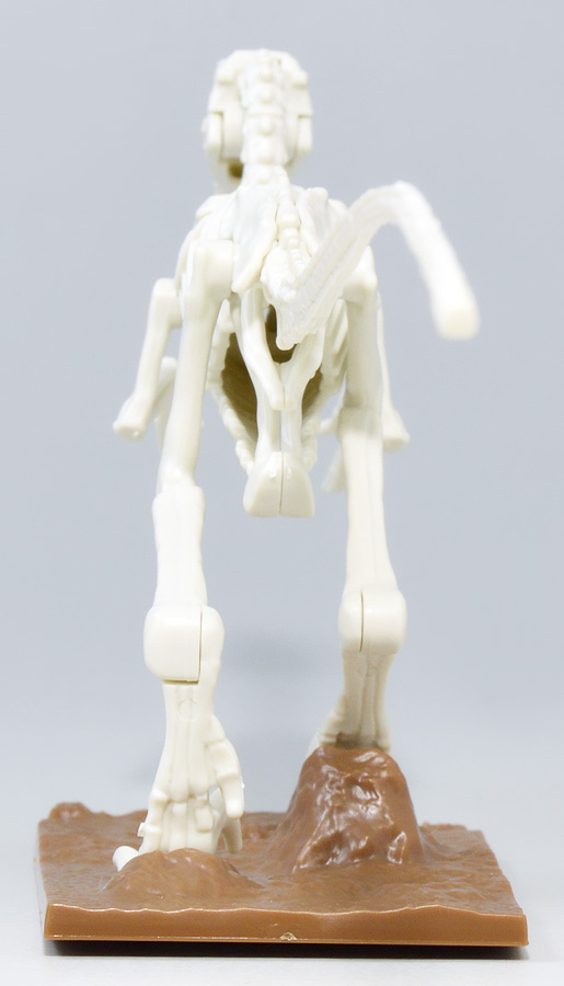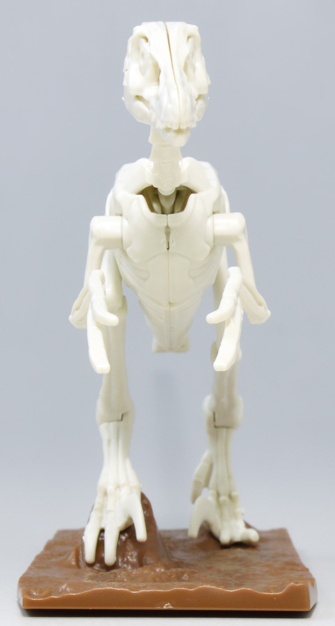 造形は骨格模型として比較的リアルな塩梅でありながら、関節等は一部可動軸を備えており、玩具としての側面も併せ持つ。