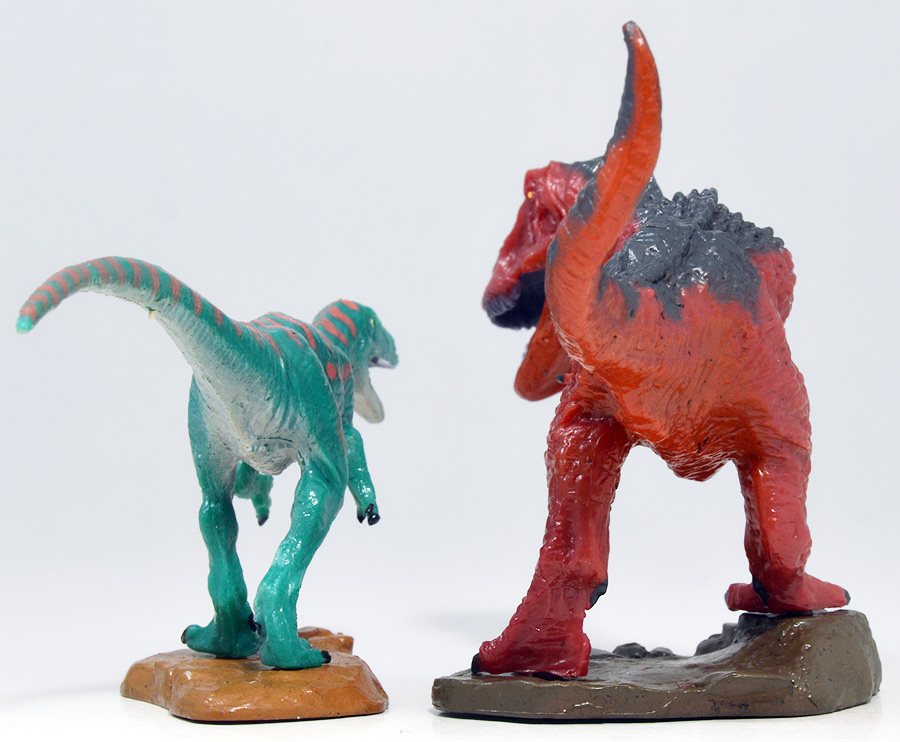 並べるとプラノサウルスの方が大きめだが、同じヴェロキラプトルなのでシルエットはそっくりな事が判る。