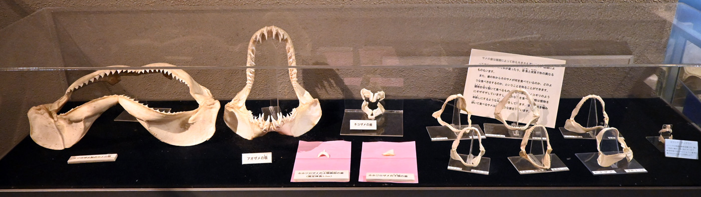 サメの顎や歯のコーナーも。