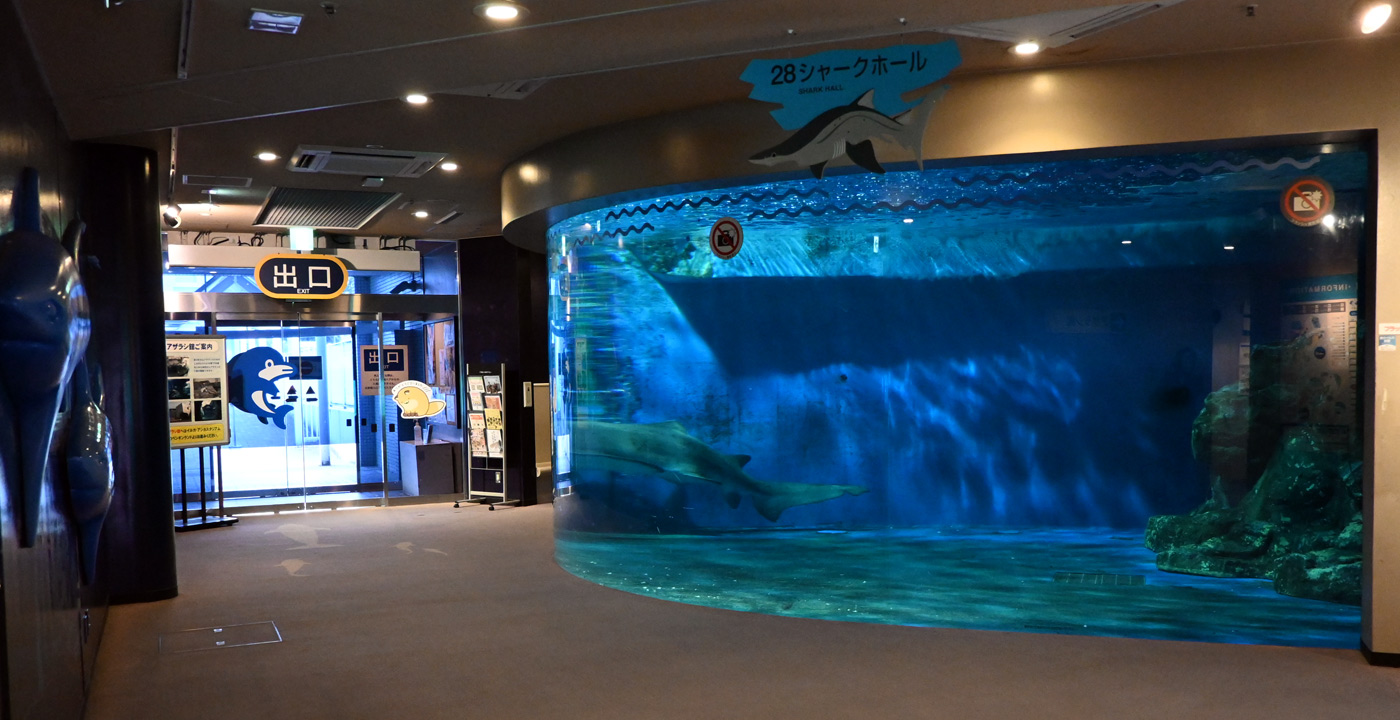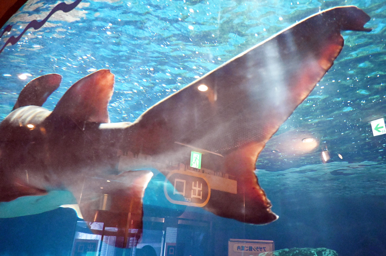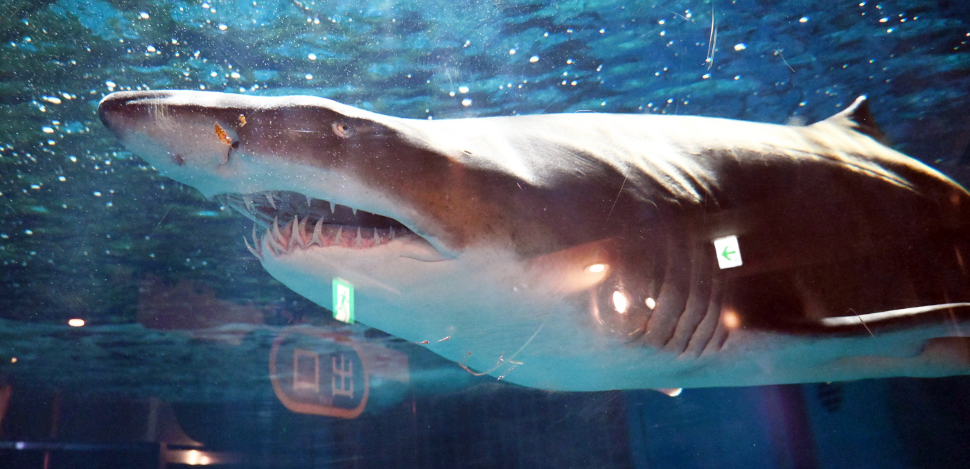 しな水のシャークホールではシロワニだけが悠然と泳ぎ、ほんの間近でじっくりと観察できるのは嬉しい。