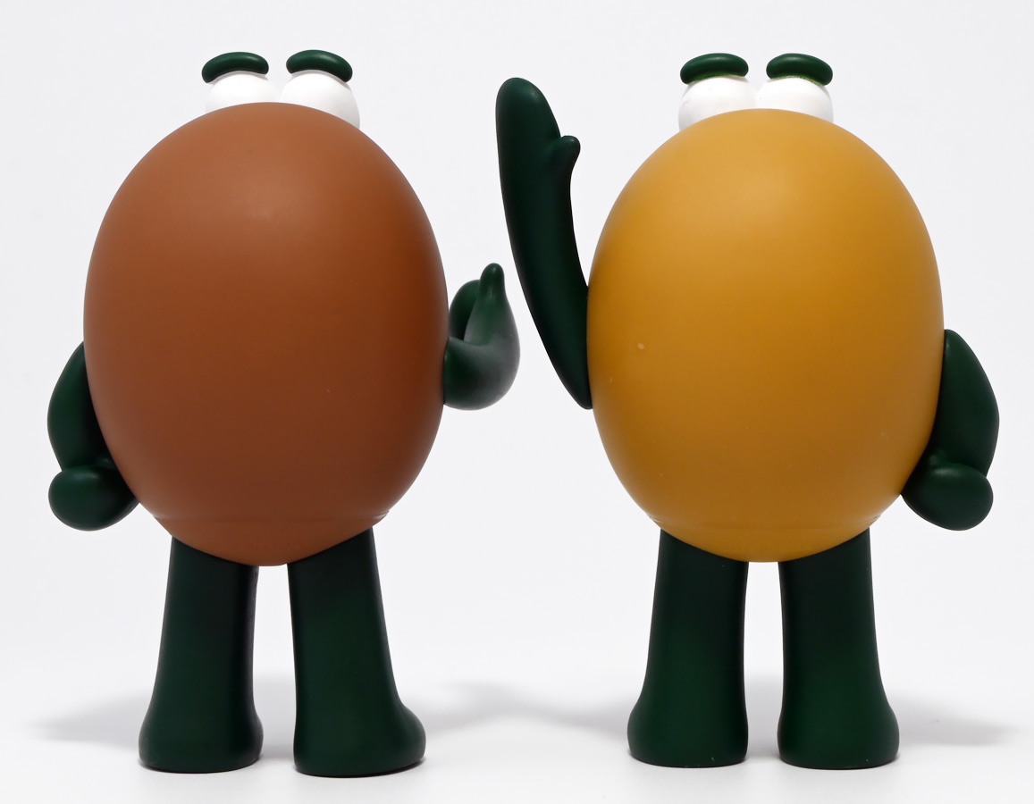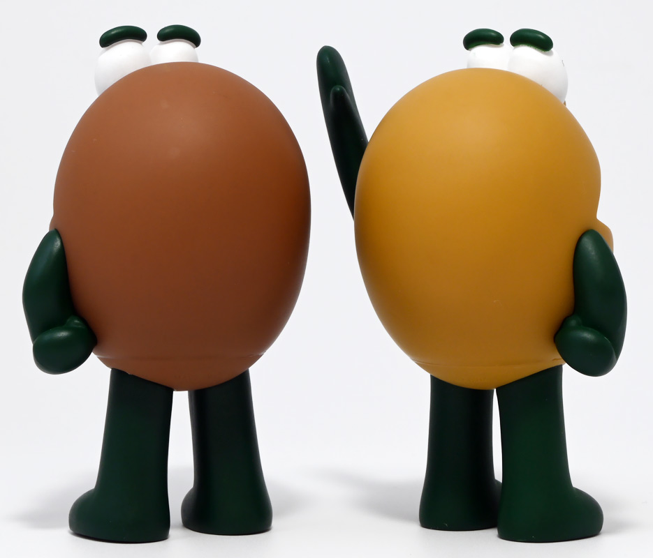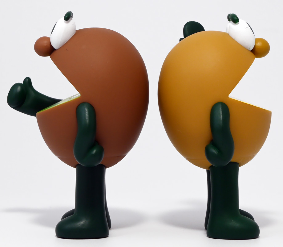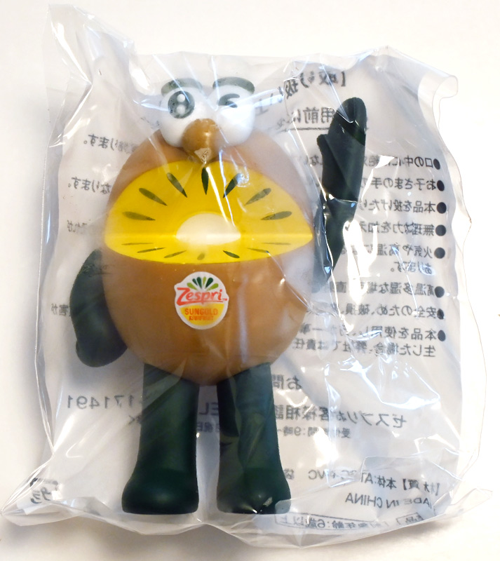 ■ゼスプリ キウイブラザーズ フィギュア2025 / キウイ専用ミニカッティングボード ![]() 2025年・・・今年もキウイの季節がやってきた! 毎年恒例となっているゼスプリ「キウイブラザーズ」フィギュアが2025年も登場ぞよ! ![]() キウイブラザーズのフィギュアは販売方法が超ユニーク! なんとキウイパックにフィギュアが混じっているんですね! 第一弾の「ゴールド」は8月26日から流通開始。 価格はお店によってまちまちだが、今年は1400円〜2000円くらいみたいぞよ。 ![]() 数量限定、店頭限りなので出会う事が難しいのだが今年もなんとかゲット! ゴールドはゴールドキウイ9個パックに入っていました。 ![]() 袋入りパッケージぞよ。 ![]() パケ裏。 ![]() 続く第二弾「グリーン」は9月2日から流通開始。 帯もちゃんと専用になっていました。 ![]() パカっと開封! こちらはグリーンキウイ7個パックに入っていたぞよ。 ![]() グリーンも無事ゲット! このフィギュアパックは人気があってあっと言う間に売り切れてしまうから探すのが大変なのだ! ![]() 袋入りパッケージ。 ![]() パケ裏。 非売品の文字が輝く!! ![]() 2025年も登場のキウイブラザーズ! フィギュア付きパックが始まってから今年で七年・・・ なんと七年目にして初めての立ちポーズ造形で登場ぞよ! ![]() サイズ感はほんものキウイより一回り小さめ。 本体サイズは例年と同じだけど、足が長い分いつもより大きめに感じられるぞよね! ![]() 今回はどちらもにっこり表情、腕のポーズは対称なので並べた時に映える二体となっている! 胸のゼスプリシールマークも可愛いぞよね!! ![]() キウイブラザーズの背景などは過去のフィギュアレビューで何度も紹介しているので割愛するぞよ。 詳しい事は2022年、2023年、2024年バージョンのレビューを参照のことぞ! ![]() キウイパックの販促フィギュアとしては初の立ちポーズとなった本商品。 しかし過去には雑誌「GLOW 2023年9月号」のふろくとして、 立ちポーズのキウイブラザーズがお花ピックの入ったゼスプリバケツを持ったフィギュア 「フルーツピックセット」がおまけに付いた事があるぞよ。 ![]() と言う事で密かに色々立体物が出ているのだ! 今年は2025年8月31日までのキャンペーンとして、 キウイについているゼスプリシールを15枚集めて応募すると抽選で1000名に当たる 全高20センチの「キウイブラザーズ特注フィギュア」も登場し、 このジャンルを集めているコレクターにはアツい年だったようだ・・・! ![]() トップ。 本物のキウイブラザーズは瞼が宙に浮いているのだが、フィギュアでは目玉にくっついています。 ![]() ボトム。 温かみのある質感のソフビ人形。 そのうちフロッキー加工verとかも出そうな気がしているが、胸のシール部分が難点か・・・。 ![]() わたくしは集め始めて今年で4年目となるキウイブラザーズ! 毎年買い逃さないかハラハラしちゃうぞよよ〜っ!! ![]() おまけ。 こちらは2025年9月8日より数量限定で発売された 「キウイ専用ミニカッティングボード付きパック」! 昨年好評だったミニカッティングボードが新デザインで今年も登場! って事で、全然知らなかったがこんなおまけつきパックもあったぞよね〜。 ![]() パカっと開封。 キウイ6玉とミニカッティングボードが入っています。 ![]() 絵柄はイエローでした。 2024年verは長方形の兄弟絵柄だったが、 今年のバージョンは絵柄に沿ってカットされた新デザインとなっているぞよ。 ![]() こんな感じの耐水硬質シートで、この上でキウイを切れるまな板になっている。 ちょっとしたおまけだがファンには嬉しいアイテムぞよね! :このリンクを踏んで何かポチるとわたくしにささやかな報酬が入りサイトの運営費となるのでよろしくぞ! ・「ゼスプリ キウイ」 ・「ポケットモンスター ぴょこぷにゅ コダック」 ▲TOP |