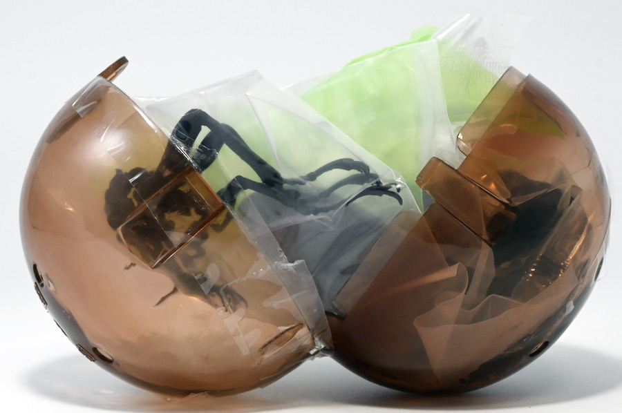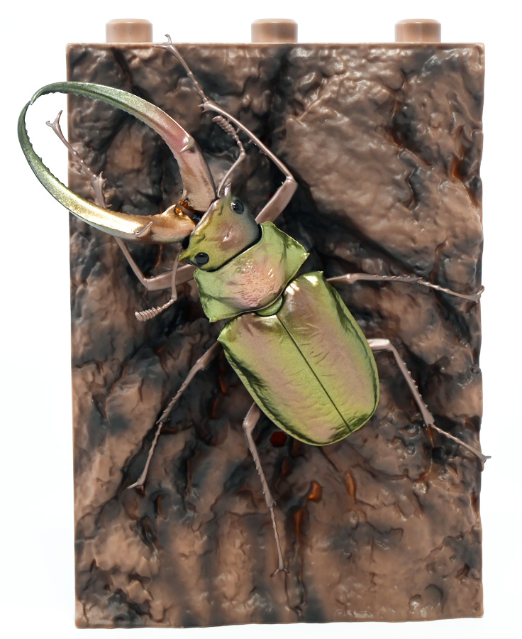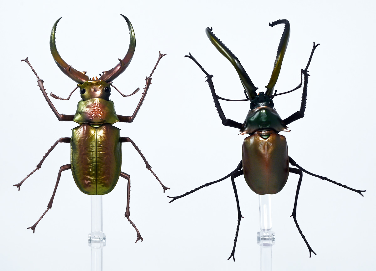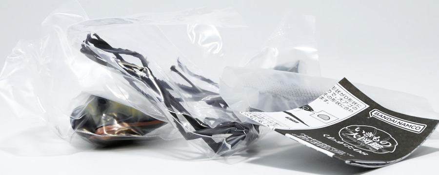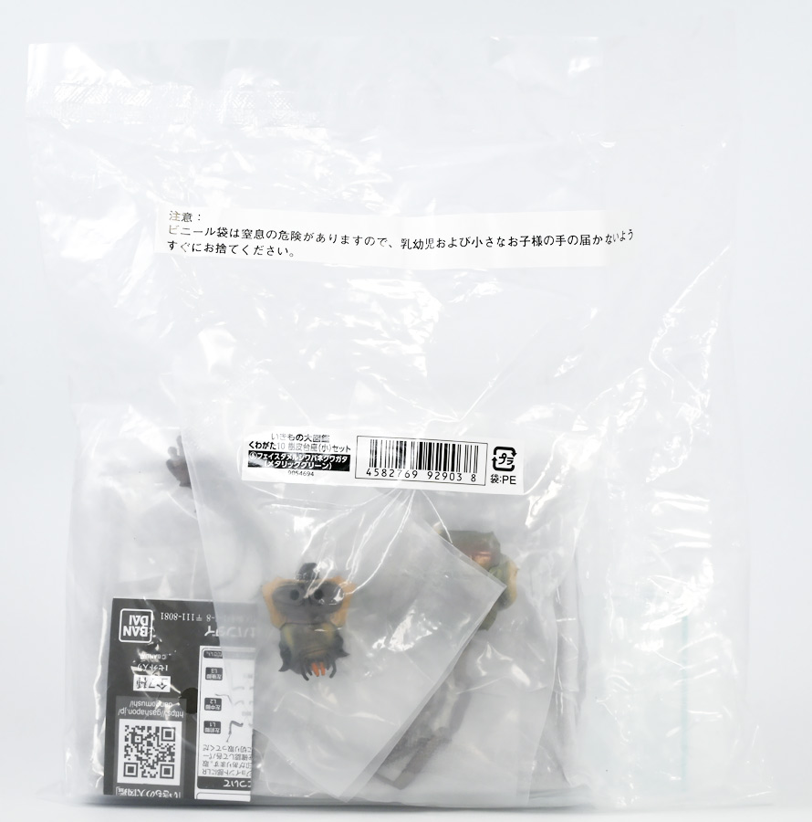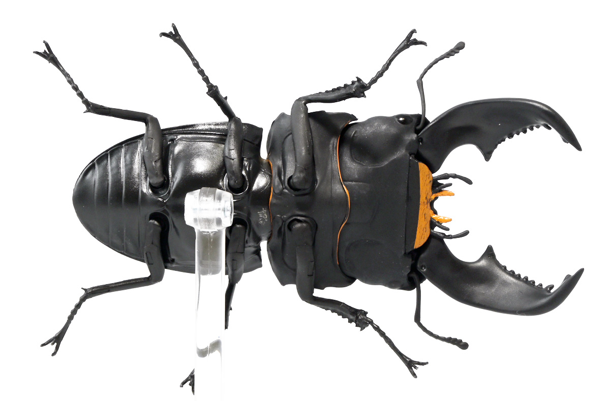 ■バンダイ いきもの大図鑑 くわがた10 樹皮台座(小)セット フェイスタメルシワバネクワガタ(メタリックグリーン) ![]() バンダイより、2025年4月3〜20日までガシャポンオンラインで受注の後、 6月下旬に発送された一回650円のオンラインガチャ。 「くわがた10」のオンライン版ぞよね! 中身はいつも通りカプセル入りでなくこんな袋入りで届きます。 ![]() 筐体版500円に対しオンライン版は一回650円となっているが、 おまけとして新規造形の「樹皮台座(小)」セットがついてくるぞよ。 中身の昆虫造形は筐体版と同じだが、 オオクワ蛹のみオンライン版は「羽化直前カラー」となり仕様に違いがある。 ![]() それでは開封! こちらはフェイスタメルシワバネクワガタのメタリックグリーンカラーだ! 名前もややこしければ見た目も奇怪なモンスタークワガタぞよーっ!! ![]() フェイスタメルシワバネクワガタはペルー、ベネズエラ、コロンビア、エクアドル、ボリビアなどの アンデス山脈高地の熱帯雨林に生息する南米産シワバネクワガタ属の正真正銘のクワガタムシ! 全長は最大で8センチになり、南米のクワガタではチリクワガタに次ぐ大型種となっているぞよ! チリクワガタは大顎が極端に長く全長も伸びているが、 本種は体長5センチクラスで体だけ言えばチリクワガタよりも大きくなる。 ![]() その名の通り前翅の表面に皺が入り、 全身にもふもふの毛が生えているのでシルエットも相まって 宇宙生物の如き実に奇天烈な姿の奇虫であるぞよ。 わたくしはこういう奇虫の玩具が大好きなので今回では一番のアタリって感じぞよね! ![]() 南米大陸のシワバネクワガタ属は28種知られているが、シノニムが紛れていてホントのところはよく判らん。 これとチリクワガタ属、そしてオーストラリア大陸のムナコブクワガタ属、 南アフリカのマルガタクワガタ属は近縁で、 昔大地がゴンドワナ大陸として地続きだった頃に共通の起源を持つと考えられているぞよ。 フェイスタメルシワバネクワガタはシワバネクワガタ属の代表格であり、 緑色の金属光沢を帯びるものと、紫色に光るものとが知られている。 ![]() 本商品はそんなフェイスタメルの緑色っぽい個体をモチーフとしているというワケ。 原型は株式会社JMCの手による実物標本のCTスキャンから起こされており、 彩色はこちらも三浦二郎氏の設計だ。 ![]() いつもは脚が無彩色で味気ないのだが、本商品はなんとメタリック成型色になっている! ま〜リアルかと言うとまた違うがなかなか面白い仕様ではないか〜! また、前述の通り本種は特に大顎から胸部にかけてもふもふの毛を纏うが、 造形ではオミットされているぞよ。 こりゃしょうがない部分ぞよね。 ![]() お腹側は毛の表現が再現されている! しかも彩色もかな〜り凝っていて豪華な仕上がり。 500円でこれはお買い得ですぞよ! フェイスタメルは国内にもちょこっと入ってきており生体の流通があるようだが、 やはり成虫の期間はごく短く、飼育方法も確立されていない為累代は困難。 かなり高級みたいぞよ。 しかし現地では結構普通に見られるらしい。 ![]() このフェイスタメルシワバネクワガタもやはり複眼が眼縁突起で区切られていて目が四つあるように見える。 もうここまで分離しちゃってると円らなおめめに見えてキュートぞよ。 ![]() 1年前に出たチリクワガタと並べて〜。 ご覧の通りこの2種、およそクワガタに見えない奇妙な特徴が良く似通っている! 先にも申した通り、シワバネクワガタ属もチリクワガタ属もゴンドワナ大陸起源の共通祖先をもつとされ、 中でも二つは系統樹に並べた時に隣り合う姉妹群と考えられているぞよ。 ![]() そして、ガシャポンオンラインだけの特典。 +150円で立派な樹皮台座(小)がおまけに付いてくる!! こりゃどう考えてもオンライン版の方がお得だが、必ず送料660円がかかるのは玉に瑕。 ま〜電車賃と思えば安いもんだ! ![]() 今回初登場の樹皮台座小、従来の止まり木台座の発展形と言った感じで、 裏面には連結ジョイントが格納され、径は汎用台座と共通であるなど拡張性も高い。 ![]() 連結ジョイントで左右上下に拡張可能! 集めれば集める程楽しい台座となっているぞよ。 ![]() 虫固定用のピンも3mmピンと4mmピンが付属し、 使わないときは左右の窪みに格納可能と至れり尽くせりな仕様となっている。 ![]() さっそくフェイスタメルを飾ってみよう! お〜っ! なんと雰囲気のあるビジュアルだろう! まるで博物館の展示模型のようではないか〜っ!! ![]() いきもの大図鑑は標本再現を越え、情景と共に飾る時代へ・・・っ! これが650円ってこのご時世に太っ腹すぎるぞよ・・・。 やっぱり版権料が無いのがデカいのか!? ![]() フェイスタメルシワバネクワガタは実物8センチに対し全長約12センチの拡大サイズで立体化。 可動箇所は12箇所となっており、歪曲した大顎も勿論開閉可能ぞよ! ![]() 勿論他の昆虫達も虫ピンで合体できますよ。 更に汎用台座をベースにする事で立たせた状態で安定し