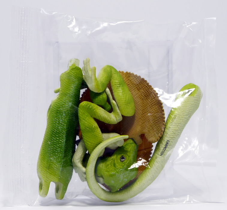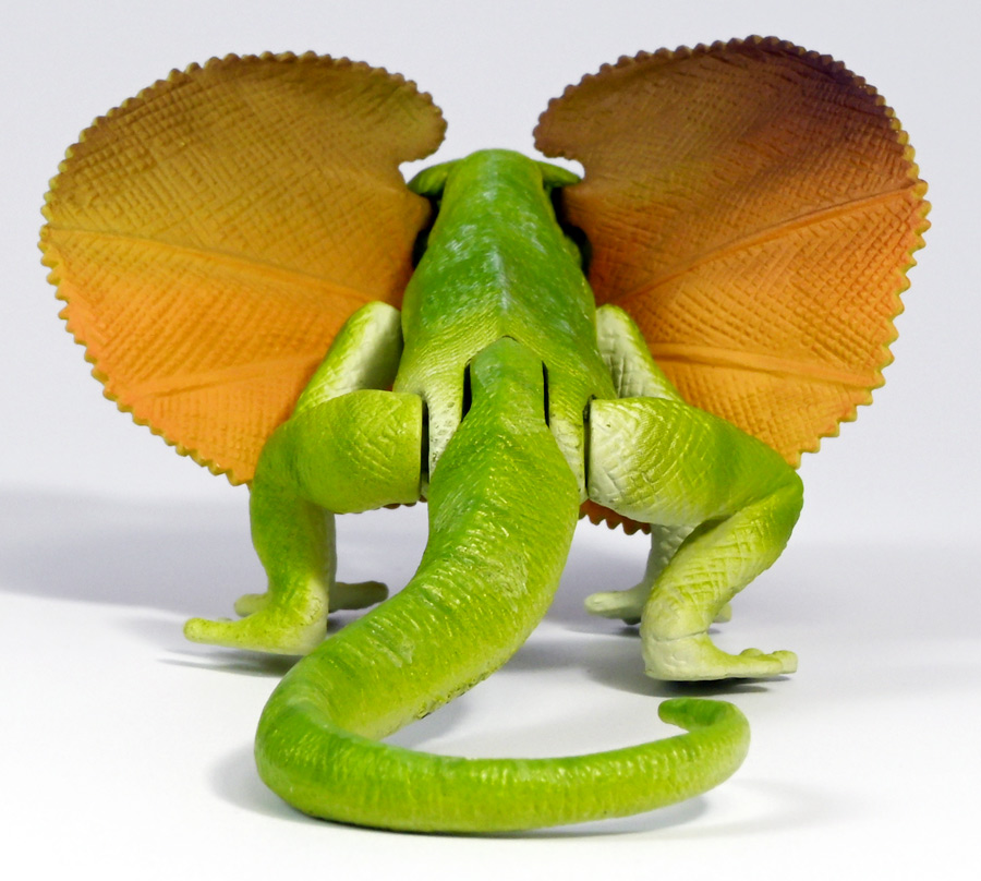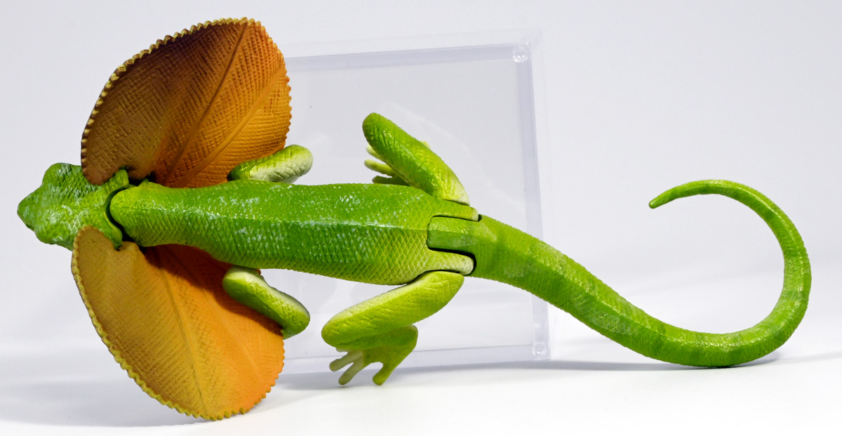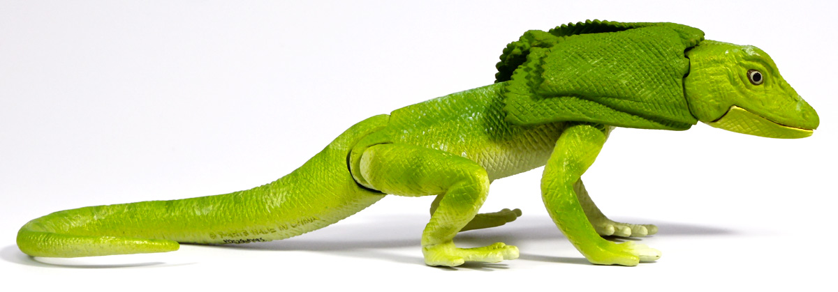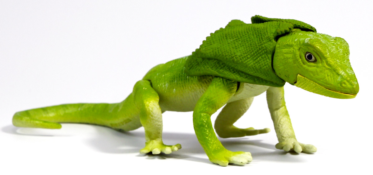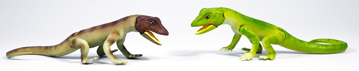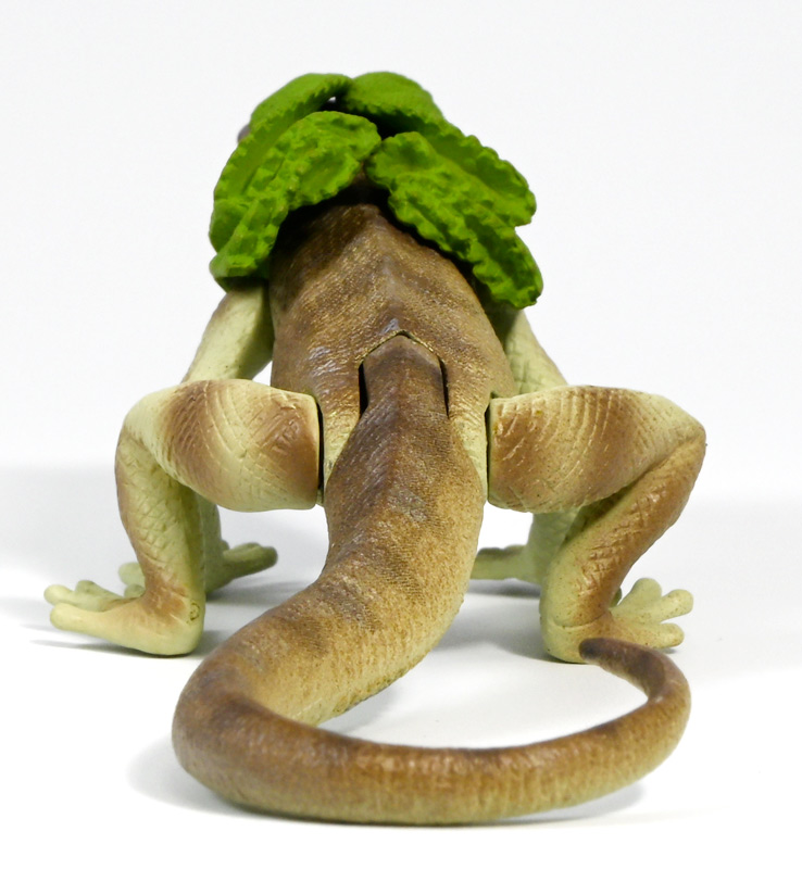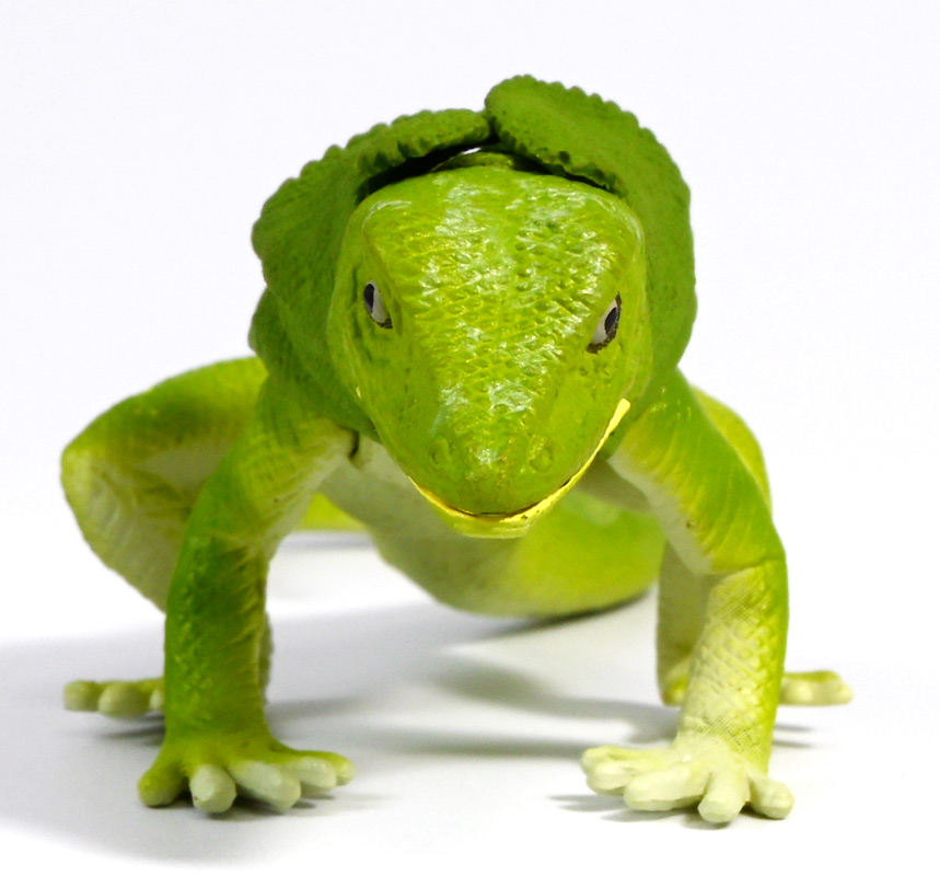 ■タカラトミーアーツ あそべる生物フィギュアシリーズ トカゲキングダム エリマキトカゲがやってきた!! エリマキトカゲ ![]() タカラトミーアーツより2025年9月22日週発売の一回300円ガチャ! 通な動物を可動ラインナップする「あそべる生物フィギュアシリーズ」より、 大人気「トカゲキングダム」の第四弾が登場! ラインナップは新規造形の「エリマキトカゲA」、「エリマキトカゲB」に加えて、 「フトアゴヒゲトカゲ」と「カメレオン」が過去弾より再集録。 フトアゴヒゲトカゲは恐らく2023年7月の第一弾「トカゲキングダム」に入っていた「A」カラーとほぼ変わらない再録カラー。 カメレオンも同弾「A」に似ているがちょこっとグラデ彩色が簡略化されているように見えるぞよ。 何れにしても今回はどれもきちんと彩色・模様プリントされており全種豪華な仕上がりだ! ![]() カプセルの中身は袋入りでごちゃっと入っています。 この雑に入ってるパッケージ、なんかわくわくしてわたくしは結構好きぞよ。 丁寧梱包のフィギュアもありがたいが、 「あそべる生物」は300円なので許せちゃうのだ! ![]() 早速組み立て、こちらは「エリマキトカゲA」ぞよ! フル彩色の豪華な仕上がり、今回初登場の新規造形フィギュアとなる! ![]() エリマキトカゲはアガマ科(キノボリトカゲ科)エリマキトカゲ属に分類されるトカゲであるぞよ! オーストラリア北部とニューギニア島南部にのみ見られ、一属一種しか知られていない珍しいヤツだ! 全長は60〜90センチにもなり、なんと言っても最大の特徴は首元に備わった特徴的なフリルであるぞよ! これが襟巻に見える事から「エリマキトカゲ」と和名がついたワケで、そのまんまぞよね! ちなみに学名の「Chlamydosaurus」とは「マントトカゲ」の意であるぞよ。 ![]() この襟巻の正体はなんなのかと言えば、舌骨が上皮に入り込んで出来た皮膚の傘であるぞよ。 下顎と軟骨の動きが舌骨に伝わる事で、つまりは口を開くと同時にフリルが展開する仕組みで、 円盤状に展開された状態では胴幅の四倍以上、約30センチにも広がると言う。 襟巻の構造としては舌骨から伸びた3本の骨組みで支えられており、 上から第1対角、第3対角が軟骨、第2対角が硬骨となっている。 本商品のフリルを見てみると・・・ちゃんとフリルの骨組みが3本あるぞよね!? という事でツボを押さえた造形と言えるだろう! ![]() エリマキトカゲは地域性で主に2つの亜種に分けられ、オーストラリア亜種は乾燥した森林に住まい、 体が大きく90センチ級。 ニューギニア亜種は小柄の70センチクラスで、熱帯雨林に近い温暖な気候を好むと言う。 昼行性の樹上性で、一日の大半を木の上で暮らしているが、 雨期になると地面に近い場所に下りてきてより活発に活動を始めるぞよ。 主に昆虫などを食し、特にシロアリは乾季でも見つかる重要な栄養源である。 環境や湿度、感情によって体色を変化させる事があり、 興奮状態では襟巻がオレンジや赤に変わって、猛禽類や他のトカゲやヘビに対して威嚇すると言うぞよ。 そう、この襟巻は自分を大きく見せて相手を驚かせるために発達したものなのだ! ![]() 性的二型が発達しており、オスの方が大きく、頭や顎も立派で、襟巻も大型化する傾向にある。 襟巻は周囲の音を察知する時にも有効であるとされ、大きく広げた状態では眼前の音を収音して聞く事が出来ると言う。 一方で多方向からの音を聞く妨げになる点も指摘されており、 眼前の危険に集中する為の機能とも考えられるぞよ。 ![]() トップ。 今回彩色が非常に美しいぞよね! 襟巻も体もグラデ彩色されているし、背中側はほんのりと縞模様も入っていて見栄えがするぞよ! ![]() 鱗の造形も細かく雰囲気出ていますよ! 300円で全長13センチ級のフル彩色フィギュアがゲットできるとは嬉しい事ですぞよ〜っ! ![]() 「あそべる生物」は一部簡易可動の正に「あそべる」フィギュア! エリマキトカゲはこんな風に後ろ足の角度を変える事で二足歩行形態にも変形可能となっている! 後ろ脚は左右と尾が軸で接続されており、尾を持ち上げると足も同時に変形する仕様。 前脚もスイング可動し表情付けが出来るぞよ! ![]() 勿論口も開閉します。 前述の通り襟巻は口の動きと連動しているので、口を開いた方がより自然な姿であるぞよ。 ポイントを押さえてエリマキトカゲのユニークな威嚇ポーズを再現しよう!! 襟巻の展開は他にも求愛行動や日光浴で熱を効率的に受ける際に重宝され、 色々便利な機能を備えているようだ! ![]() 続いてこちらは「B」カラー。 おや・・・? 何やらパーツがAと異なる様子だが・・・!? ![]() な、な、なんと・・・! こっちのエリマキトカゲはフリルを閉じた状態で造形が違うではないかーっ!! ![]() 「あそべる生物」では同弾に同じ動物が複数ラインナップされる事があり、 多くの場合はAカラーの方が重塗装のアタリ枠だったりするが・・・ 今回はどちらも重塗装の上、襟巻の造形が異なる別物となっているのだ! これ