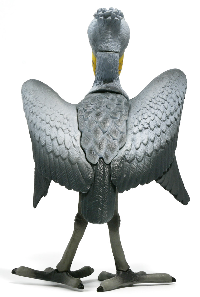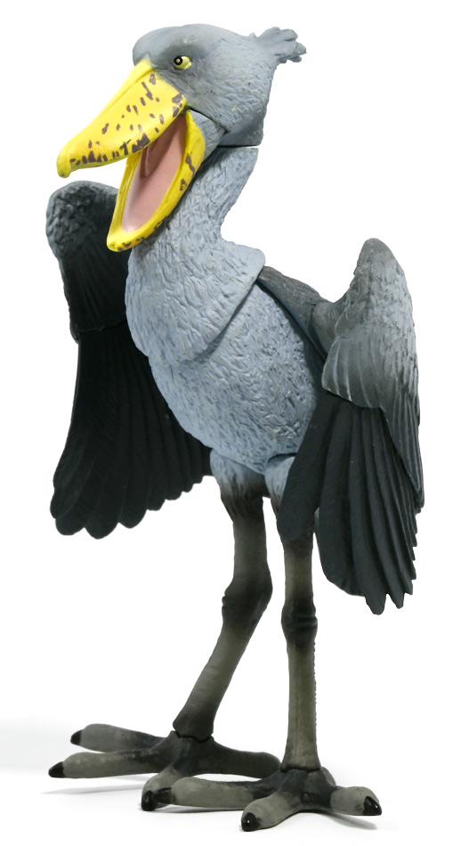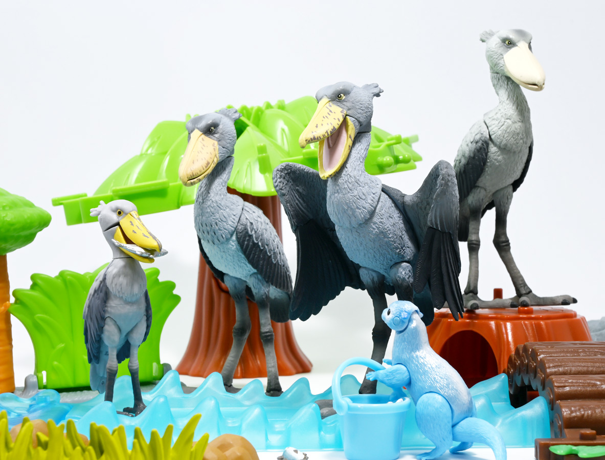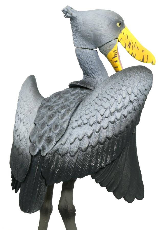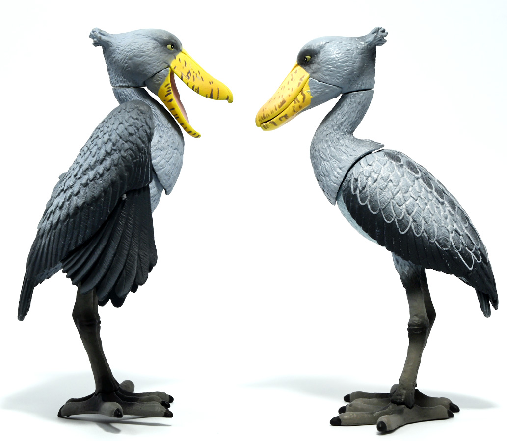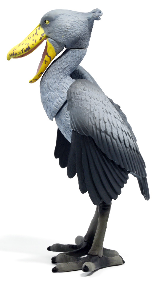 ■タカラトミーアーツ あそべる生物フィギュアシリーズ 動かない鳥 ハシビロコウ ハシビロコウ C ![]() タカラトミーアーツより、2025年10月13日週発売の一回300円ガチャ! 過去弾より「ハシビロコウ」さんが特集ラインナップへと昇格。 カラバリ&一部新規造形で新たなバリエーションが収録されているぞよ! ![]() いつも通りごちゃっと入っています。 ラインナップは全て「ハシビロコウ」、AとBが素立ちモード。 CとDが羽を少し広げた一部新規造形で2造形×2色のバリエーション集録となっているぞよ。 どれが出てもハシビロコウ確定なのでファンにはたまらない一弾となっている! ![]() じゃん! こちらは「ハシビロコウC」であるぞよ! 一部新規造形かつスタンダードなカラーと言う事で本弾のアタリ枠なのだ!! ![]() で・・・でっかいぞよーっ!! 全高約11.8センチ! 翼幅約7センチ級で、恐らく「あそべる生物」史上で最も高さ・幅共に大きいフィギュアとなっているぞよ! タカラトミーアーツはとどまる所を知らんのだ!! ![]() 彩色もむちゃくちゃ豪華で、これが300円って信じられないぞよよ〜! ラインナップ全部ハシビロコウさんでパーツを共有しているとは言え、 大盤振る舞いすぎ!? ![]() 鳥と言っても世界には様々な種類の鳥が生きているぞよ。 どのくらい知られているかと言うと、 全体では44目253科2381属11194種もいるから一口に説明できる規模では無いぞよね。 このような鳥達をおろかなにんげんどもはどうやってグループ分けしてきたかと言えば、 かつては形態や生態に共通点を見出しラベリングしていたぞよ。 見た目の似ている鳥は似た系統であると言う考え方ぞよね。 しかし、中には生活史が似ている為に収斂してそっくりになったものや、 見てくれが奇妙でなんの仲間なのかさっぱりわからない鳥もいる。 このような鳥達の正体はおろかなにんげんどもの脳みそを随分悩ませてきたぞよ。 現代ではおろかなにんげんどもの技術は神の領域に達し、 DNAの構造全体・・・すなわちゲノムを解析し、比較する事が可能となった。 現代では鳥の分類分けはゲノム解析による、より正確な系統樹として再編されているぞよ。 このハシビロコウなどはゲノム解析時代になって真の分類が判明した鳥の一つである。 ![]() かつて伝統的にはコウノトリに近い鳥と考えられていたハシビロコウは、 ゲノム解析の結果、ペリカン類に最も近い事が判明しているぞよ。 新口蓋類の中でキジカモ類を除いたグループを新鳥類と呼び、 ペリカン目はこの中でトキやアオサギ、モモイロペリカンなどを含むグループだが、 ハシビロコウは中でも一際奇妙な姿をしているぞよね。 ハシビロコウ科ハシビロコウ属はこの一属一種しか知られていないぞよ。 ![]() 全高は110〜140センチ、 最大では152センチにもなるという大きな鳥で、 幅広い嘴と長い趾はアフリカの湿地でハイギョを食う事に特化した進化であるぞよ。 ハイギョが水面に現れた瞬間、ダイブして瞬時にこれを捕え食ってしまうが、 この狩りの方法こそペリカンと共通する習性であり、共通祖先に由来すると考えられているぞよ。 ![]() この趾の形態は半蹼足っぽく見え、まさにコウノトリとそっくりである。 このような形態の特徴から過去にはコウノトリ目に含める説が主流であったが、 ゲノム解析してみるとペリカン類に近い事が判明したってワケぞよね。 実はハシビロコウの趾は沼地に佇む為に全部の指が長く、大きく広がるようになっている。 後ろ向きの指も長いので木に留まる時にもがしっと掴めて安定するのだ。 ペリカンの趾は全蹼足と言う形で、一見するとハシビロコウとは様子が異なるぞよね。 ![]() 「あそべる生物」シリーズと言う事で本商品のハシビロコウさんは全て首がロール可動する! 300円にしてビッグサイズ、お買い得な本弾ですが、パーツの接続はややきつめで、 首はそのままだと嵌めにくく動かしにくいぞよ・・・! 従って軸をちょこっとデザインナイフで削ってやるとスムーズに遊びやすくなります。 ![]() 奇妙にして愛嬌のあるハシビロコウ! 300円でこんなでっかく立派なハシビロコウさんが確定で手に入るとは・・・ 嬉しすぎるぞよーっ!! ![]() 翼のディテールも美しいぞよね! 背中から見ても映える一体だ。 ![]() ハシビロコウは動物園でも見られるお馴染みの鳥だが、飼育下での繁殖は極めて難しいとされているぞよ。 今のところ成功例はベルギーとアメリカのみ。 国内でも挑戦が続いているが成功例は無い。 そして絶滅が危惧され保護されている種であるので、新たに輸入してくる事も理由が無ければなかなか難しい。 このまま自前で繁殖できなければ数が減り続け、動物園から姿を消してしまう事も考えられるぞよ。 飼育下での繁殖が成功すれば、種の理解も深まり保全も進む! ぜひ頑張ってほしいぞよね!! ![]() 理由はわからんけどハシビロコウは若い頃は目の色が黄色、 大人になってくると青っぽくなると言われている。 本商品はやや黄色っぽい色味
