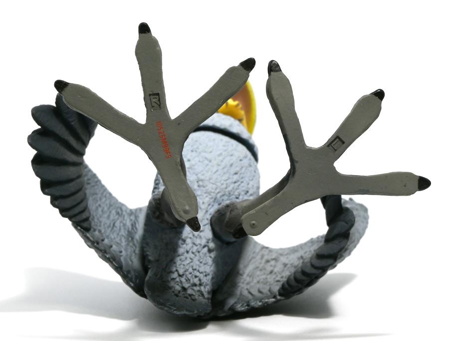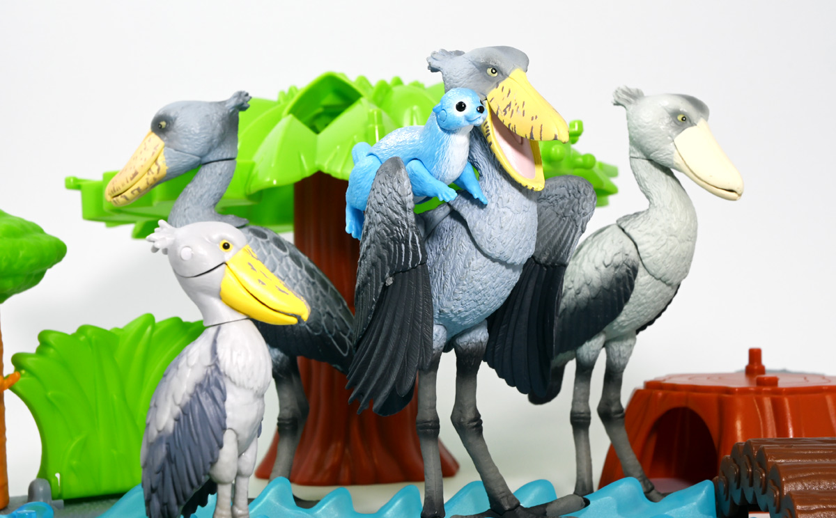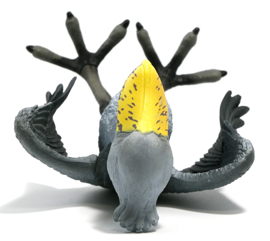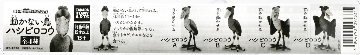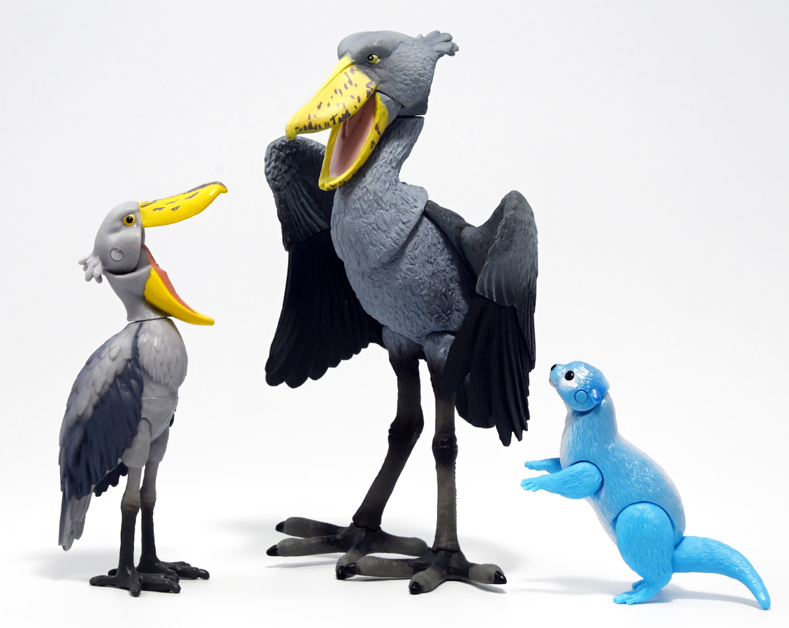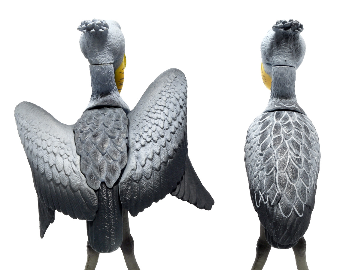 ■タカラトミーアーツ あそべる生物フィギュアシリーズ 動かない鳥 ハシビロコウ ハシビロコウ C ![]() タカラトミーアーツより、2025年10月13日週発売の一回300円ガチャ! 過去弾より「ハシビロコウ」さんが特集ラインナップへと昇格。 カラバリ&一部新規造形で新たなバリエーションが収録されているぞよ! ![]() いつも通りごちゃっと入っています。 ラインナップは全て「ハシビロコウ」、AとBが素立ちモード。 CとDが羽を少し広げた一部新規造形で2造形×2色のバリエーション集録となっているぞよ。 どれが出てもハシビロコウ確定なのでファンにはたまらない一弾となっている! ![]() じゃん! こちらは「ハシビロコウC」であるぞよ! 一部新規造形かつスタンダードなカラーと言う事で本弾のアタリ枠なのだ!! ![]() で・・・でっかいぞよーっ!! 全高約11.8センチ! 翼幅約7センチ級で、恐らく「あそべる生物」史上で最も高さ・幅共に大きいフィギュアとなっているぞよ! タカラトミーアーツはとどまる所を知らんのだ!! ![]() 彩色もむちゃくちゃ豪華で、これが300円って信じられないぞよよ〜! ラインナップ全部ハシビロコウさんでパーツを共有しているとは言え、 大盤振る舞いすぎ!? ![]() 鳥と言っても世界には様々な種類の鳥が生きているぞよ。 どのくらい知られているかと言うと、 全体では44目253科2381属11194種もいるから一口に説明できる規模では無いぞよね。 このような鳥達をおろかなにんげんどもはどうやってグループ分けしてきたかと言えば、 かつては形態や生態に共通点を見出しラベリングしていたぞよ。 見た目の似ている鳥は似た系統であると言う考え方ぞよね。 しかし、中には生活史が似ている為に収斂してそっくりになったものや、 見てくれが奇妙でなんの仲間なのかさっぱりわからない鳥もいる。 このような鳥達の正体はおろかなにんげんどもの脳みそを随分悩ませてきたぞよ。 現代ではおろかなにんげんどもの技術は神の領域に達し、 DNAの構造全体・・・すなわちゲノムを解析し、比較する事が可能となった。 現代では鳥の分類分けはゲノム解析による、より正確な系統樹として再編されているぞよ。 このハシビロコウなどはゲノム解析時代になって真の分類が判明した鳥の一つである。 ![]() かつて伝統的にはコウノトリに近い鳥と考えられていたハシビロコウは、 ゲノム解析の結果、ペリカン類に最も近い事が判明しているぞよ。 新口蓋類の中でキジカモ類を除いたグループを新鳥類と呼び、 ペリカン目はこの中でトキやアオサギ、モモイロペリカンなどを含むグループだが、 ハシビロコウは中でも一際奇妙な姿をしているぞよね。 ハシビロコウ科ハシビロコウ属はこの一属一種しか知られていないぞよ。 ![]() 全高は110〜140センチ、 最大では152センチにもなるという大きな鳥で、 幅広い嘴と長い趾はアフリカの湿地でハイギョを食う事に特化した進化であるぞよ。 ハイギョが水面に現れた瞬間、ダイブして瞬時にこれを捕え食ってしまうが、 この狩りの方法こそペリカンと共通する習性であり、共通祖先に由来すると考えられているぞよ。 ![]() この趾の形態は半蹼足っぽく見え、まさにコウノトリとそっくりである。 このような形態の特徴から過去にはコウノトリ目に含める説が主流であったが、 ゲノム解析してみるとペリカン類に近い事が判明したってワケぞよね。 実はハシビロコウの趾は沼地に佇む為に全部の指が長く、大きく広がるようになっている。 後ろ向きの指も長いので木に留まる時にもがしっと掴めて安定するのだ。 ペリカンの趾は全蹼足と言う形で、一見するとハシビロコウとは様子が異なるぞよね。 ![]() 「あそべる生物」シリーズと言う事で本商品のハシビロコウさんは全て首がロール可動する! 300円にしてビッグサイズ、お買い得な本弾ですが、パーツの接続はややきつめで、 首はそのままだと嵌めにくく動かしにくいぞよ・・・! 従って軸をちょこっとデザインナイフで削ってやるとスムーズに遊びやすくなります。 ![]() 奇妙にして愛嬌のあるハシビロコウ! 300円でこんなでっかく立派なハシビロコウさんが確定で手に入るとは・・・ 嬉しすぎるぞよーっ!! ![]() 翼のディテールも美しいぞよね! 背中から見ても映える一体だ。 ![]() ハシビロコウは動物園でも見られるお馴染みの鳥だが、飼育下での繁殖は極めて難しいとされているぞよ。 今のところ成功例はベルギーとアメリカのみ。 国内でも挑戦が続いているが成功例は無い。 そして絶滅が危惧され保護されている種であるので、新たに輸入してくる事も理由が無ければなかなか難しい。 このまま自前で繁殖できなければ数が減り続け、動物園から姿を消してしまう事も考えられるぞよ。 飼育下での繁殖が成功すれば、種の理解も深まり保全も進む! ぜひ頑張ってほしいぞよね!! ![]() 理由はわからんけどハシビロコウは若い頃は目の色が黄色、 大人になってくると青っぽくなると言われている。 本商品はやや黄色っぽい色味